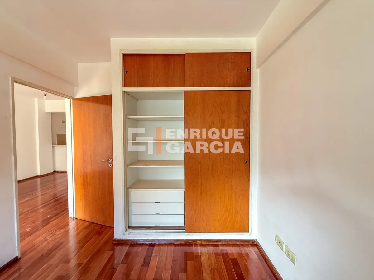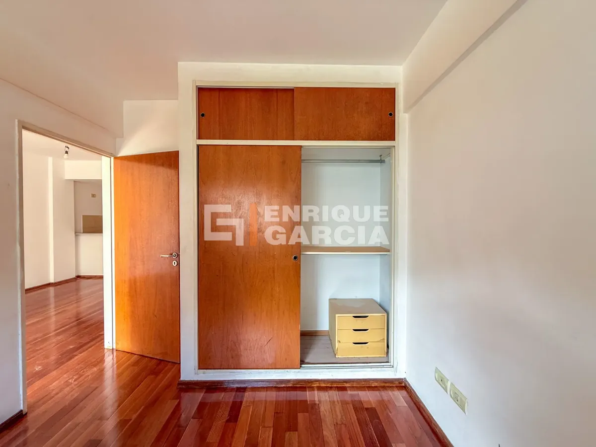 Departamento de 2 ambientes en Urquiza Residencial, al contrafrente, con balcón corrido. Living comedor de 5x3 m con pisos de parquet entablonado y dormitorio con placard de 3x3 m, también con pisos de madera. Cocina con barra desayunadora y lavadero en el balcón; calefón y calefacción por tiros balanceados, con split frío en el living comedor. Servicios individuales y cochera descubierta N° 10. Apto profesional. La ubicación es a metros de Av. Triunvirato y del Subte Línea B, estación Echeverrí