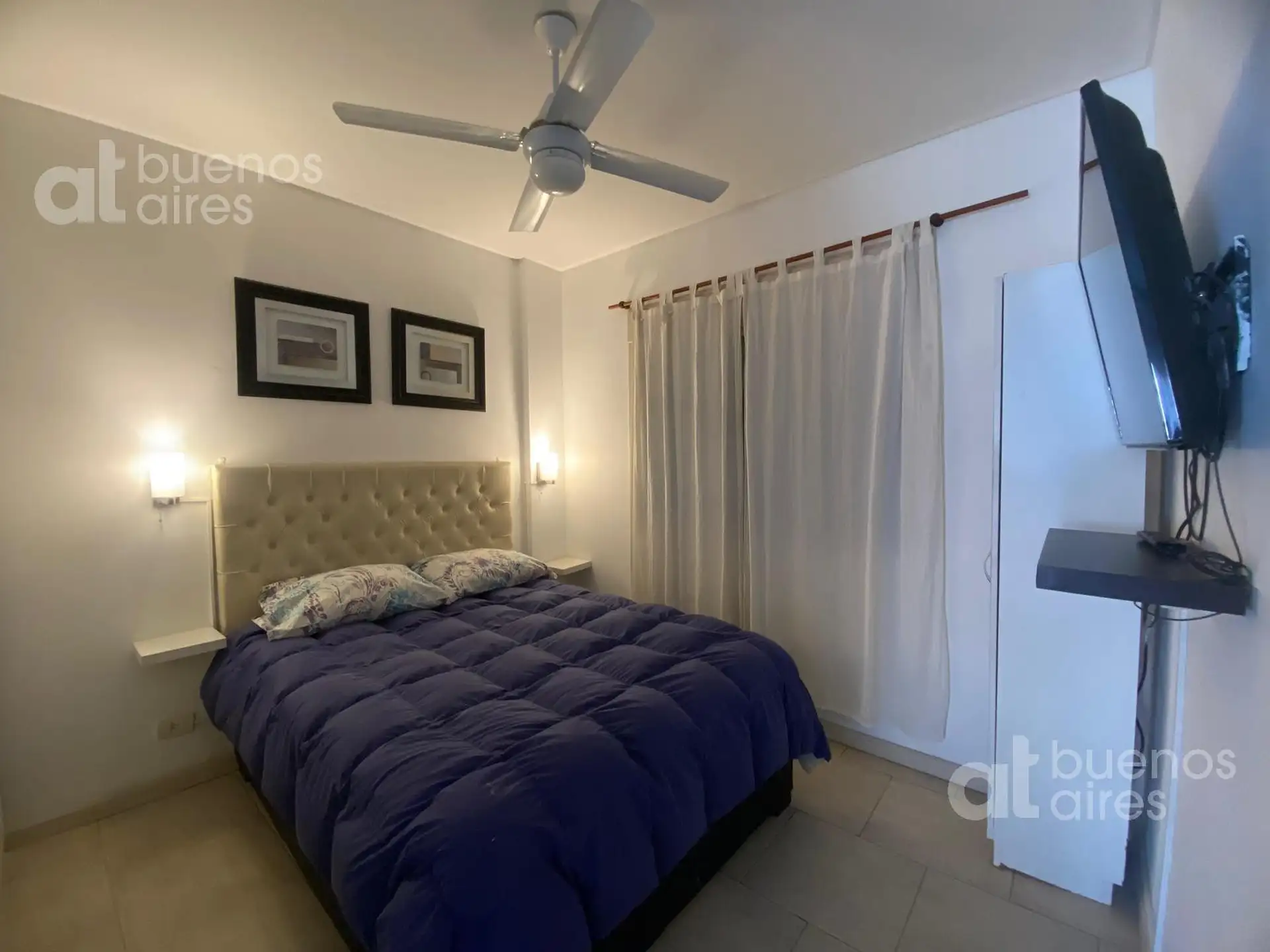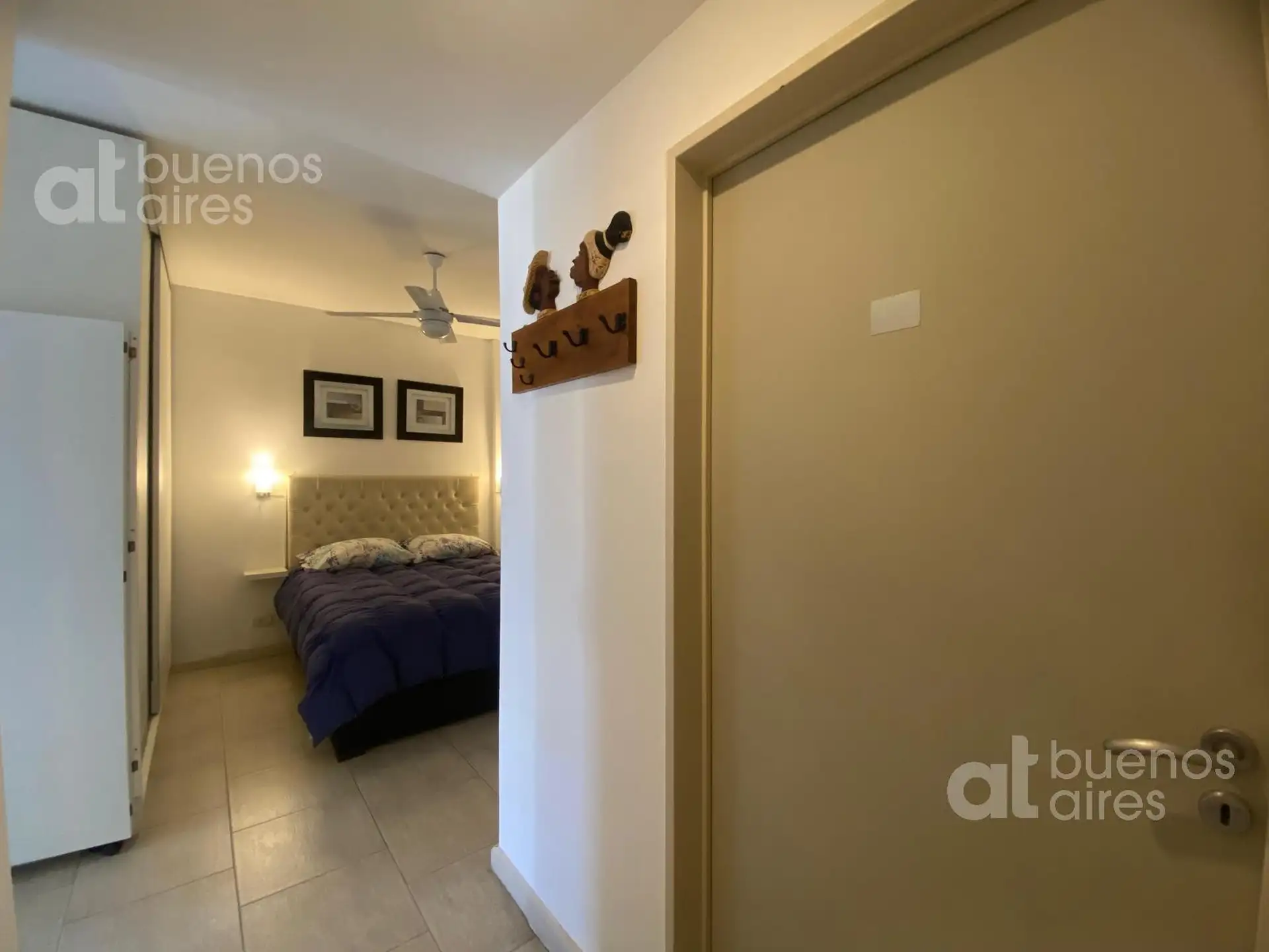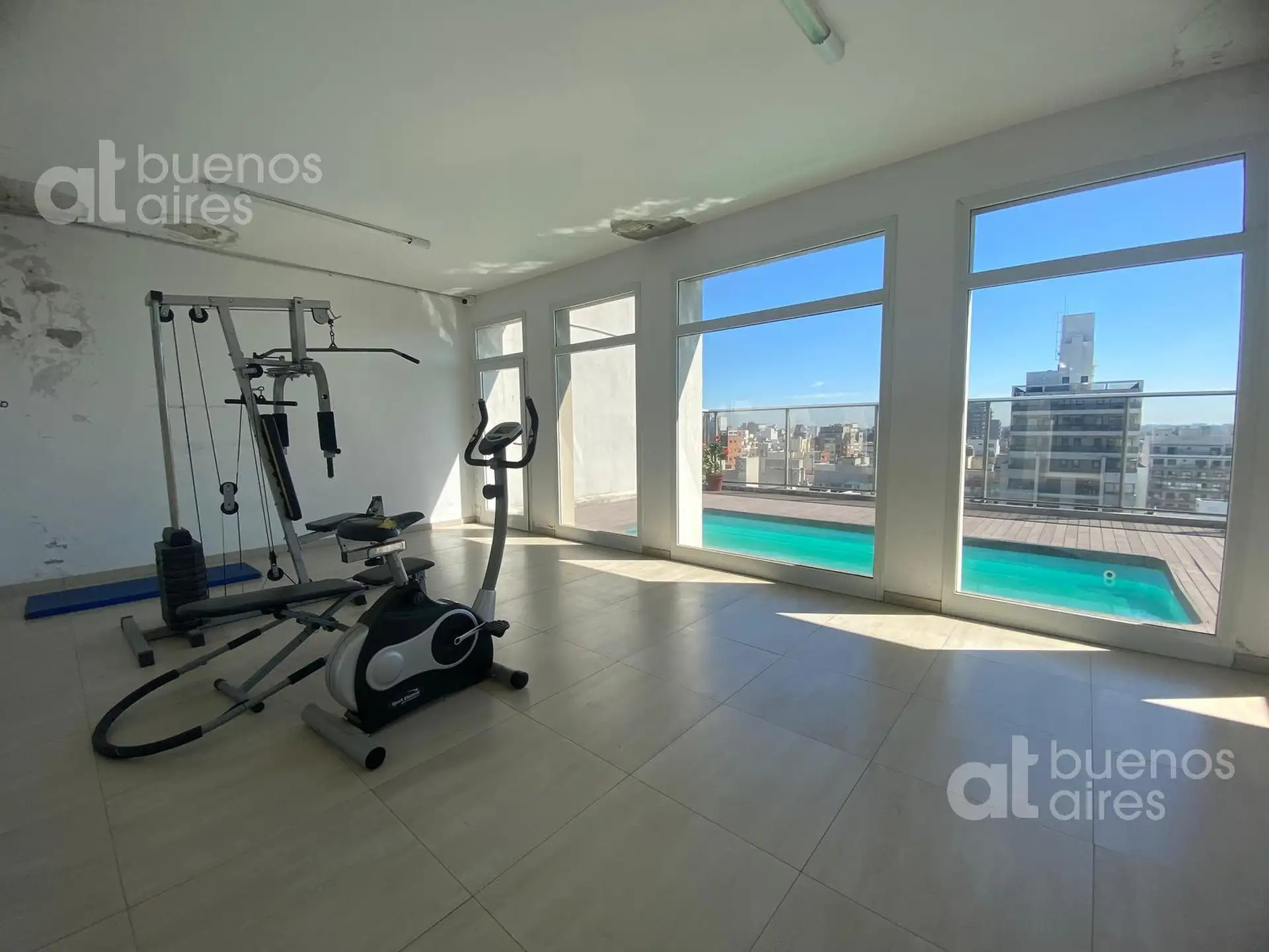 Departamento monoambiente dividido en Villa Urquiza, con balcón y cochera de cortesía. Living comedor con sillón cama y salida al balcón. Cocina integrada totalmente equipada con heladera con freezer, anafes de vitrocerámica y hornito eléctrico. Habitación con amplio armario, cama doble y smart TV de 32", más baño completo. El edificio cuenta con pileta con ducha, solarium, lavadero y gimnasio. Disponible desde 18/05/2026. El valor publicado es todo incluido, con luz e internet a cargo del inqui