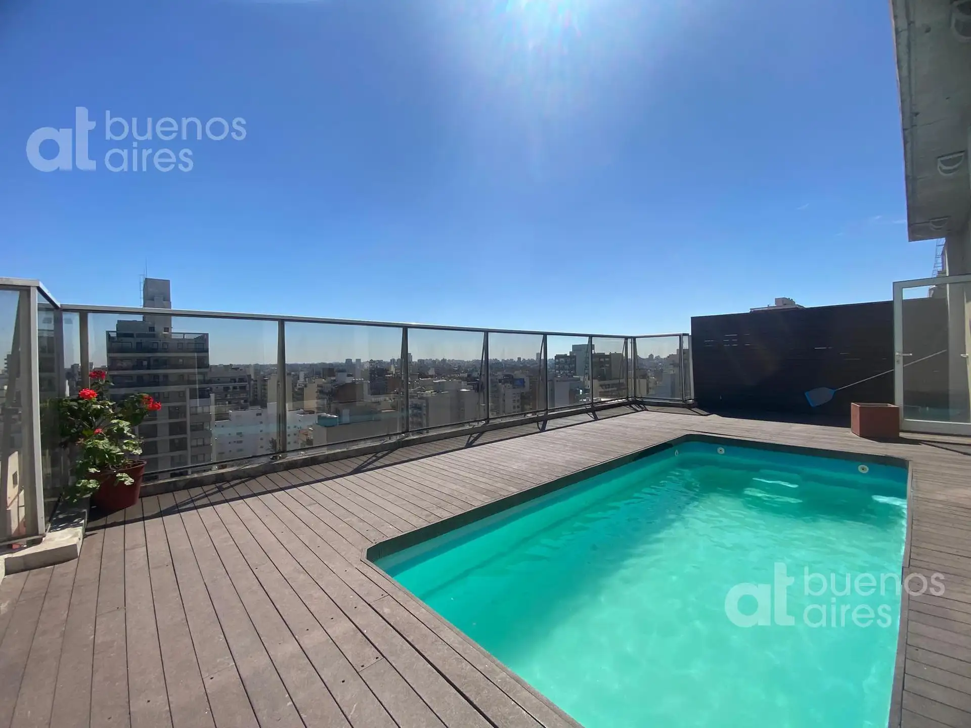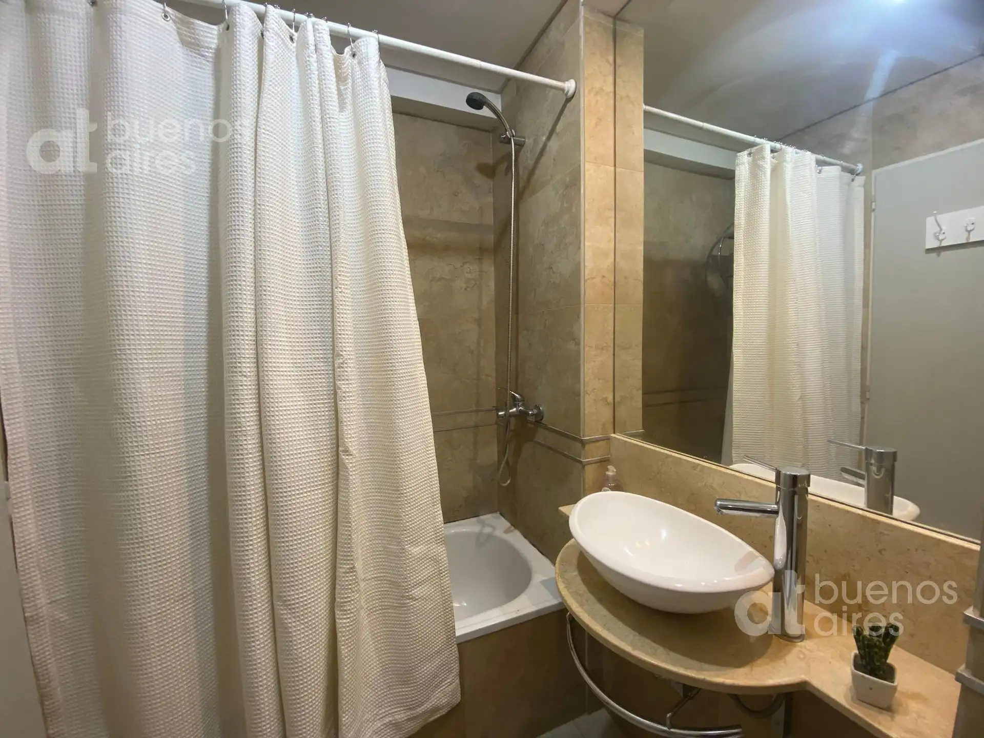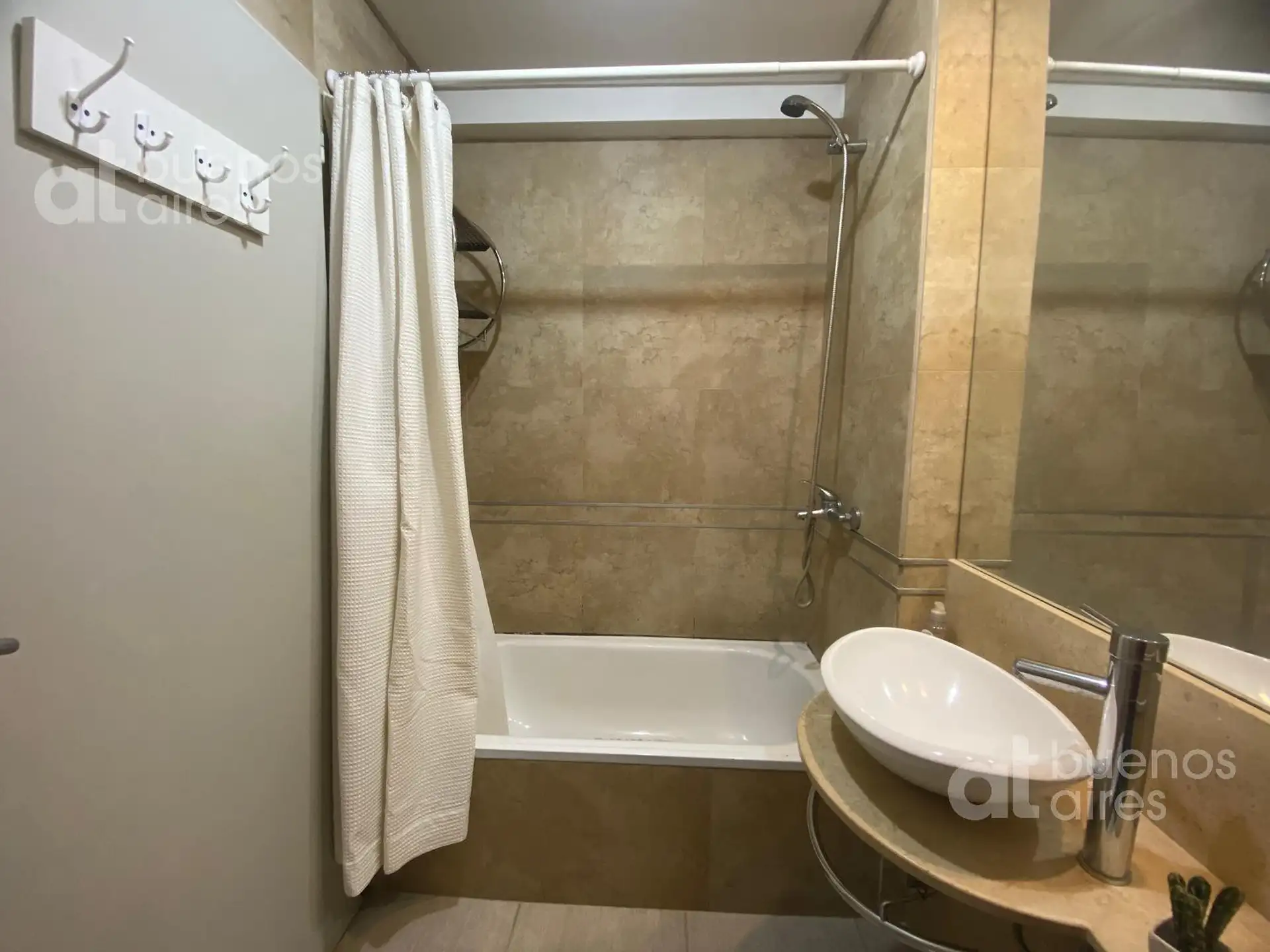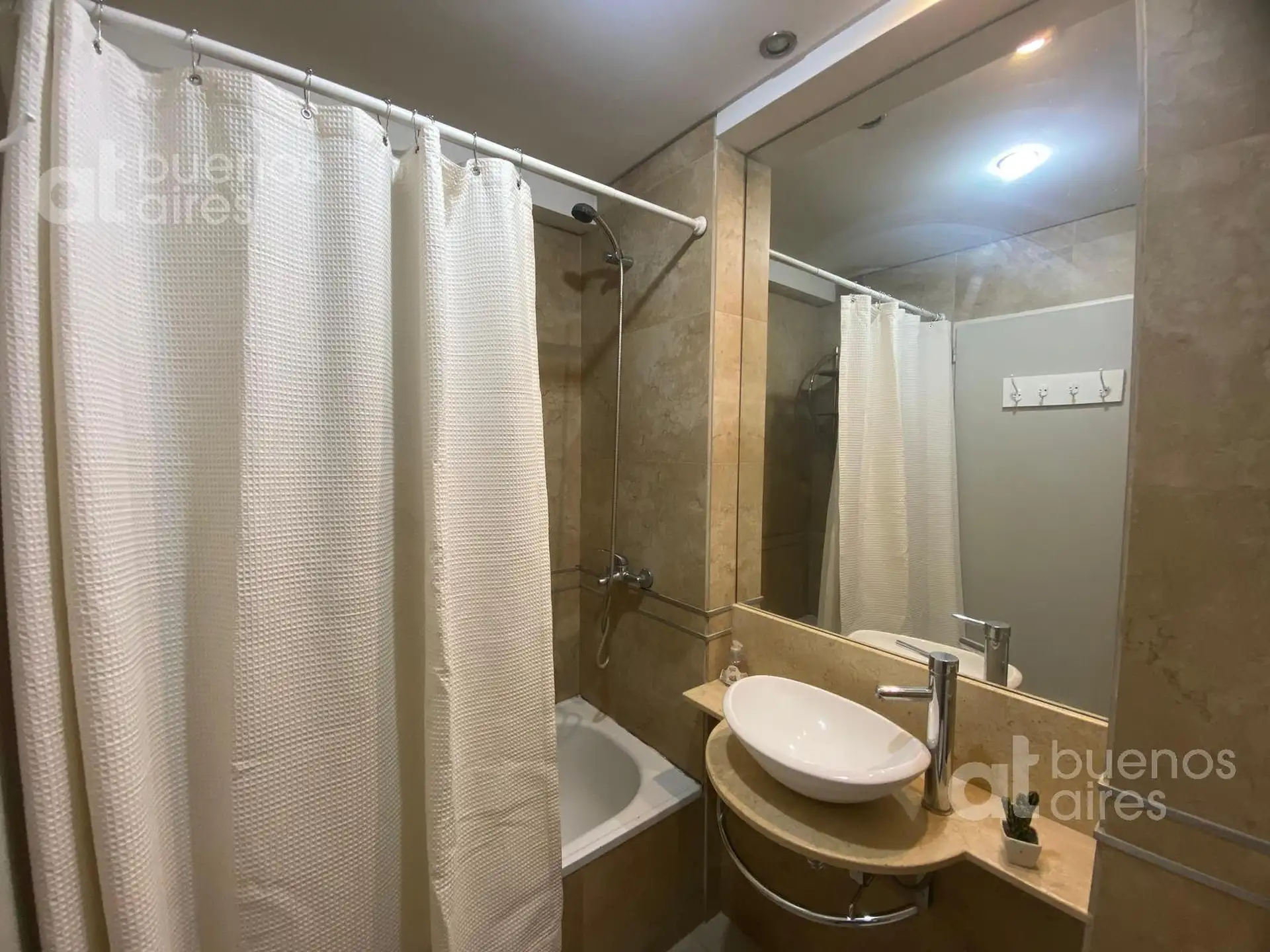 Departamento monoambiente dividido en Villa Urquiza, con balcón y cochera de cortesía. Living comedor con sillón cama y salida al balcón. Cocina integrada totalmente equipada con heladera con freezer, anafes de vitrocerámica y hornito eléctrico. Habitación con amplio armario, cama doble y smart TV de 32", más baño completo. El edificio cuenta con pileta con ducha, solarium, lavadero y gimnasio. Disponible desde 18/05/2026. El valor publicado es todo incluido, con luz e internet a cargo del inqui