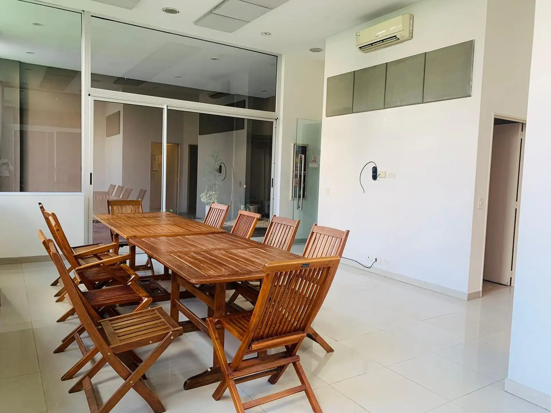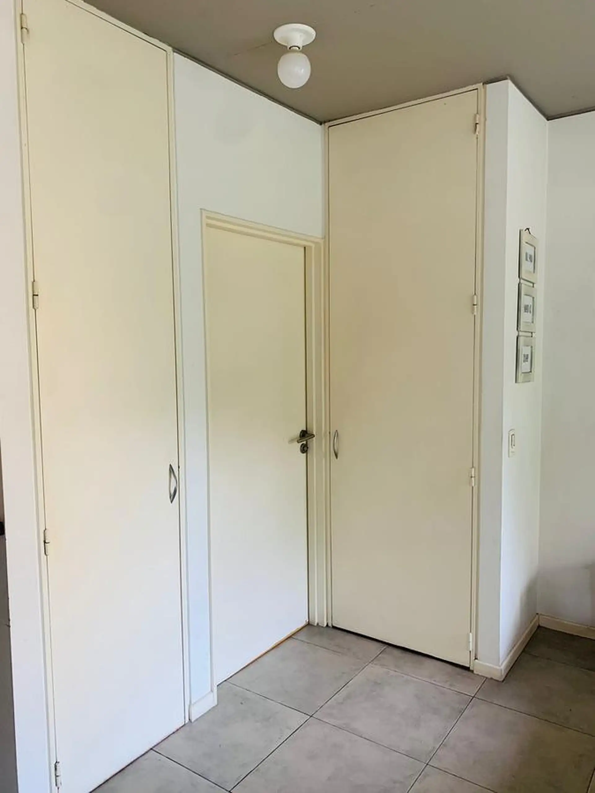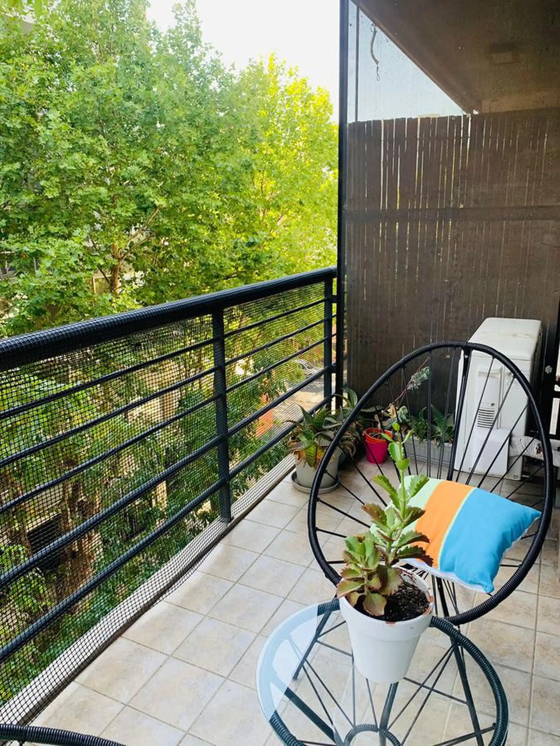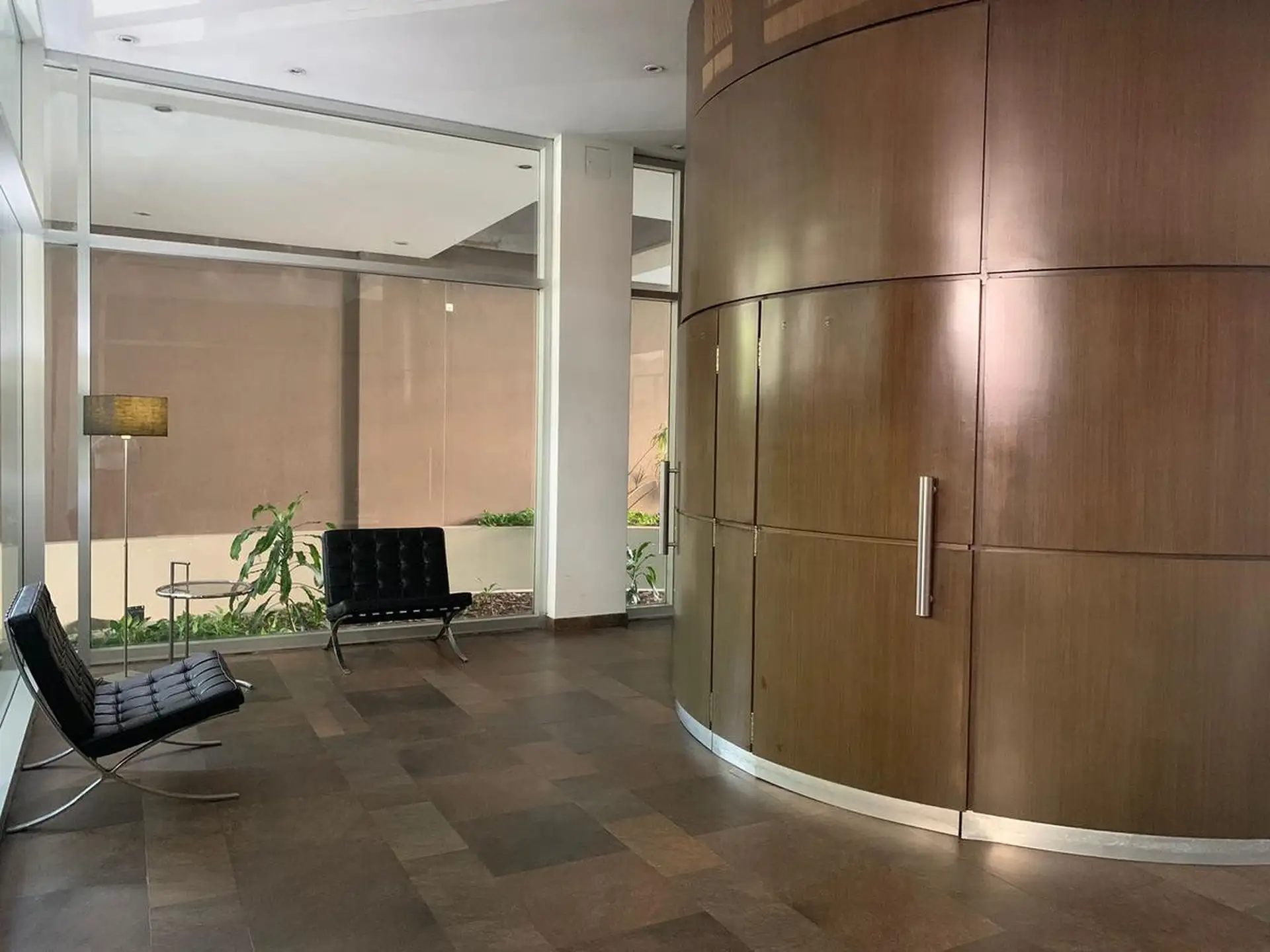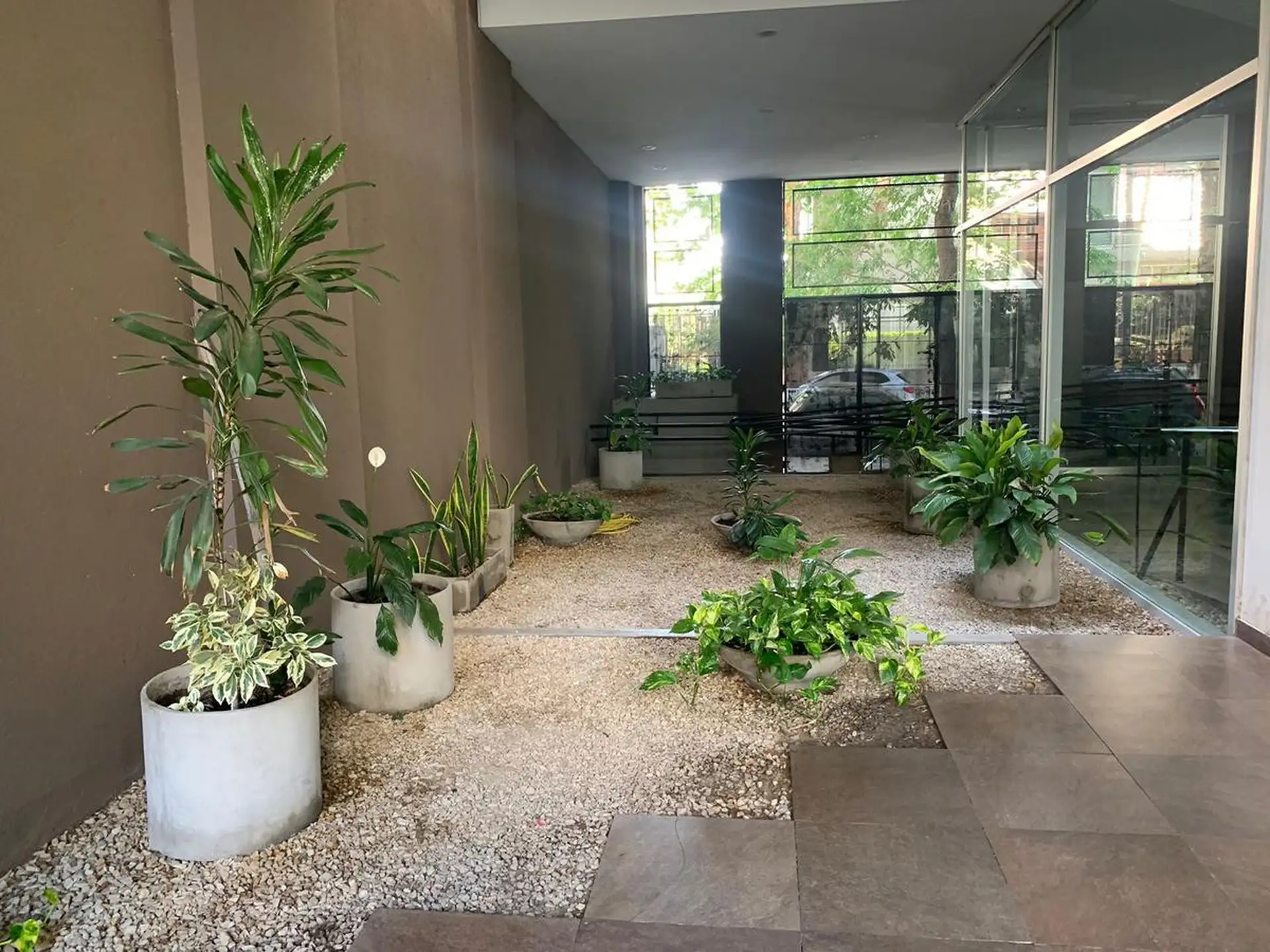 Departamento de 1 ambiente en alquiler temporario en Villa Urquiza. La unidad está equipada con mesa y sillas, mueble divisorio con TV de pantalla plana, cama doble con espacio de guardado, placard y Split frío-calor. La cocina está incorporada con desayunador y cuenta con heladera con freezer, horno eléctrico, anafe de 2 hornallas, pava eléctrica y vajilla; el baño es completo con box de ducha. El edificio dispone de cámaras de seguridad, parque, SUM, parrilla, pileta y laundry, y se ubica a 3