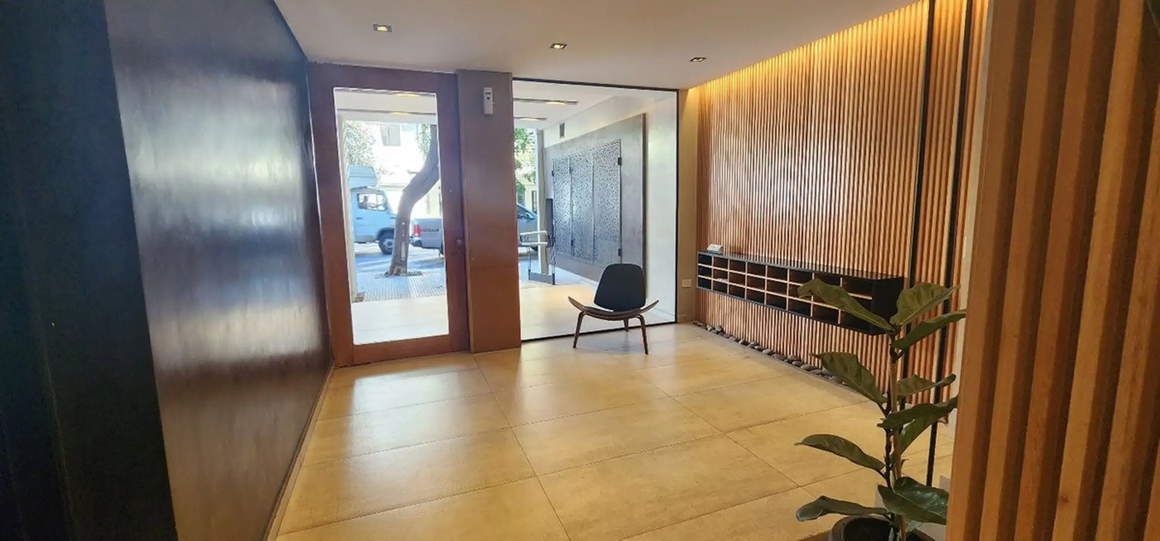 Monoambiente a estrenar en Villa Urquiza, con balcón terraza y cochera. Las unidades disponibles son 6°B, 7°B y 8°B. Cuenta con cocina integrada con muebles bajo mesada y alacena con barra desayunadora, placard y baño completo, más lavadero en el balcón. El edificio dispone de SUM cubierto, solarium, parrilla al aire libre, jacuzzi, sauna y vestuario, con portero visor y piso radiante por caldera central con control individual de temperatura.