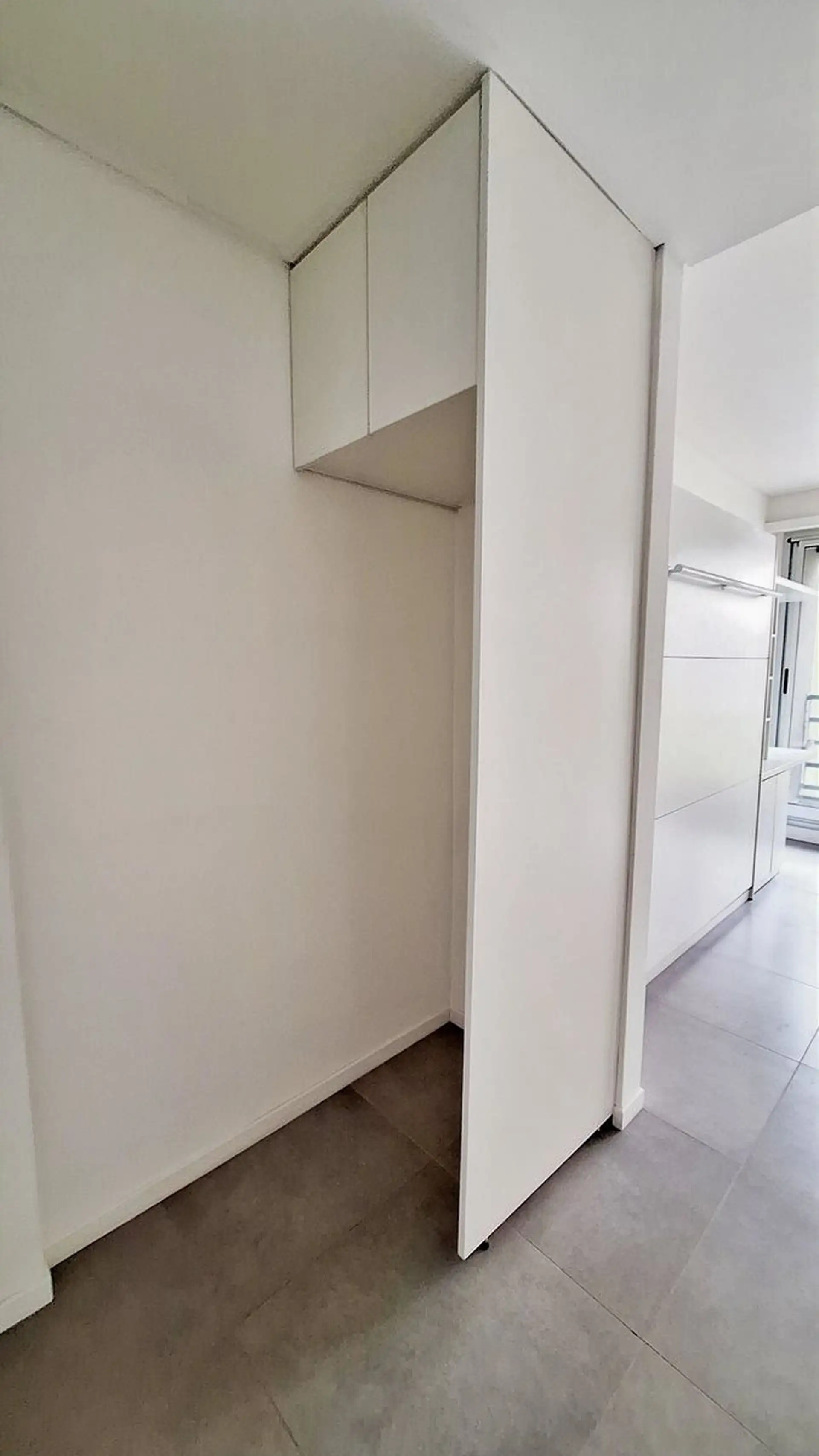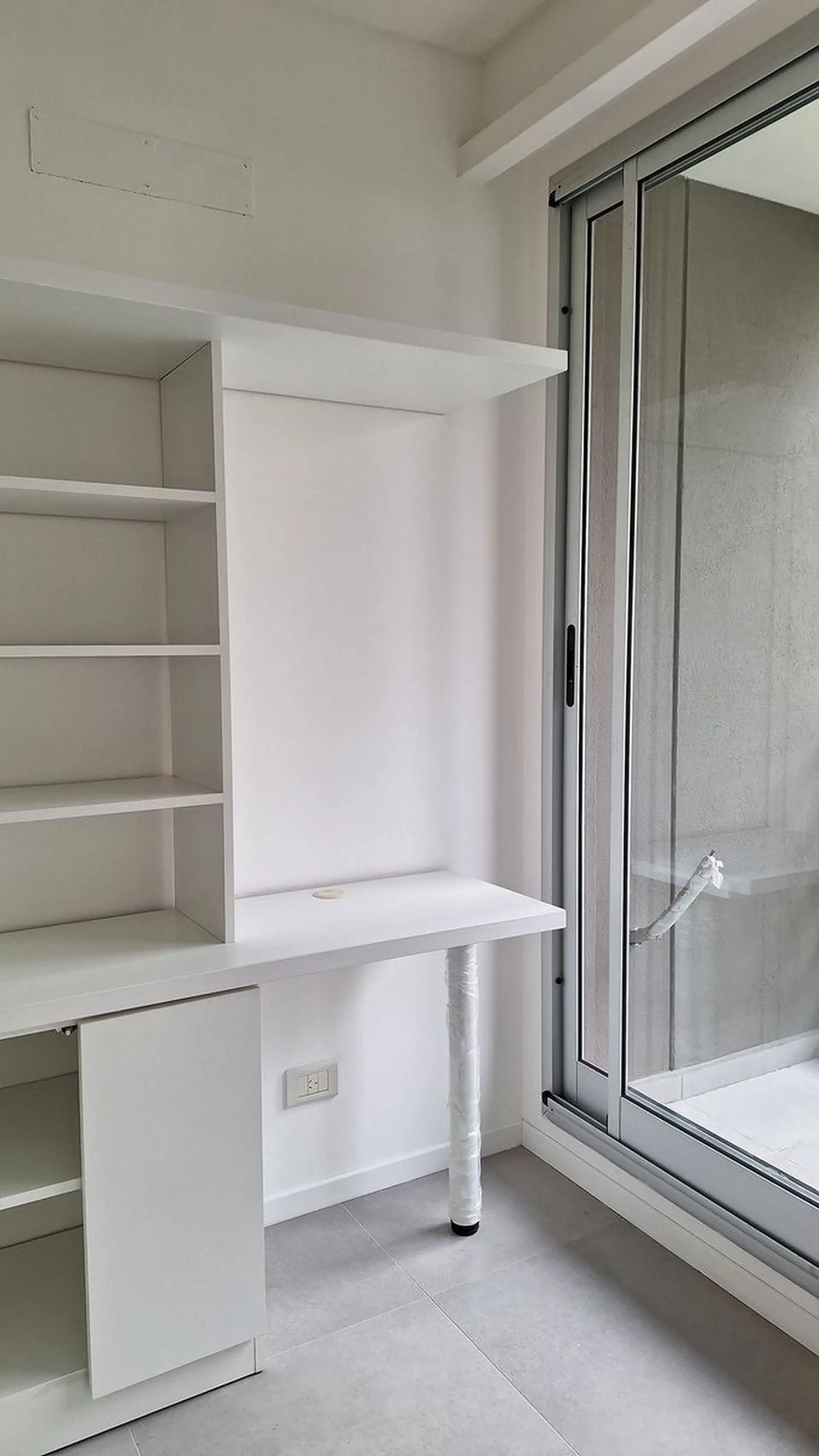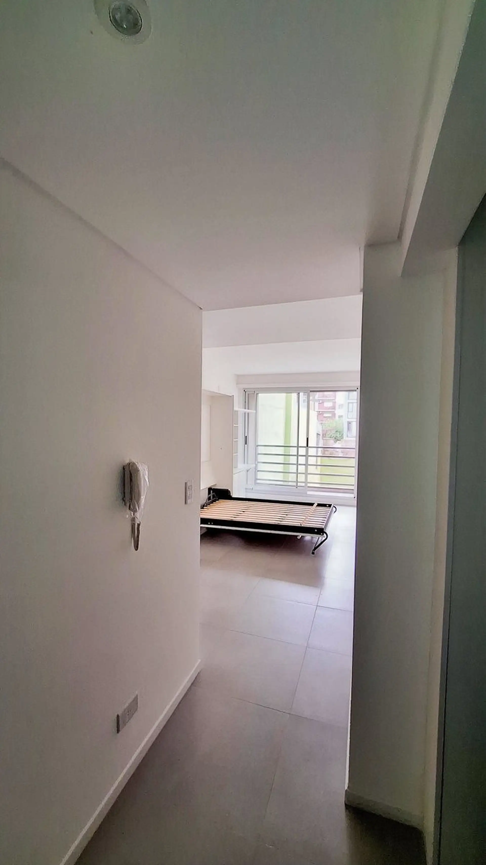 Monoambiente de 40 m² en Villa Urquiza, a estrenar, en el 2° piso, contrafrente abierto hacia el guarda coches. Dispone de balcón, baño completo con bañera y cocina equipada con muebles bajo mesada, alacenas y mesada de cuarzo, con espacio para heladera y microondas u horno eléctrico; cuenta con anafe eléctrico de 2 hornallas y mesa/barra desayunadora. Incluye aire acondicionado frío/calor, ventanas black out, lámparas instaladas y cama rebatible sin colchón con escritorio integrado, amplio plac