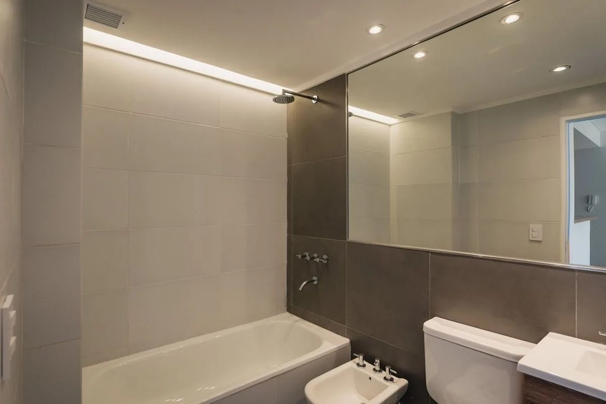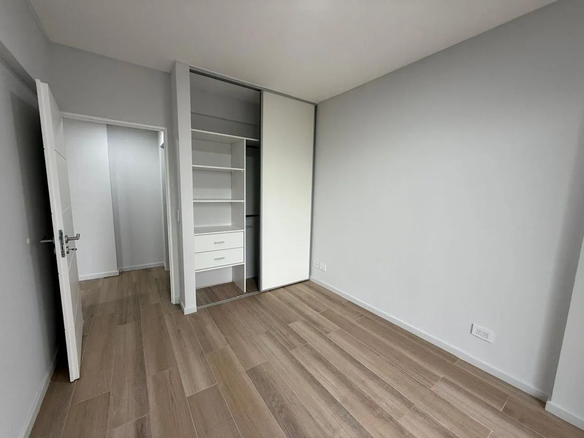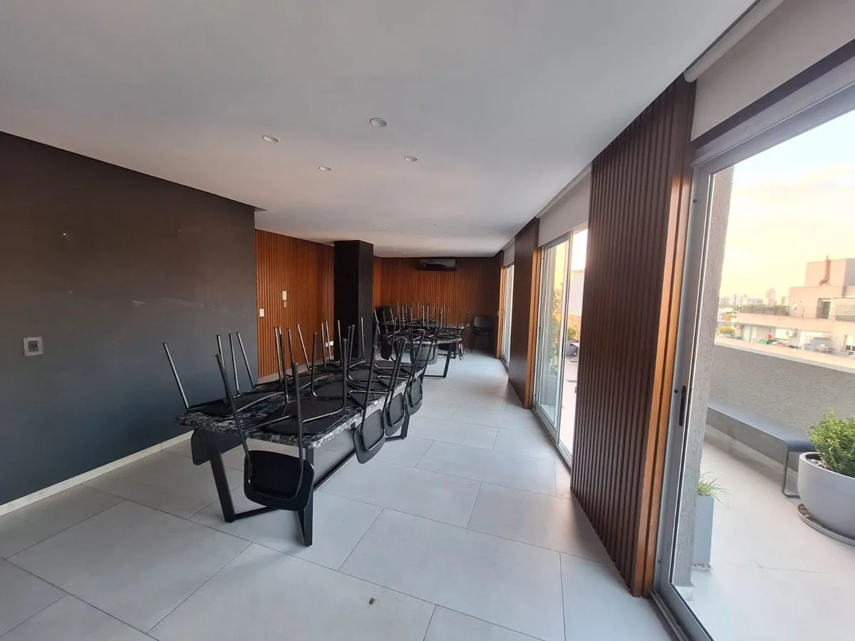 Departamento de 2 ambientes a estrenar en Villa Urquiza, al frente, con balcón corrido. Cocina integrada con muebles completos y conexión para lavarropas, dormitorio con salida al balcón y placard con puertas corredizas e interiores, y baño completo. Servicios gas y luz individuales con preinstalación para A/A, pisos de porcelanato. El edificio cuenta con terraza, solarium, SUM con parrilla y gimnasio. Condiciones de alquiler: plazo 2 a 3 años, ajuste trimestral según índice IPC, 1 mes adelantad