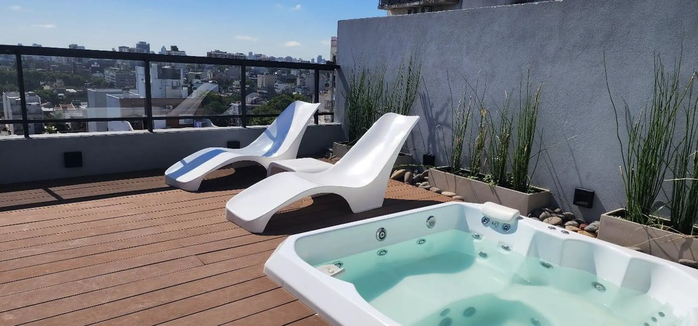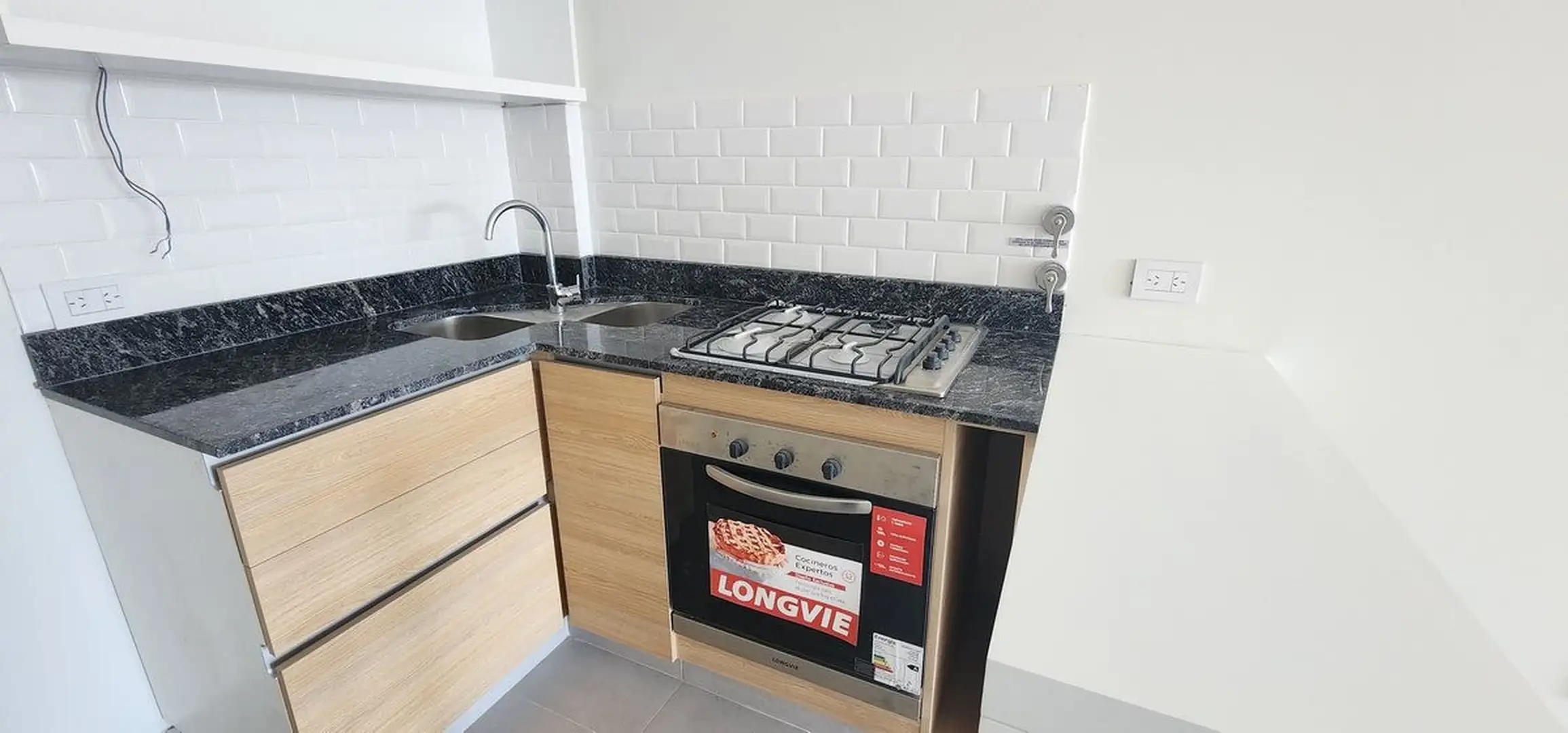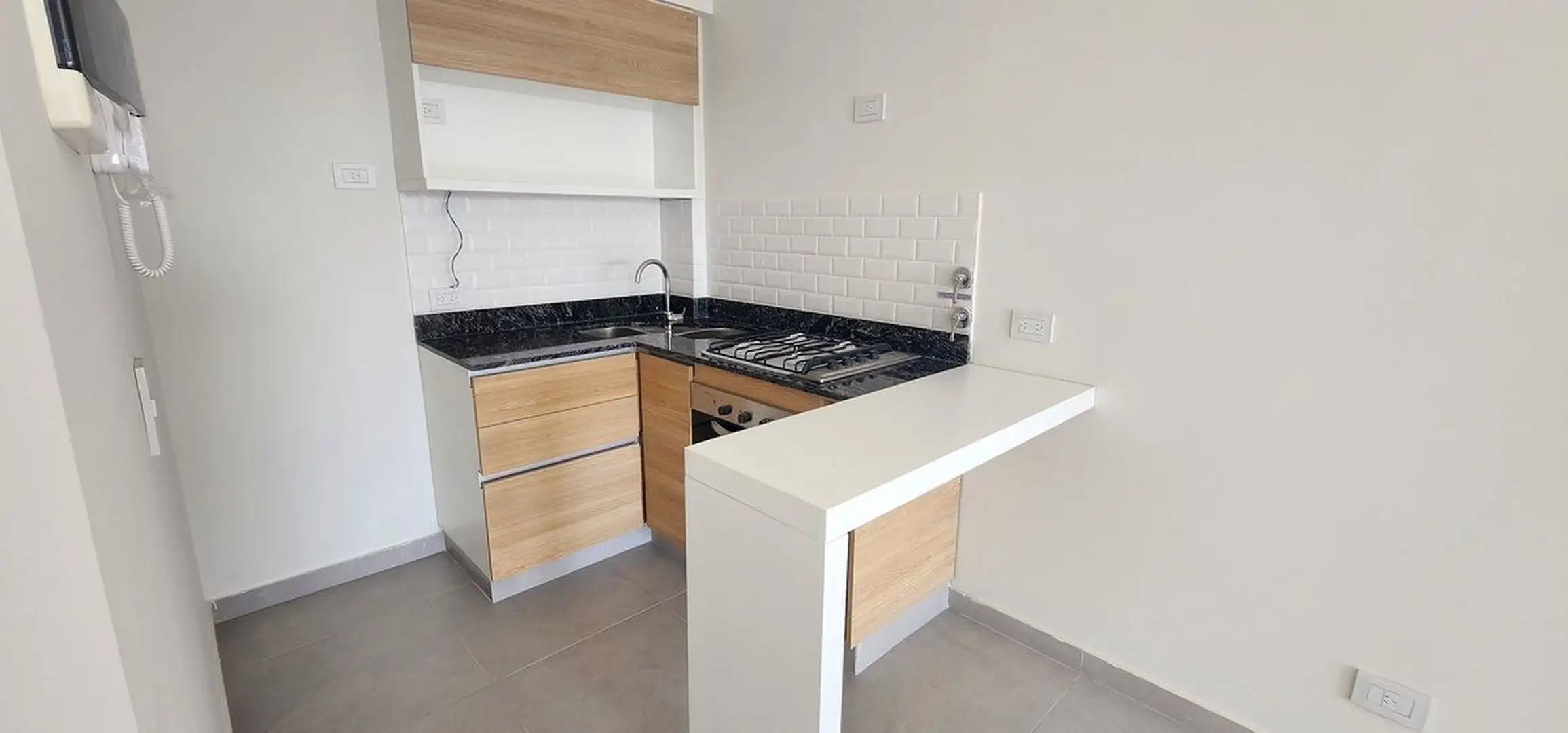 Departamento monoambiente a estrenar en Villa Urquiza, con cocina integrada, baño completo y balcón terraza. Incluye placard y lavadero en el balcón; cuenta con muebles bajo mesada y alacena con barra desayunadora. El edificio dispone de solarium, SUM cubierto, parrilla al aire libre, jacuzzi, sauna y vestuario, con cochera opcional. El equipamiento incluye cocina con artefactos y piletas de acero inoxidable, grifería monocomando (Fv, Roca o similar), mesadas de granito y mesada de mármol en los