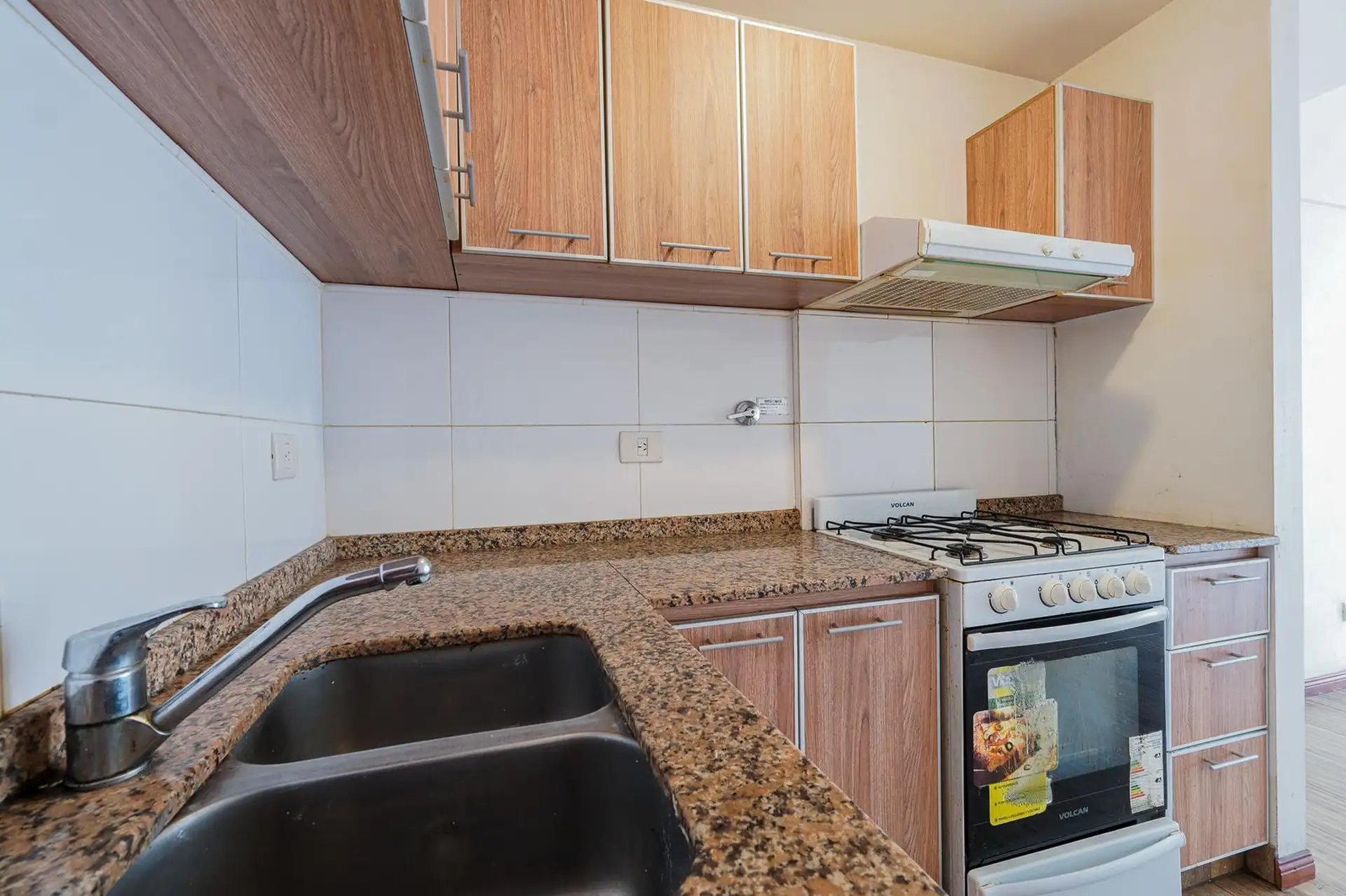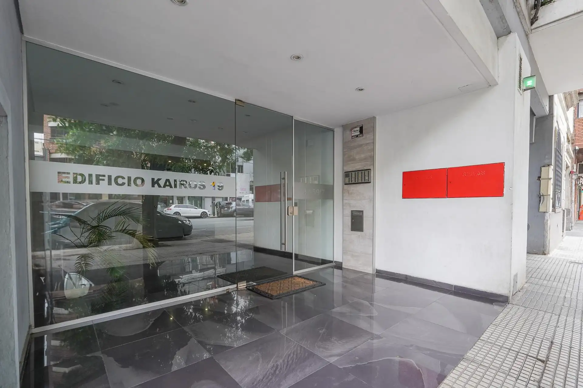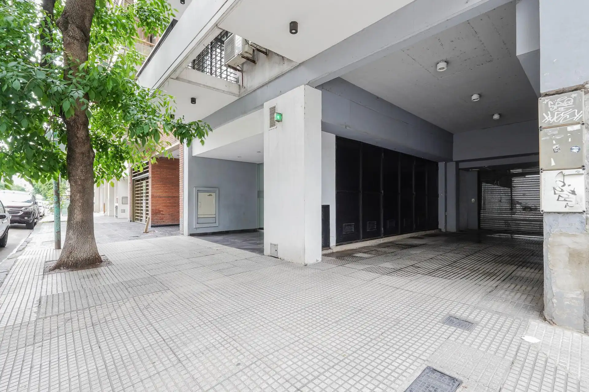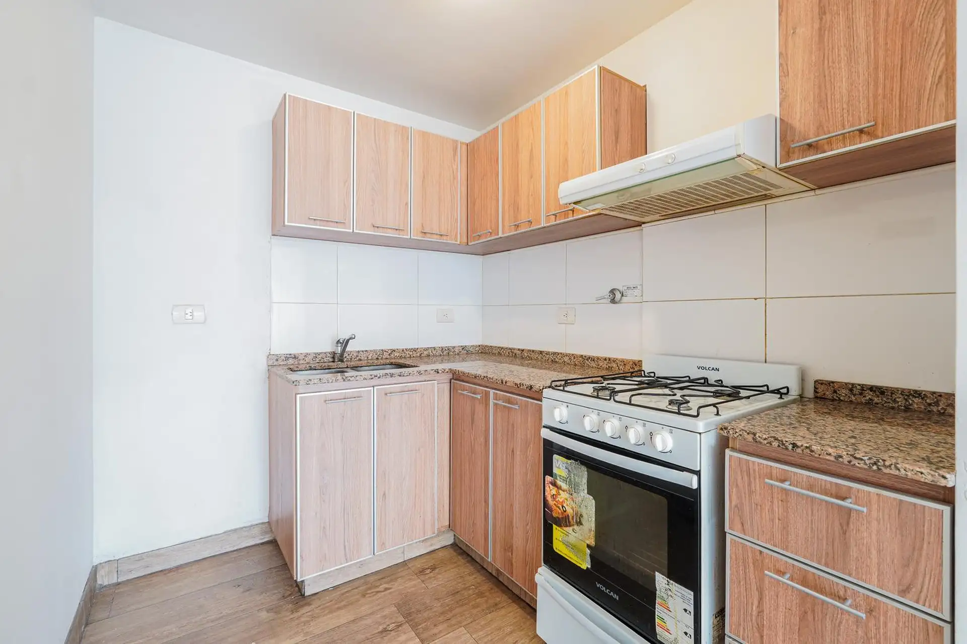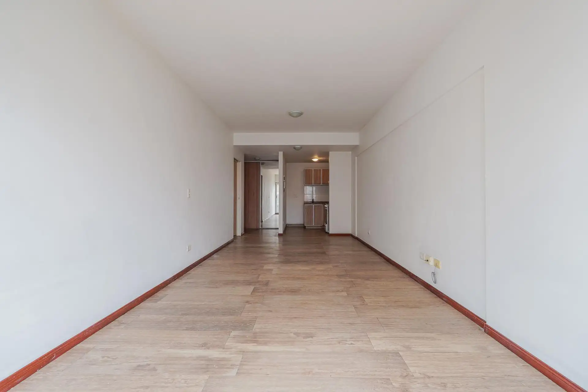 Departamento de 1 ambiente con balcón y vista abierta, al frente, en el 7° piso. Tiene 33 m² cubiertos y 4 m² descubiertos (37 m² según escritura). Cuenta con cocina integrada con muebles bajo mesada y alacena, placard empotrado espejado, aire split frío/calor y conexión para lavarropas; baño completo con bañera y balcón de 3.00x1.55. El edificio tiene 13 pisos, 4 departamentos por piso, 1 ascensor y terraza de uso común; expensas con AYSA incluido.