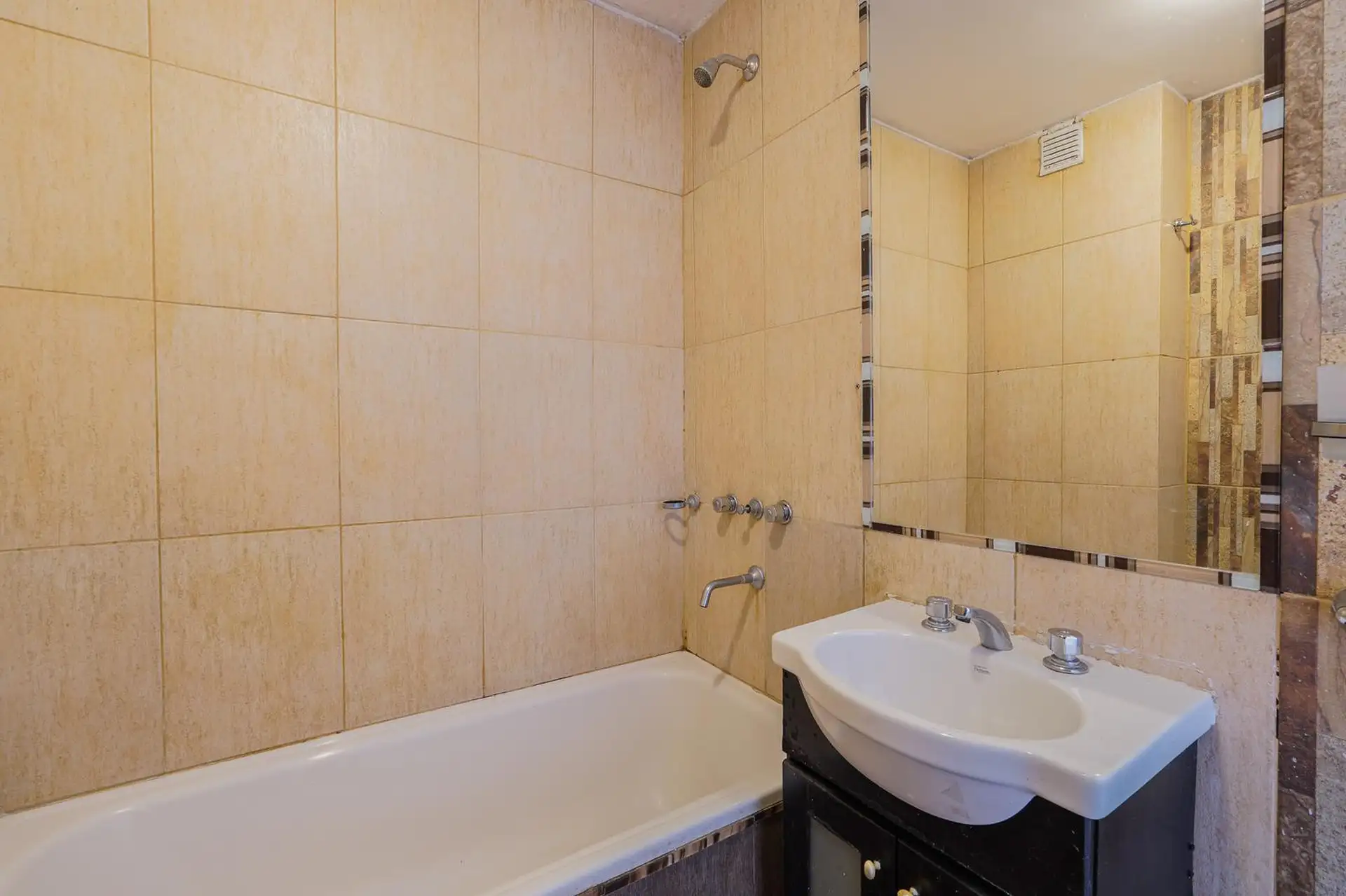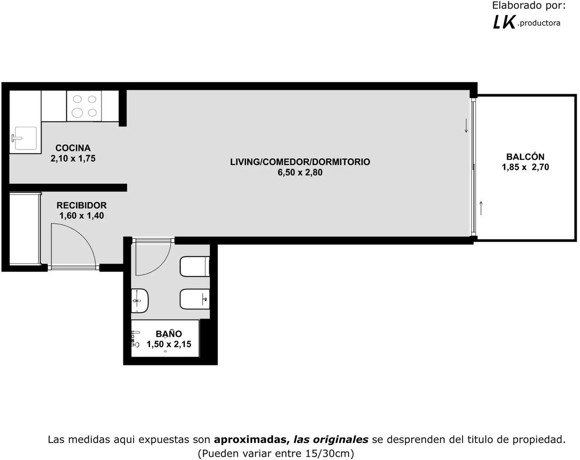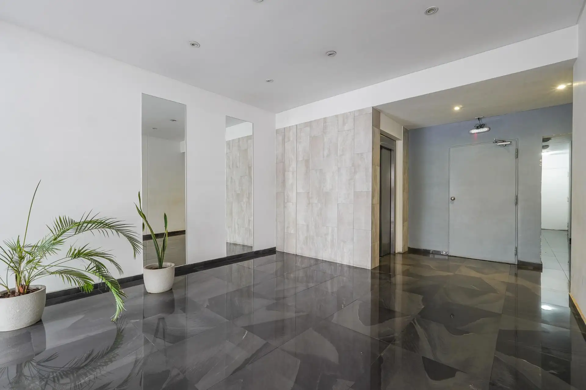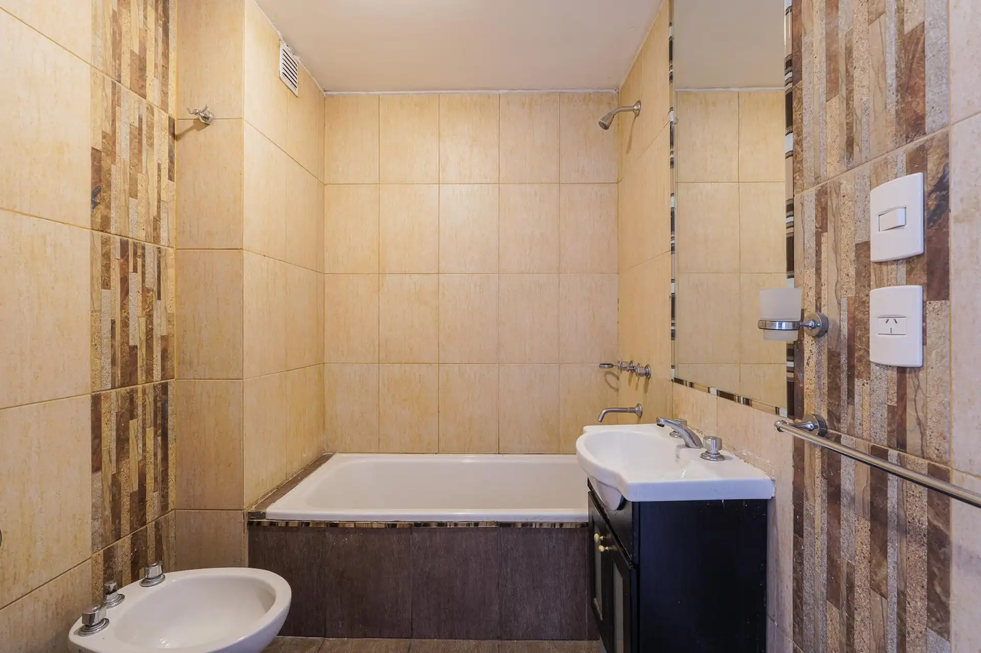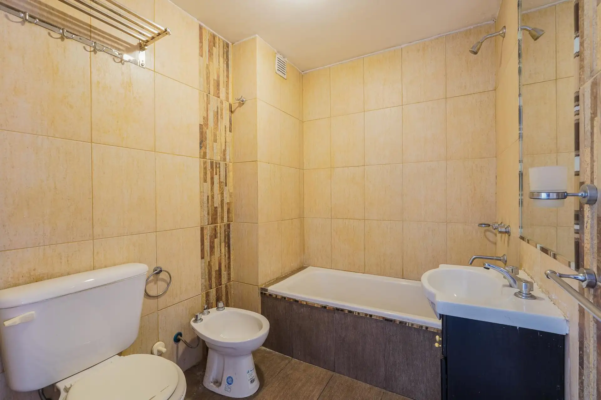 Departamento de 1 ambiente con balcón y vista abierta, al frente, en el 7° piso. Tiene 33 m² cubiertos y 4 m² descubiertos (37 m² según escritura). Cuenta con cocina integrada con muebles bajo mesada y alacena, placard empotrado espejado, aire split frío/calor y conexión para lavarropas; baño completo con bañera y balcón de 3.00x1.55. El edificio tiene 13 pisos, 4 departamentos por piso, 1 ascensor y terraza de uso común; expensas con AYSA incluido.