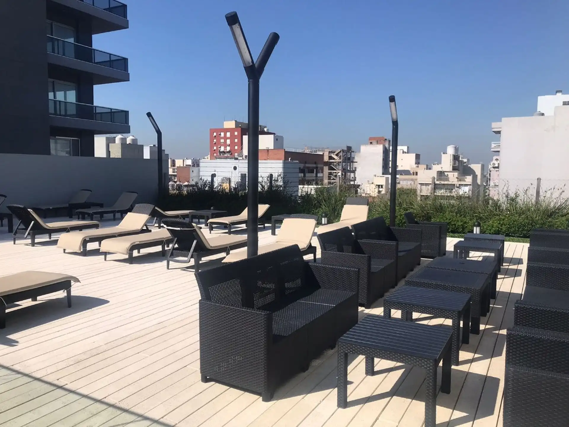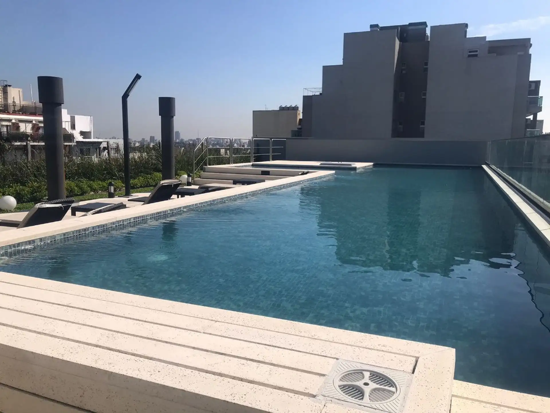 Monoambiente de 41 m² totales, 5° piso, en esquina (Av. Congreso y Díaz Colodrero), con orientación Sudeste. Cuenta con balcón corrido lateral de 4,5x1,5, ambiente con pisos de porcellanato, dos placares y aire acondicionado split. Cocina separada con muebles completos, extractor, horno eléctrico y anafe vitrocerámico de 2 hornallas; baño completo con vanitory. Dispone de calefón eléctrico para agua caliente y calefacción por piso radiante eléctrico con control de temperatura por ambiente. Expen