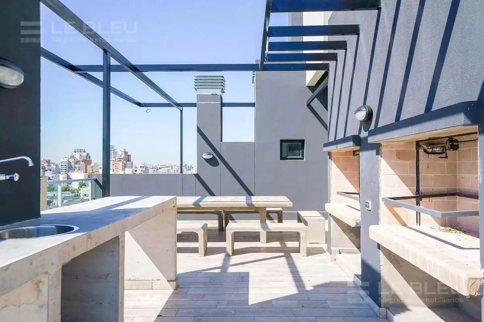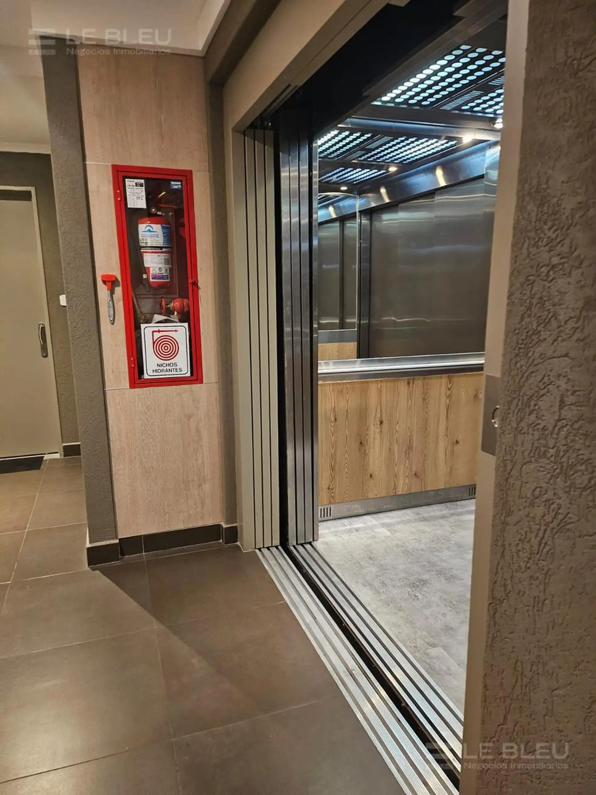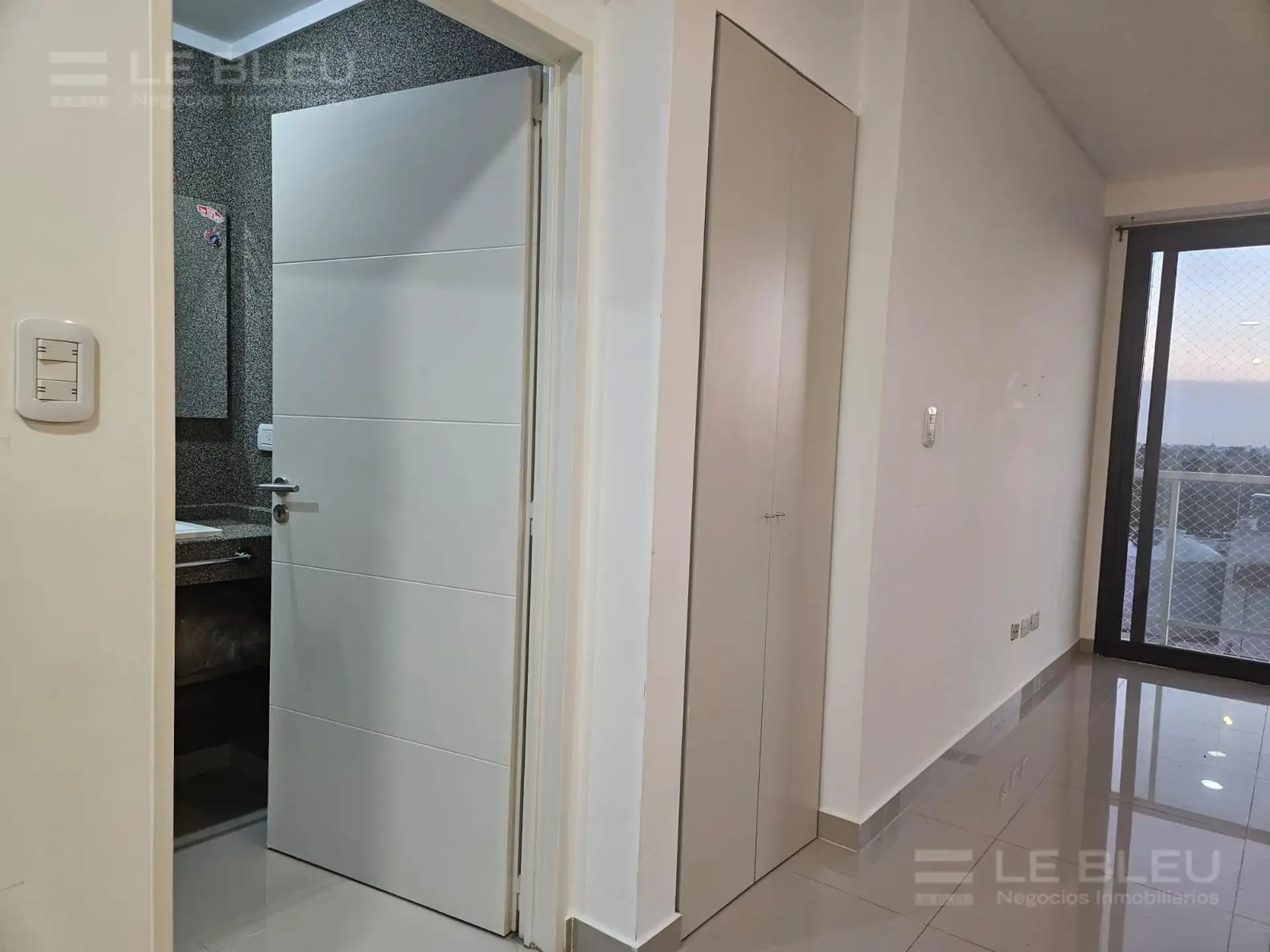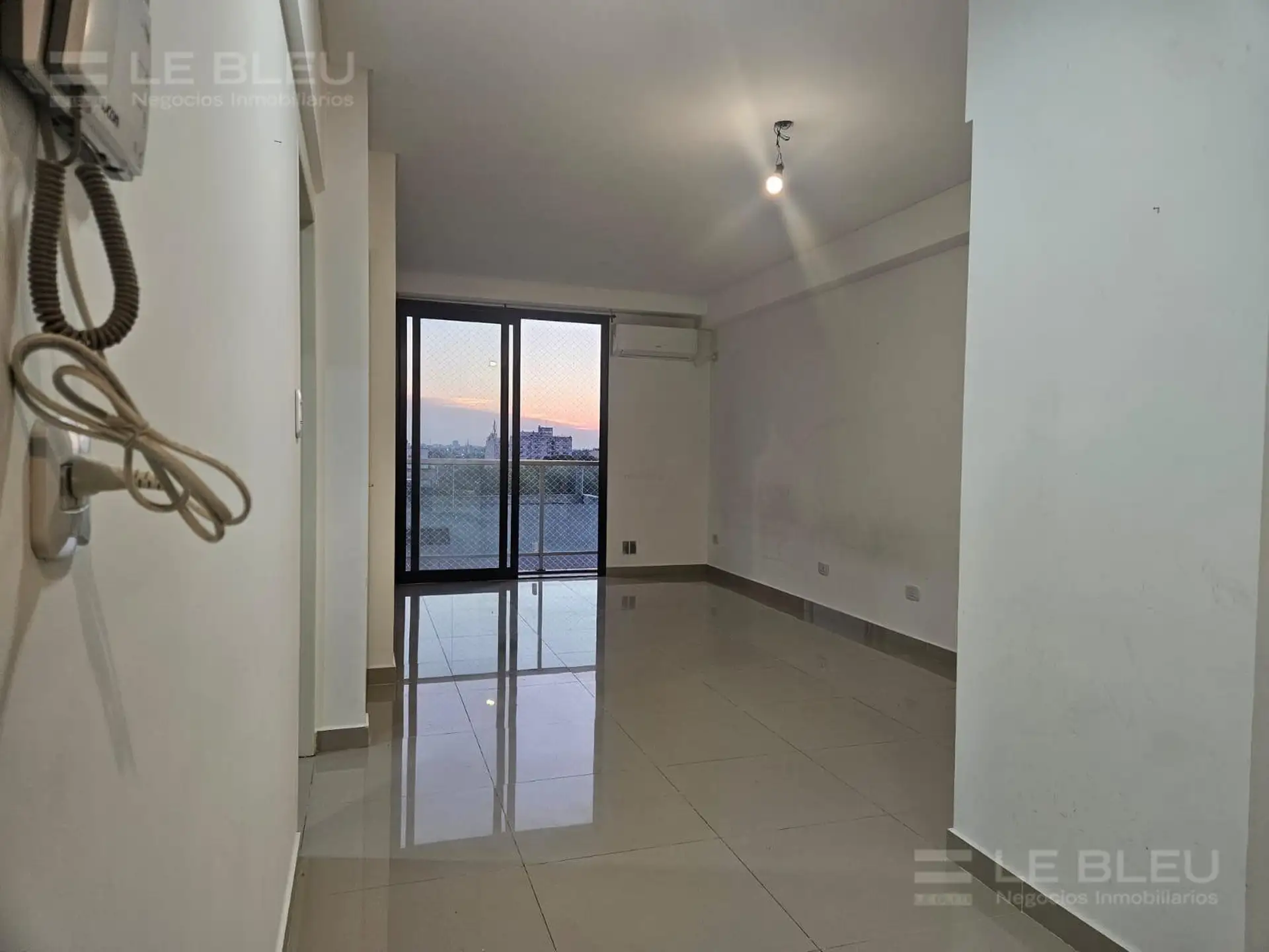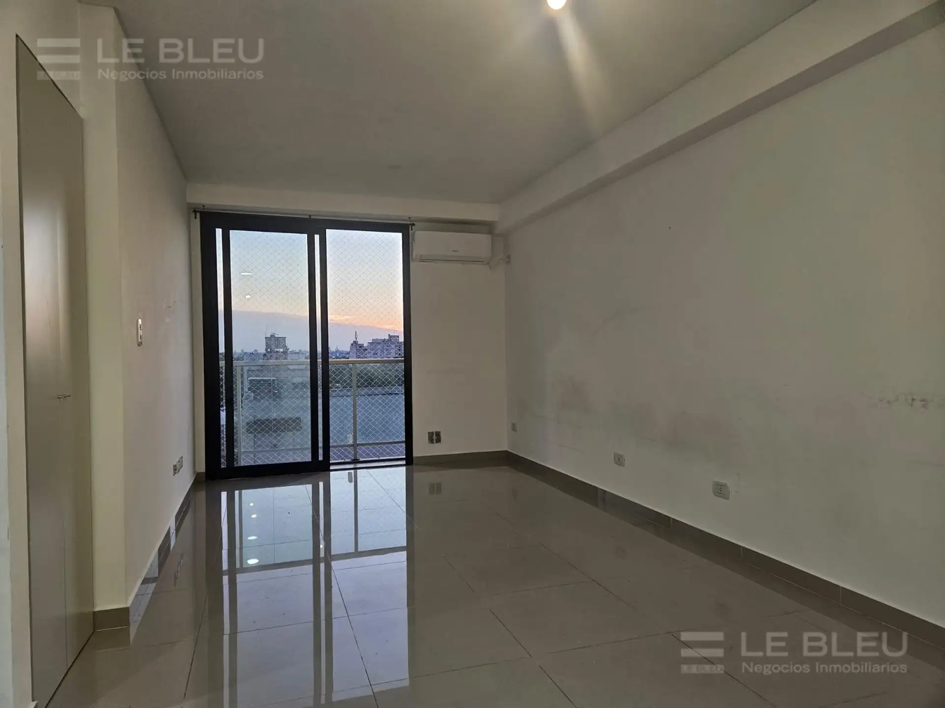 Departamento monoambiente en Torre Rivera Le Bleu, en Villa Urquiza. Incluye cocina equipada con espacio para heladera, alacenas, bajo mesada con cajonera y anafe eléctrico, y baño completo. Cuenta con preinstalación para aire acondicionado frío/calor. El edificio ofrece pileta panorámica, SUM, gimnasio, laundry, solárium con duchas, sector de parrillas, quincho y áreas de reuniones, business room con acceso Wi-Fi y cocheras de cortesía para invitados.