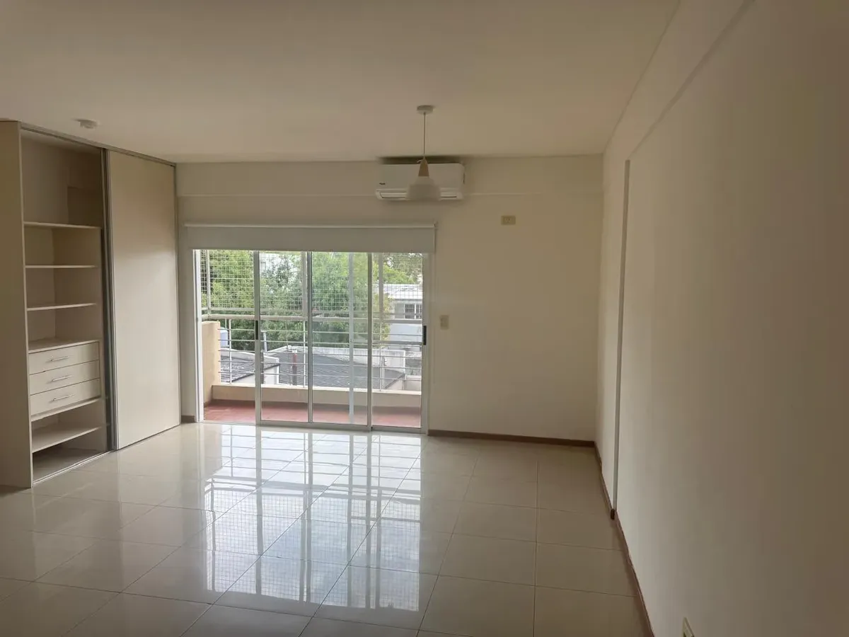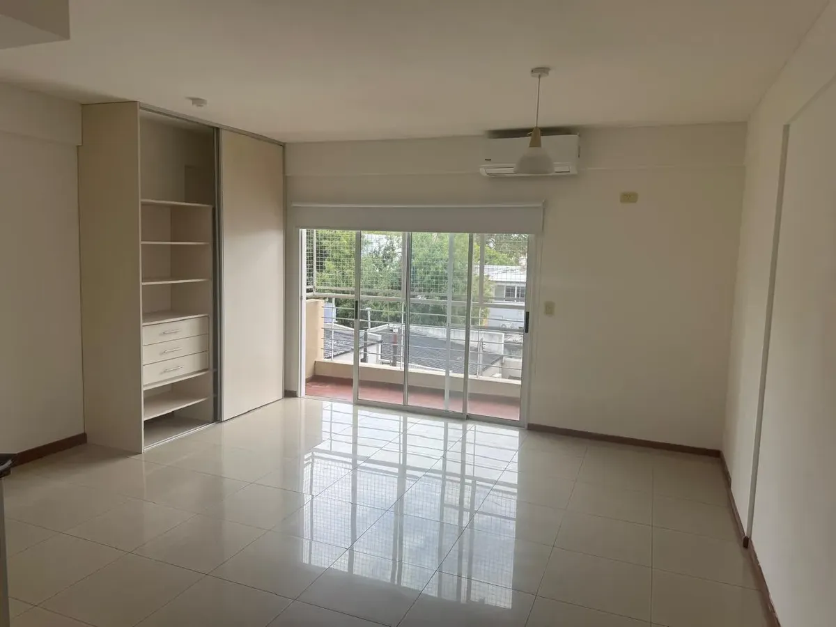 Monoambiente en Villa Urquiza con salida a balcón, ambiente con cocina integrada y placard. Cuenta con aire acondicionado y baño completo.