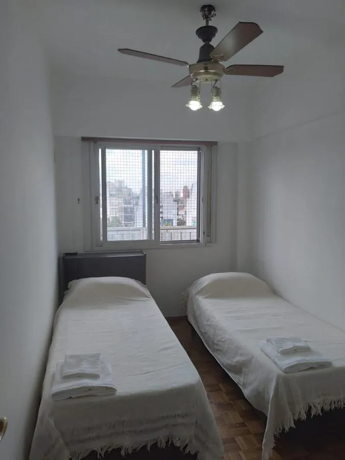 Departamento amoblado de 3 ambientes con balcón, en piso alto, ubicado en Almagro. Tiene 70 m² y capacidad para 4 personas. Living con salida al balcón, TV y mesa con sillas; dormitorio 1 con dos camas simples y placard; dormitorio 2 con dos camas simples, placard y vista abierta. Cocina con heladera, lavarropas y equipamiento (tostadora, pava eléctrica y cafetera); baño completo con bidet y vanitory. Pisos de parquet. El alquiler mensual incluye expensas, AYSA, wifi y limpieza; a cargo del inqu