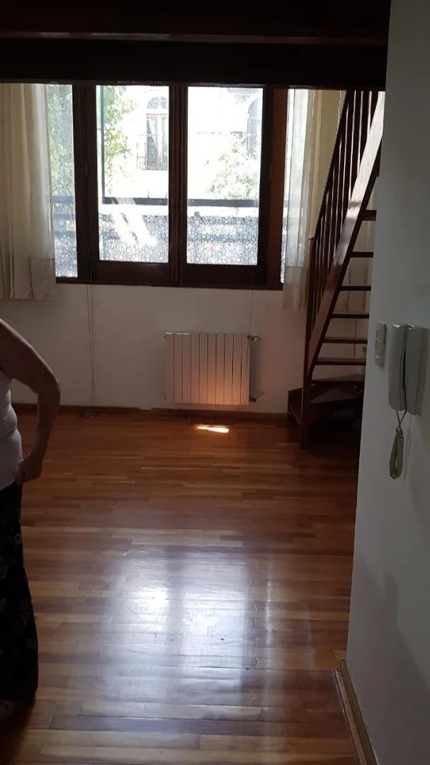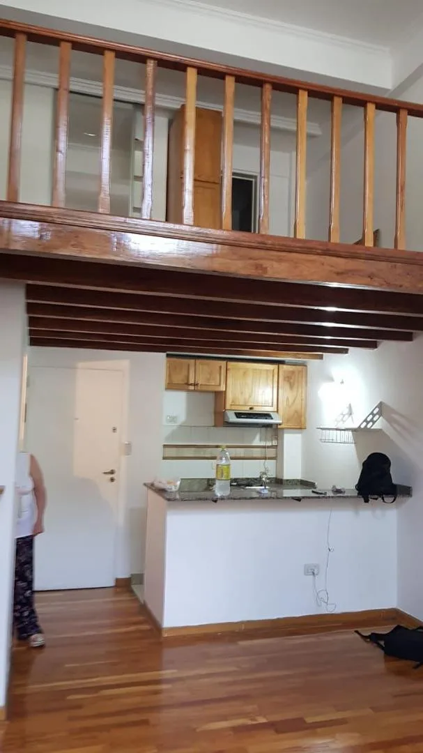 Departamento tipo loft de 2 ambientes con entrepiso, en planta baja al frente, en Almagro. Desarrollado en 2 niveles: en planta baja tiene living-comedor y toilette de recepción; en planta alta se ubica el dormitorio con baño completo en suite. Cuenta con conexión para lavarropas y pisos de parquet. El contrato es por 2 años con ajustes trimestrales por IPC; requiere seguro de caución, mes de adelanto, mes de depósito e ingresos demostrables, además del gasto de informes. Acepta mascotas.