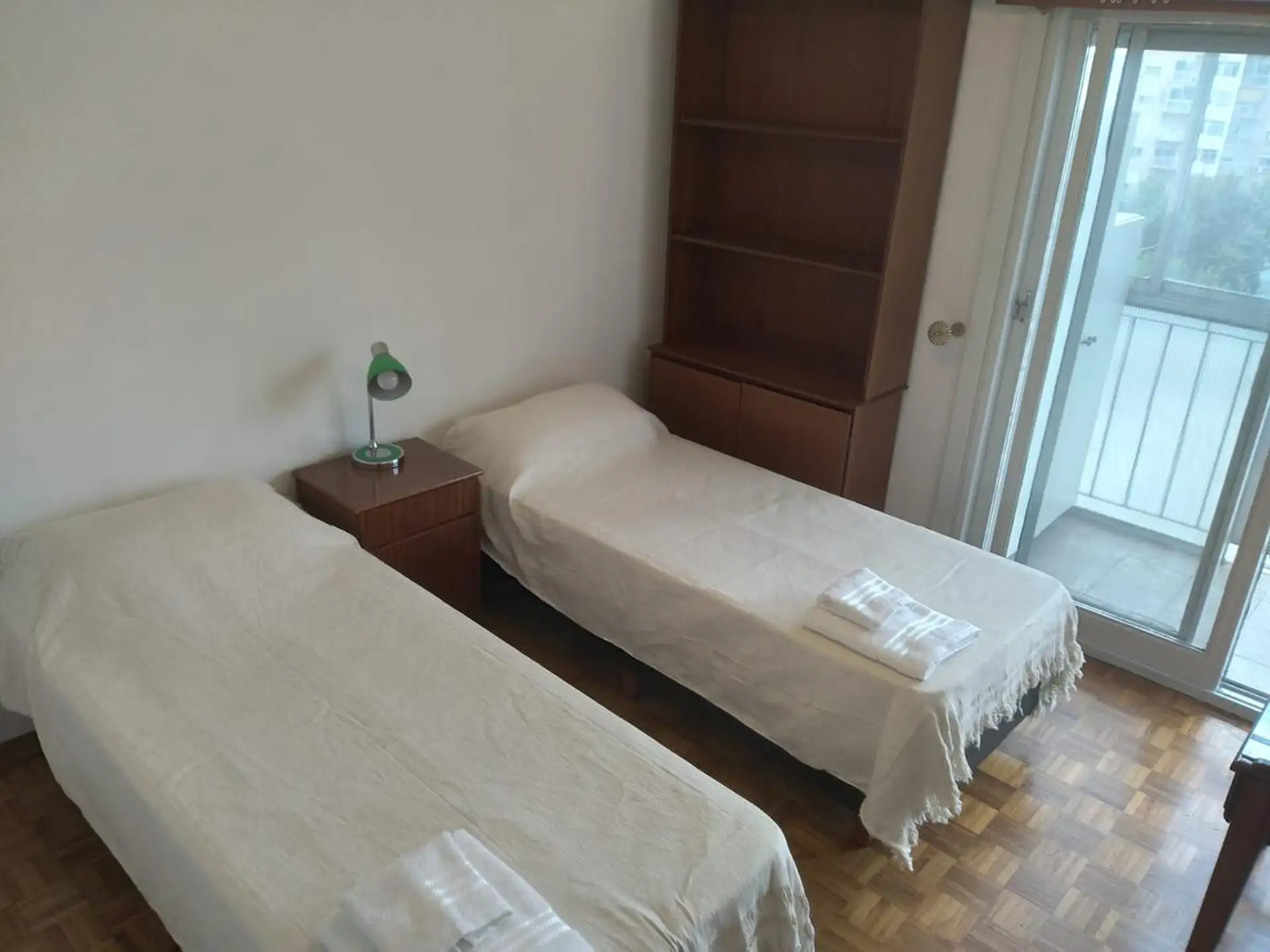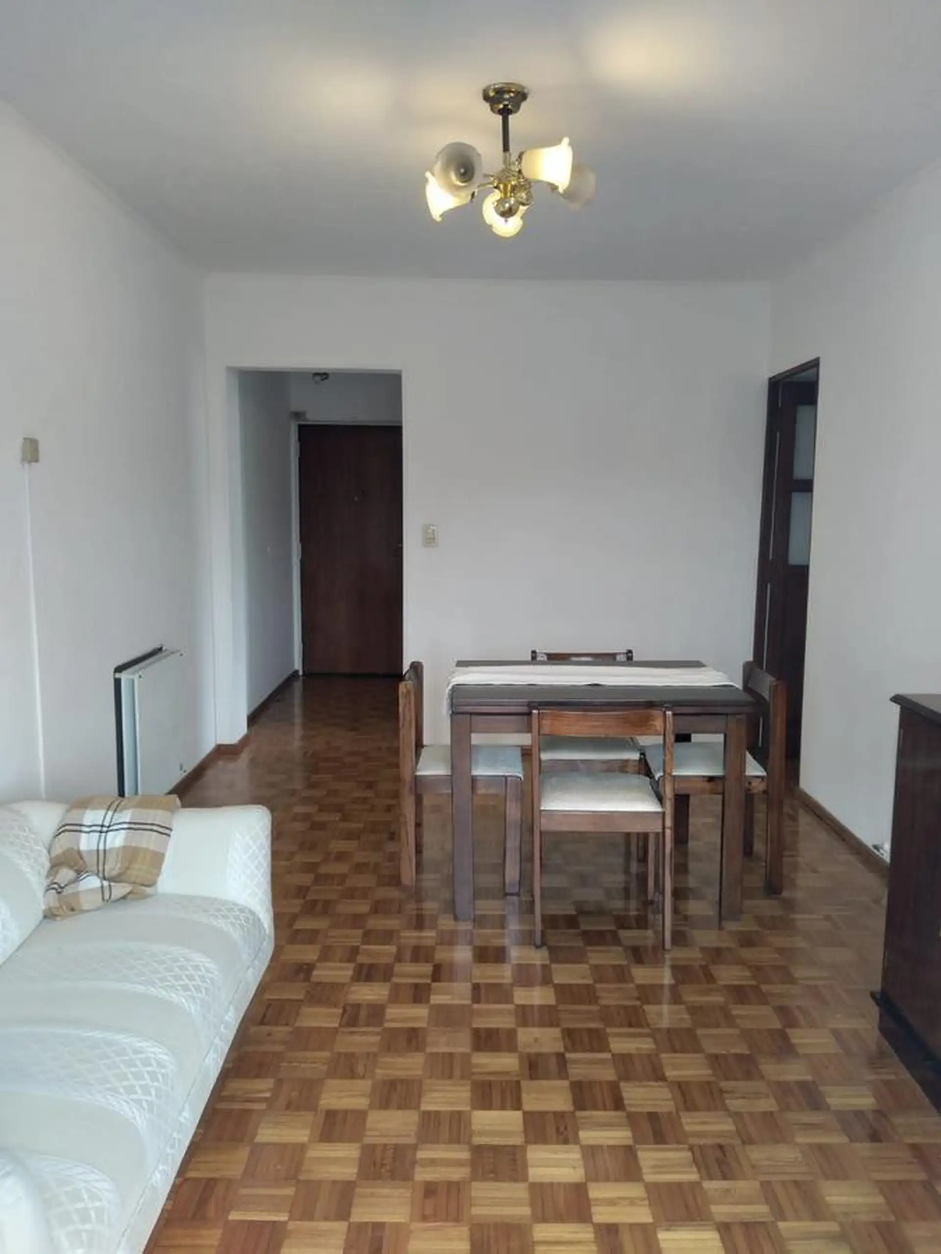 Departamento amoblado de 3 ambientes con balcón, en piso alto, disponible desde agosto de 2026. Living con salida al balcón y TV; dormitorio 1 con dos camas simples, placard y ventanas; dormitorio 2 con dos camas simples, placard y vista abierta. Cocina con heladera, lavarropas y electrodomésticos de uso común; baño completo con bidet y vanitory. El precio mensual incluye expensas, AYSA, WiFi y limpieza; a cargo del inquilino quedan luz y gas.