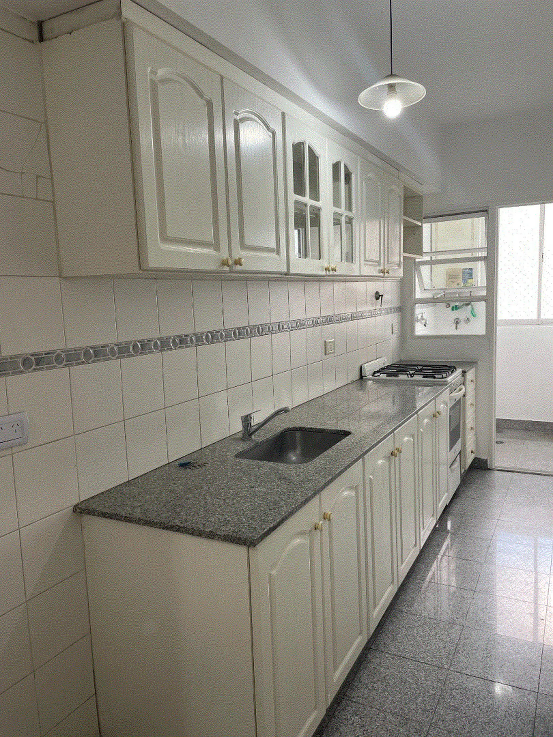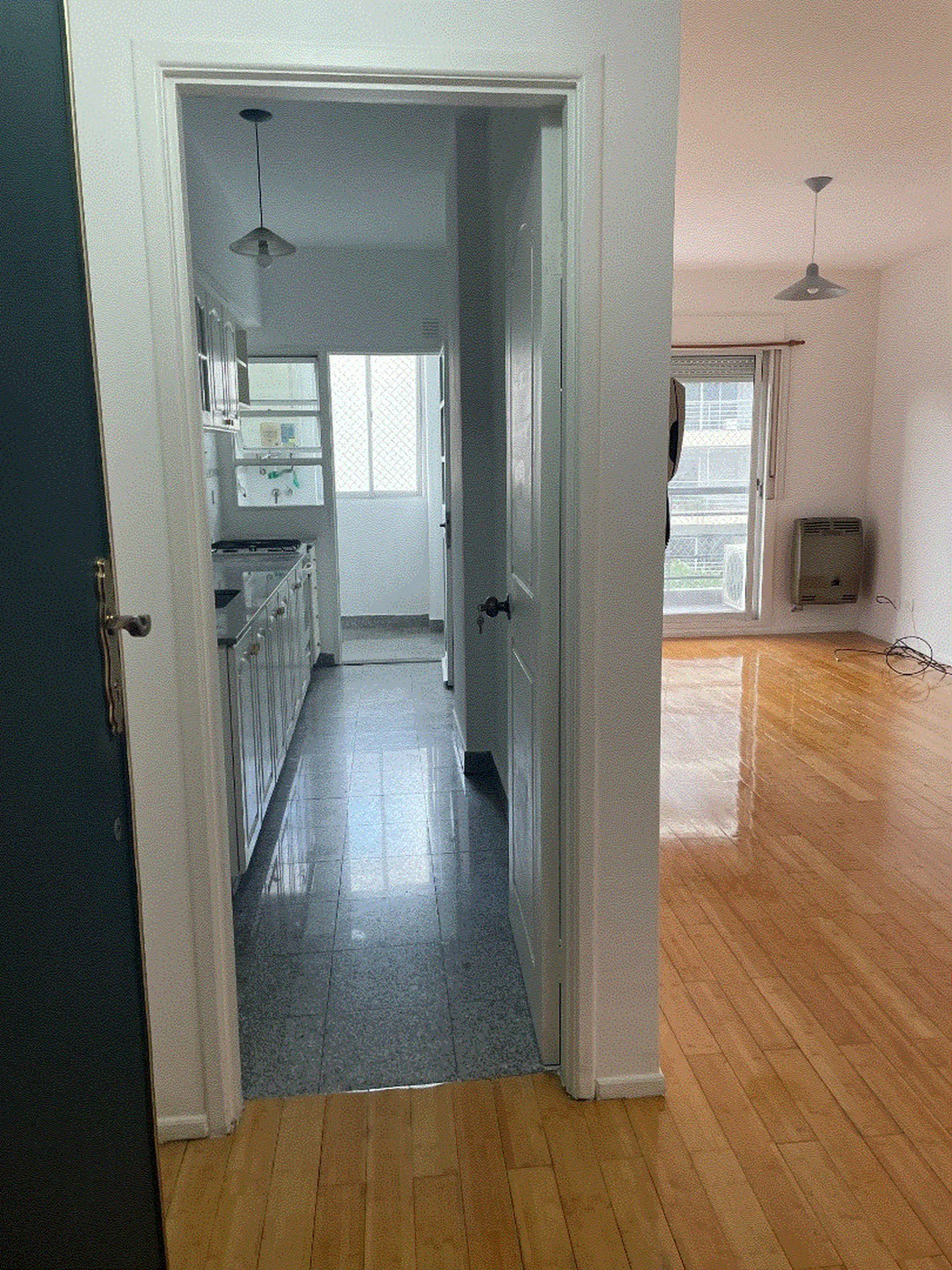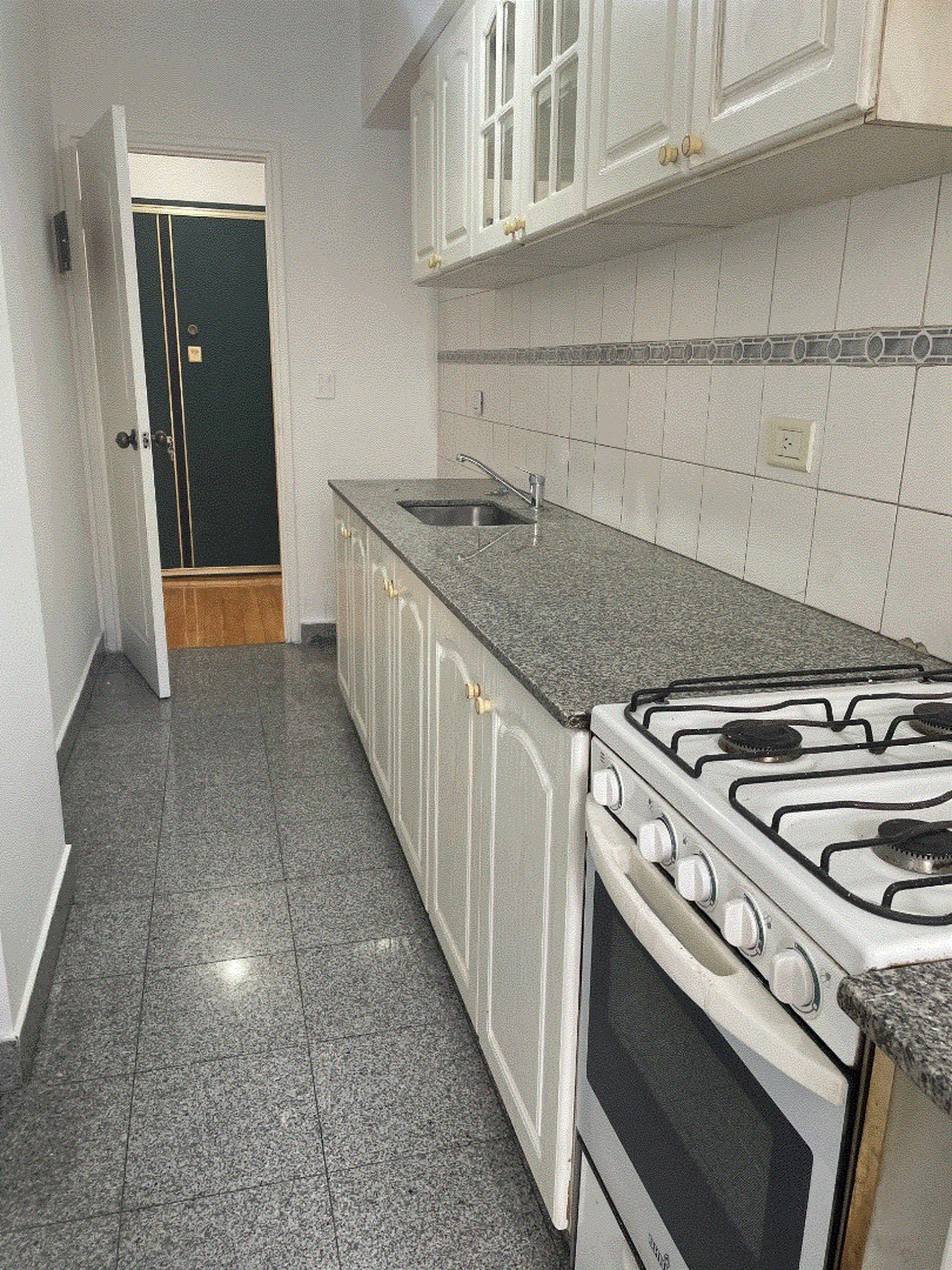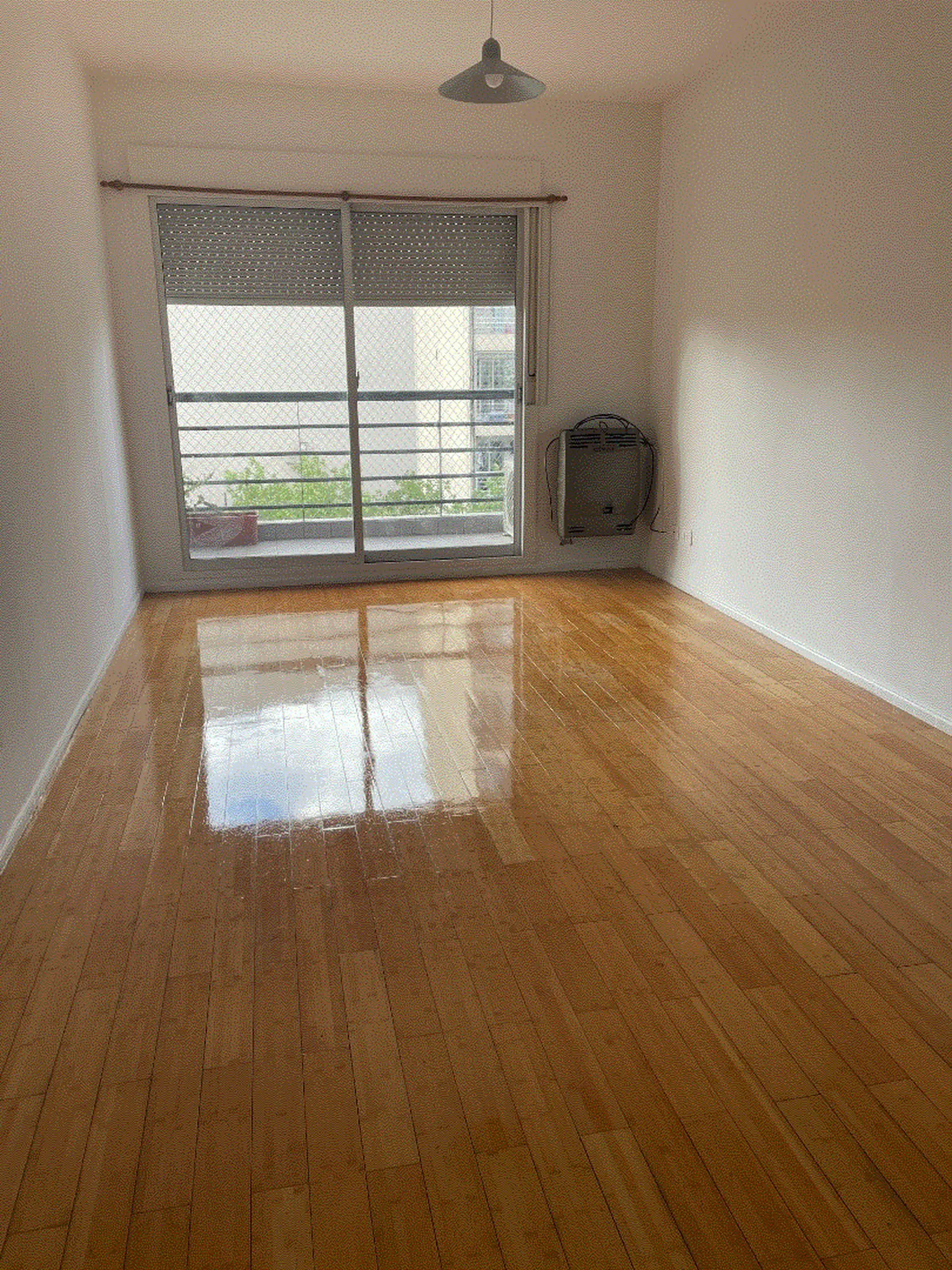 Departamento de 3 ambientes al frente con balcón, en Buenos Aires. Cuenta con 2 dormitorios con placard, living comedor con salida al balcón y cocina completa. Tiene lavadero separado y cochera fija cubierta en primer piso.