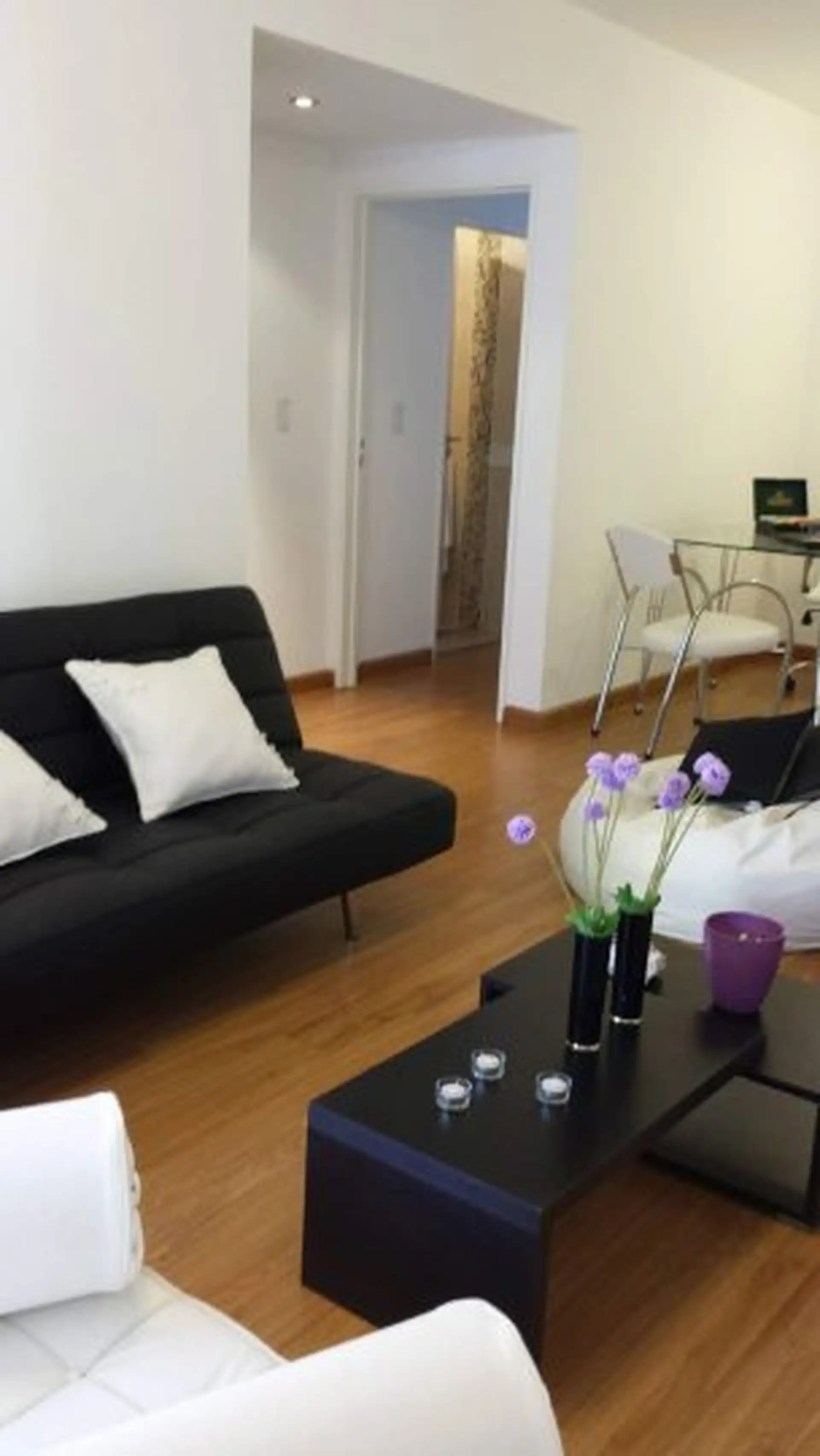 Departamento de 3 ambientes de 75 m² en Almagro, 1er piso, al frente. Cuenta con 2 dormitorios, 2 baños completos y dormitorio principal en suite. Living con aire acondicionado y salida a balcón al frente. Cocina completa con cocina y horno a gas, microondas y heladera con freezer. Tanto el dormitorio principal como el segundo dormitorio tienen placard. El alquiler incluye seguridad 24 hs, laundry con maquinaria industrial, SUM, jardín y juegos para niños, parrilla, pileta semicubierta y solariu