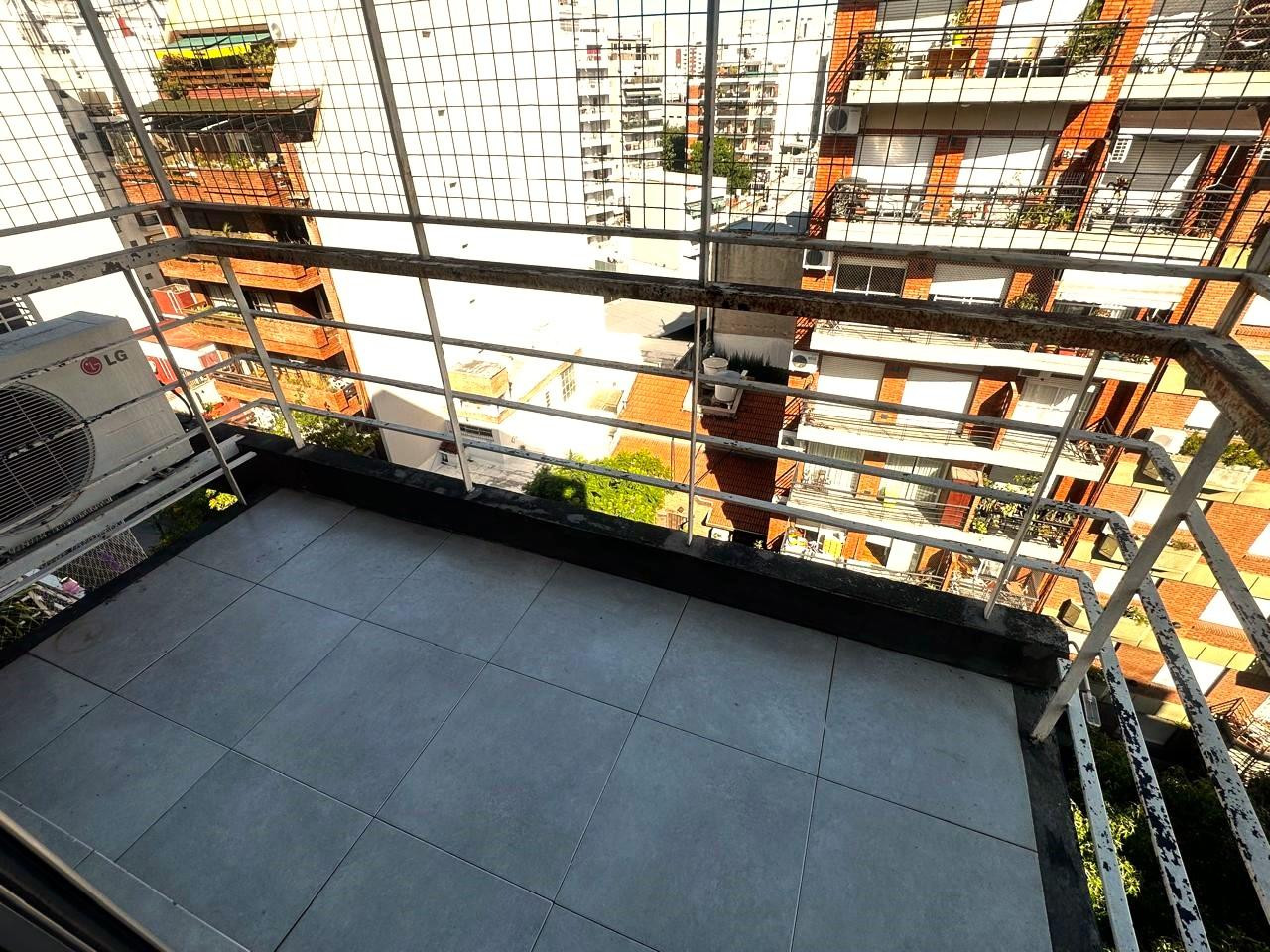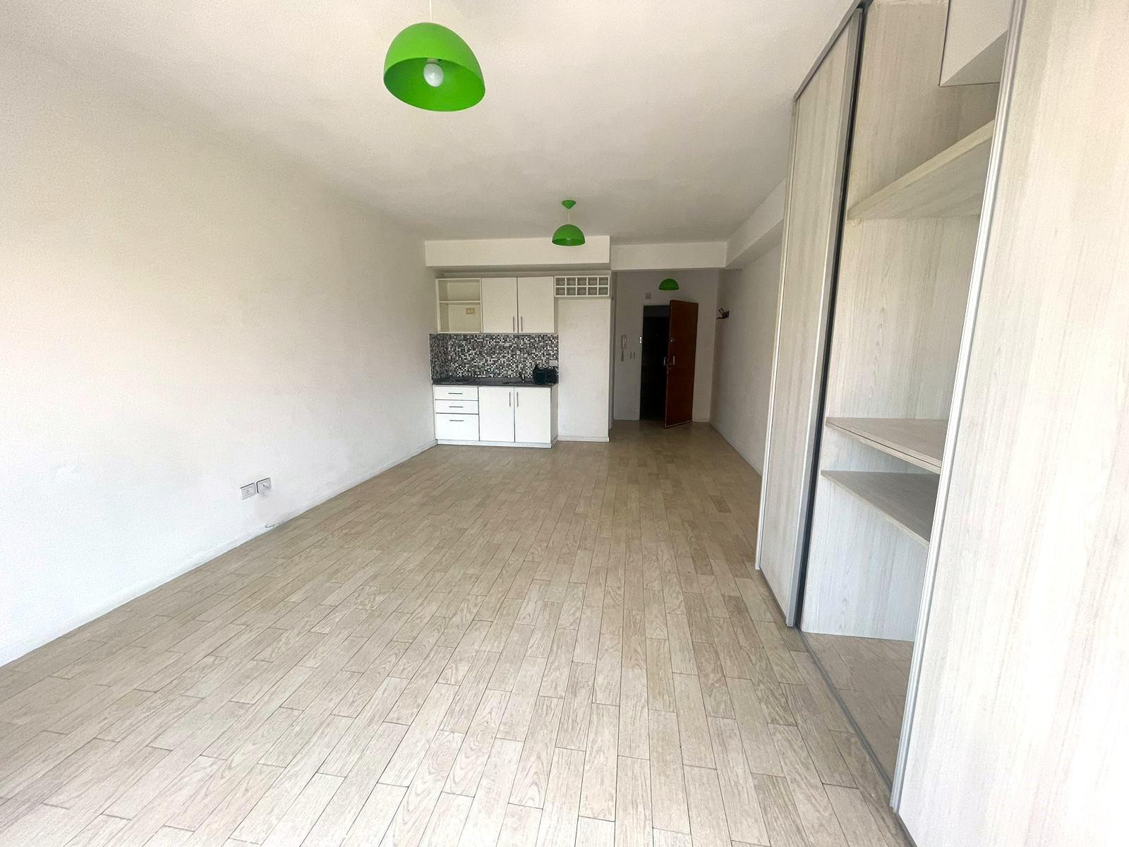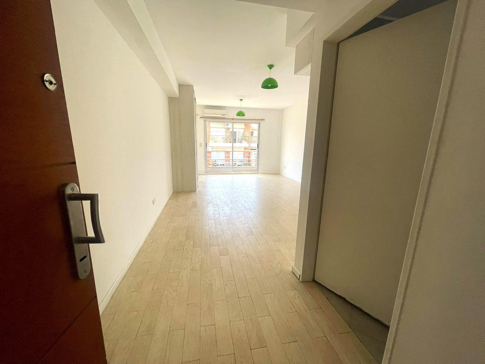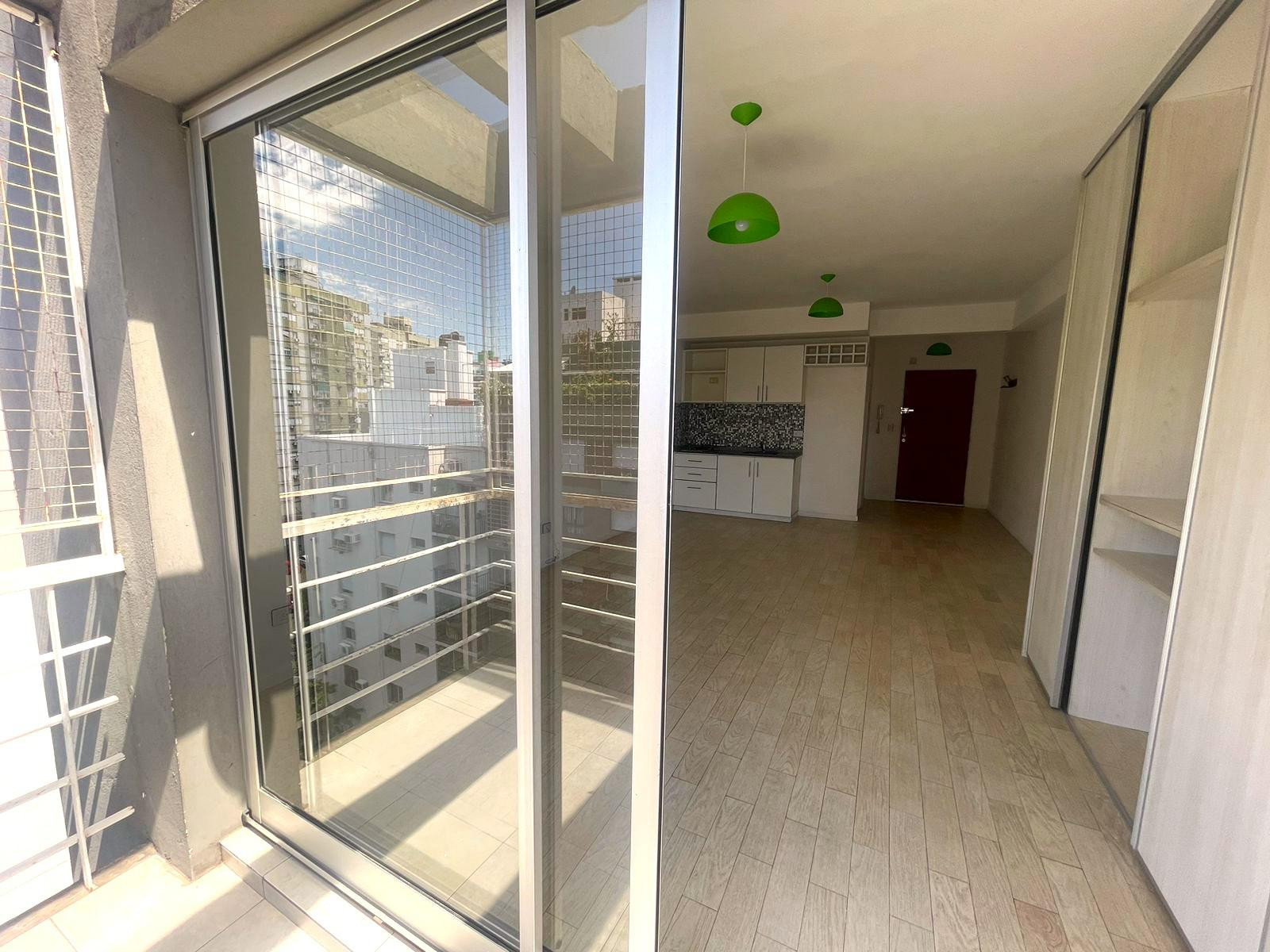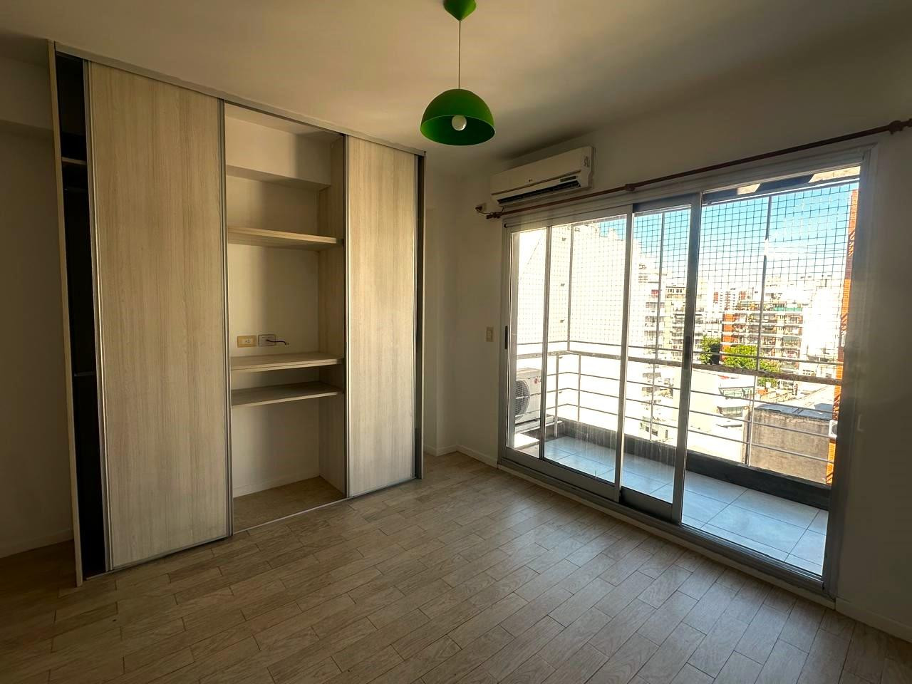 Monoambiente en alquiler en Almagro, con balcón y cerramiento. Cocina integrada, placard multifuncional, aire acondicionado y pequeña baulera en palier. El edificio tiene 9 pisos, con laundry y terraza con parrilla. Se ubica entre las calles Río de Janeiro y Ramos Mejía, a 1 cuadra de Parque Centenario.