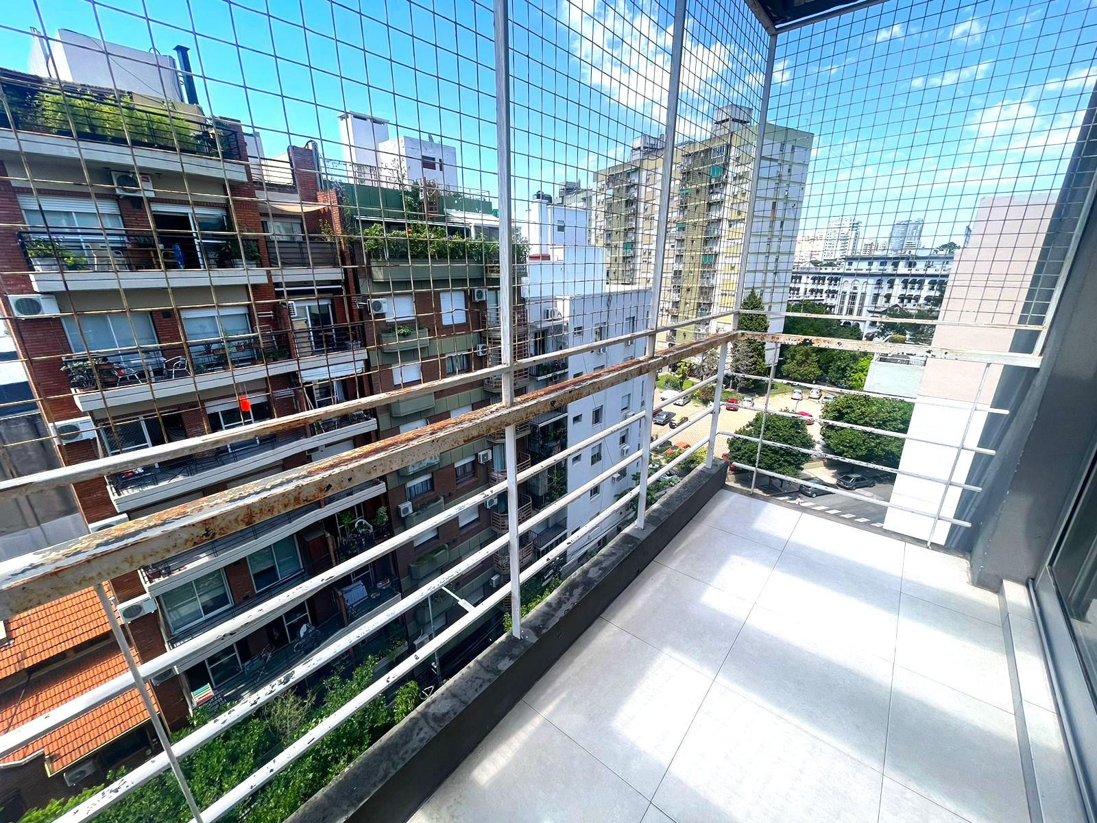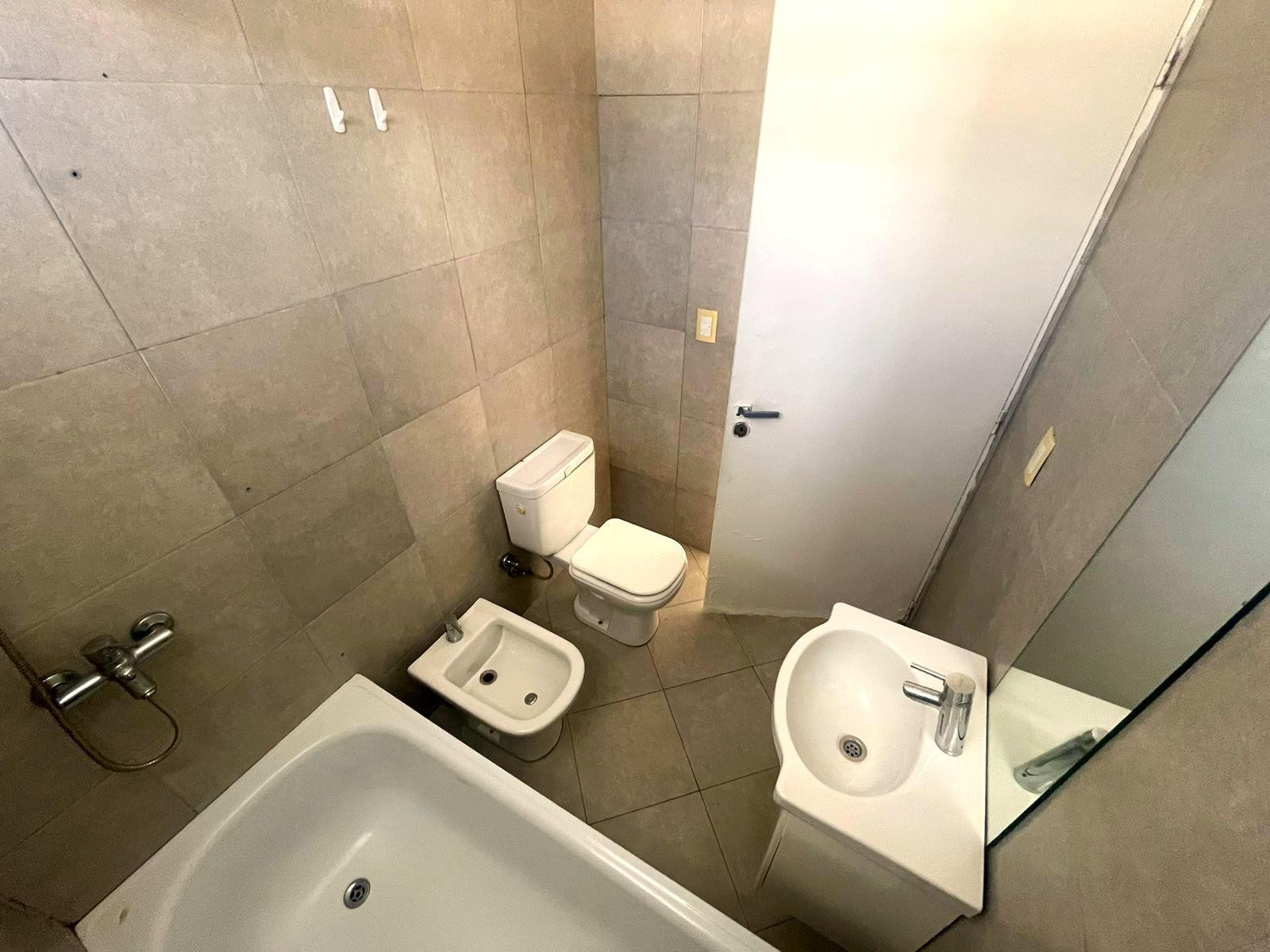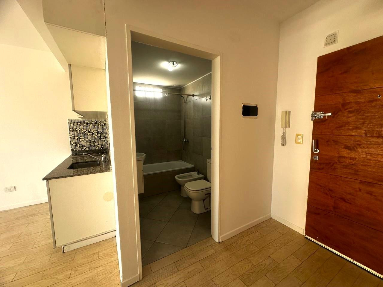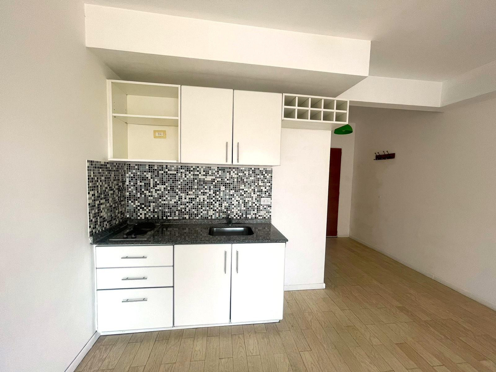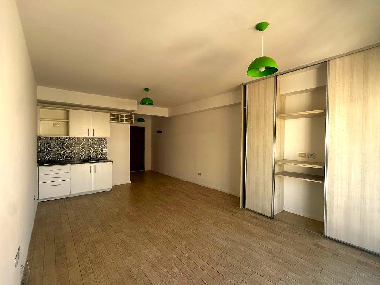 Monoambiente en alquiler en Almagro, con balcón y cerramiento. Cocina integrada, placard multifuncional, aire acondicionado y pequeña baulera en palier. El edificio tiene 9 pisos, con laundry y terraza con parrilla. Se ubica entre las calles Río de Janeiro y Ramos Mejía, a 1 cuadra de Parque Centenario.