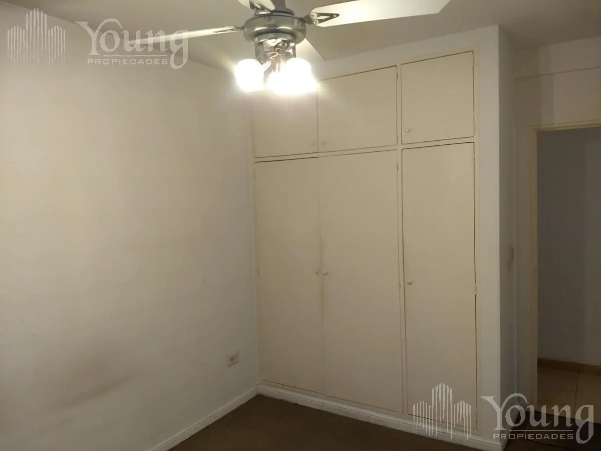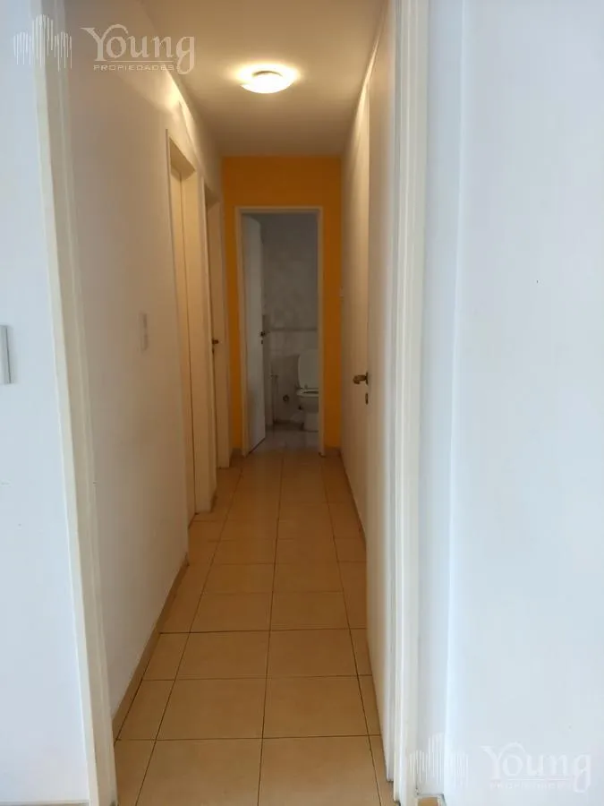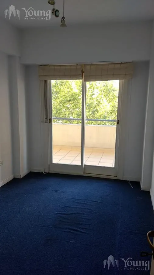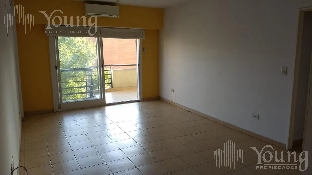 Departamento en semipiso al contrafrente, en un sexto piso, con balcón y vista abierta. Dispone de 2 habitaciones con placard empotrado de madera, ventiladores de techo y equipos de aire frío/calor. Cuenta con baño completo y lavadero, cocina con alacena y muebles bajo mesada, bacha de acero y mesada de granito. Incluye caldera Peisa para losa radiante; el edificio tiene 2 ascensores y cochera subterránea.