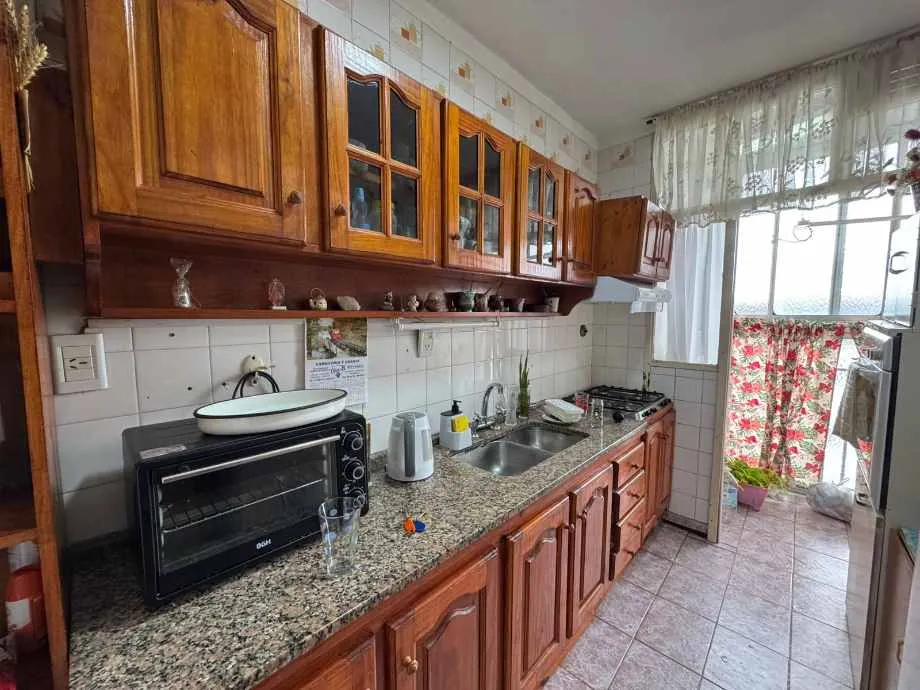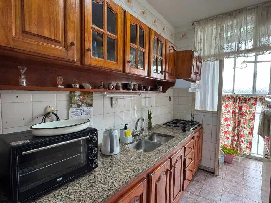 Apartamento de três ambientes no Complexo Las Flores, torre 33, em Wilde (Av. Las Flores 1600). A unidade tem cozinha separada, sala de estar e jantar, área de lavanderia, 2 quartos com armários embutidos e 1 banheiro completo. O complexo tem parque com áreas verdes e setor de jogos para crianças, com vigilância 24 horas. Contrato de 2 anos com ajustes a cada 4 meses pelo IPC.