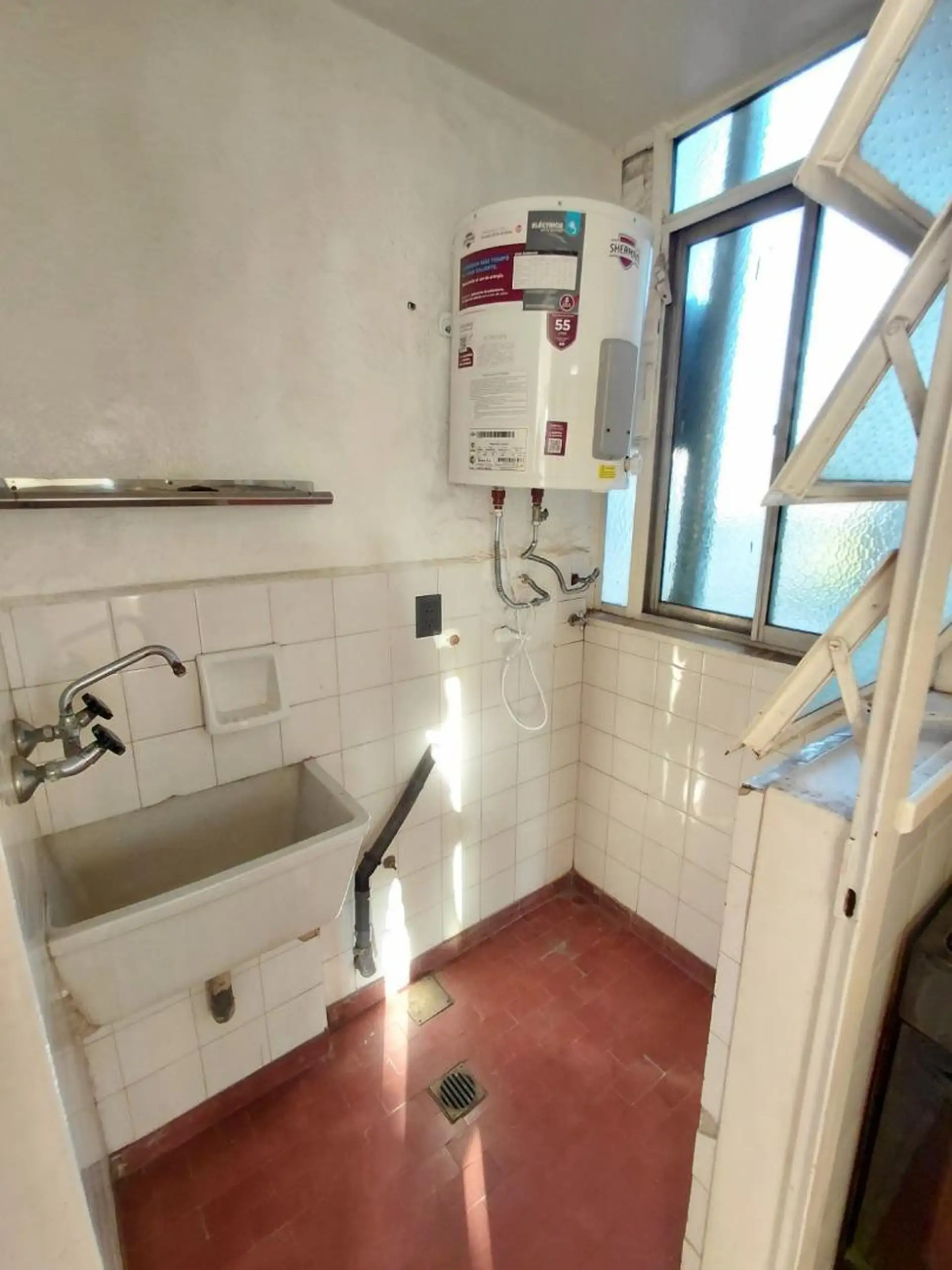 Departamento de 3 ambientes con 2 dormitorios, 49 m², en contrafrente. Cuenta con balcón francés, cocina con lavadero aparte y baño completo. Dispone de termotanque eléctrico. Las expensas, que incluyen AYSA, son de $240.000; el guardacoches es de $71.000. El alquiler es de $750.000 con ajuste trimestral por IPC; depósito USD 600. Requiere recibo de sueldo y seguro de caución o garantía propietaria en CABA. No se admiten mascotas. El edificio no cumple con la ley 5115 para accesibilidad para mov