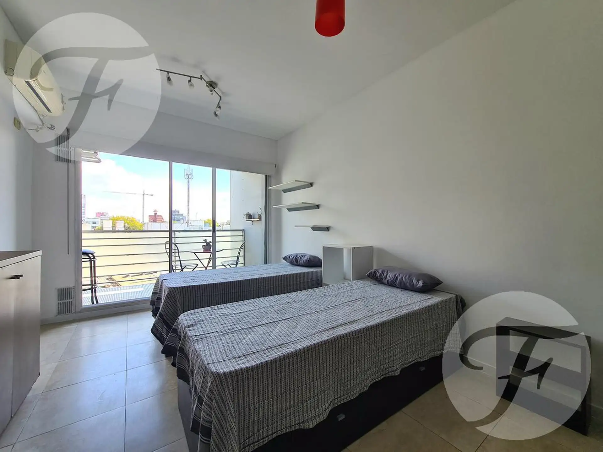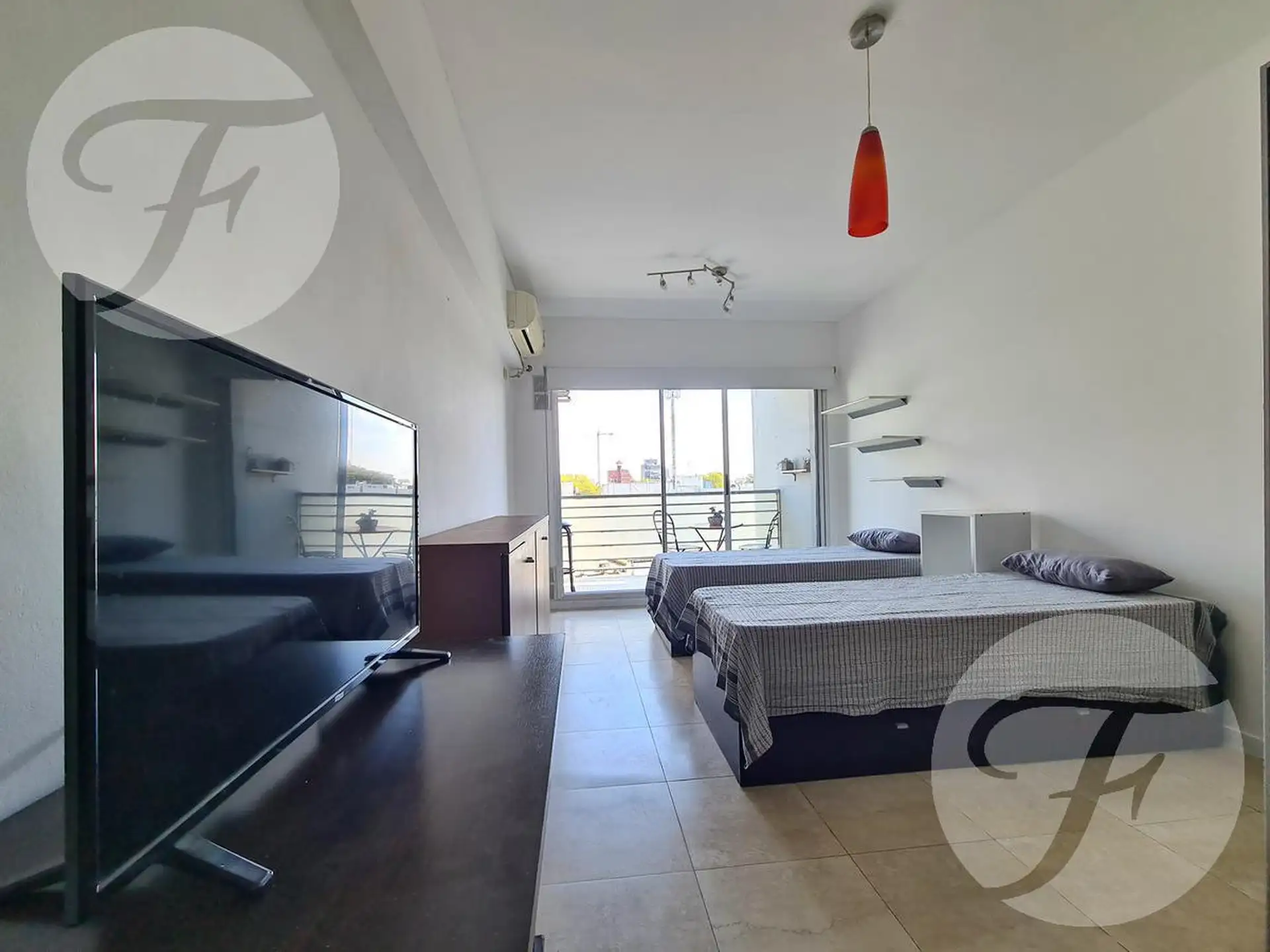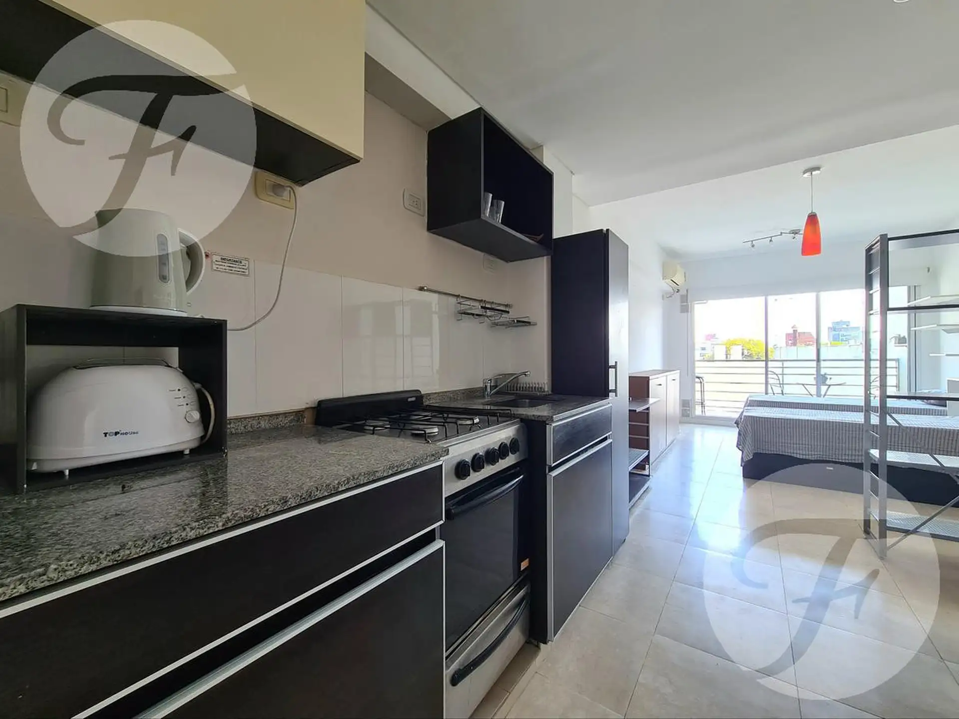 Monoambiente de alquiler temporario en un 7° piso al frente, con balcón. La unidad cuenta con cocina americana integrada, heladera con freezer, cocina a gas con horno, mesa con 4 sillas y placard de melamina; además dispone de baño completo con bañera y dos camas de 1 plaza. El edificio tiene encargado, ascensores, lavadero, piscina, solárium y terraza compartida. Disponibilidad 15/02/2026. Alquiler por contrato de 3 meses: 1 mes de adelanto y 1 mes de depósito en garantía; máximo 2 personas; in
