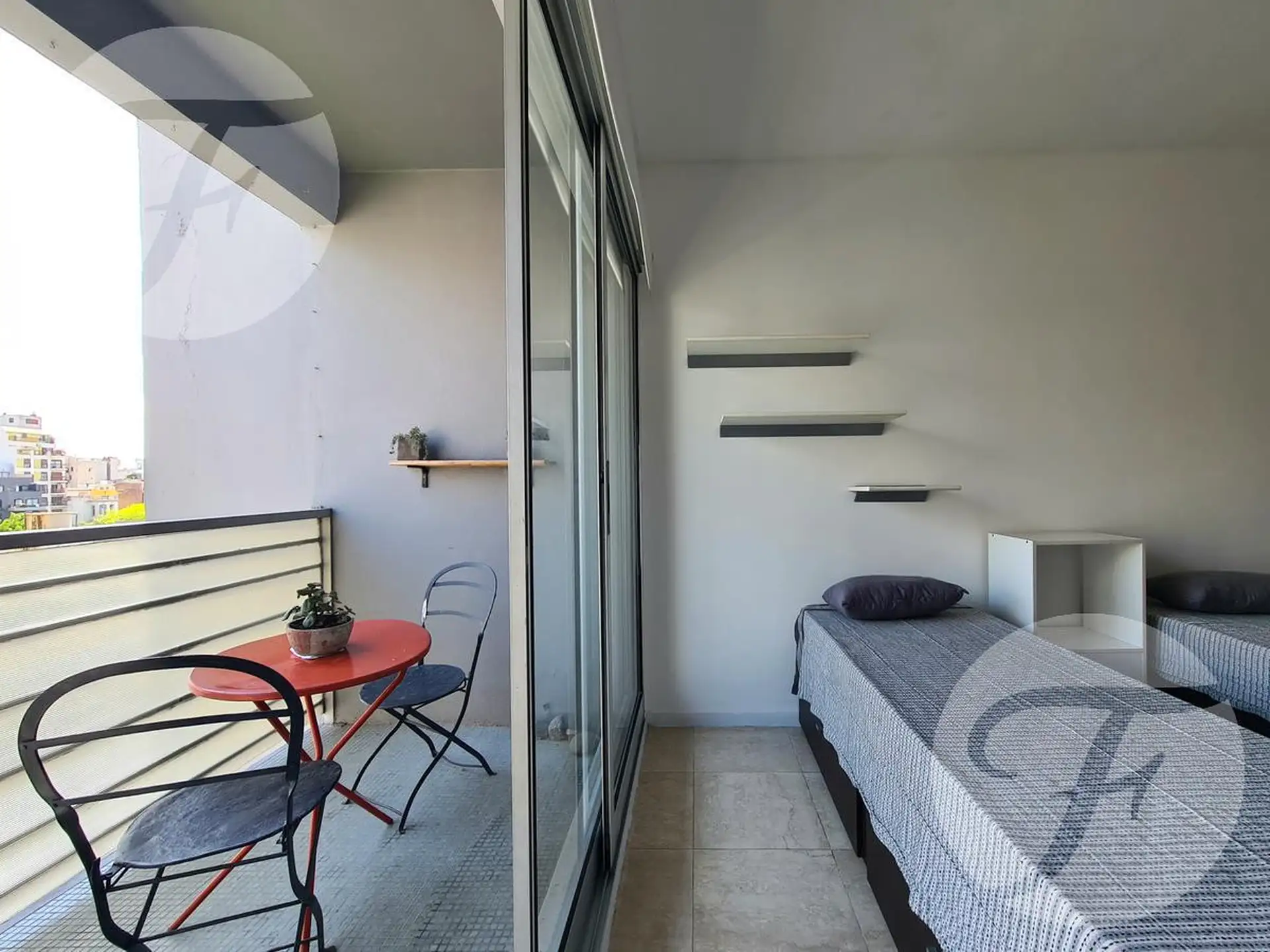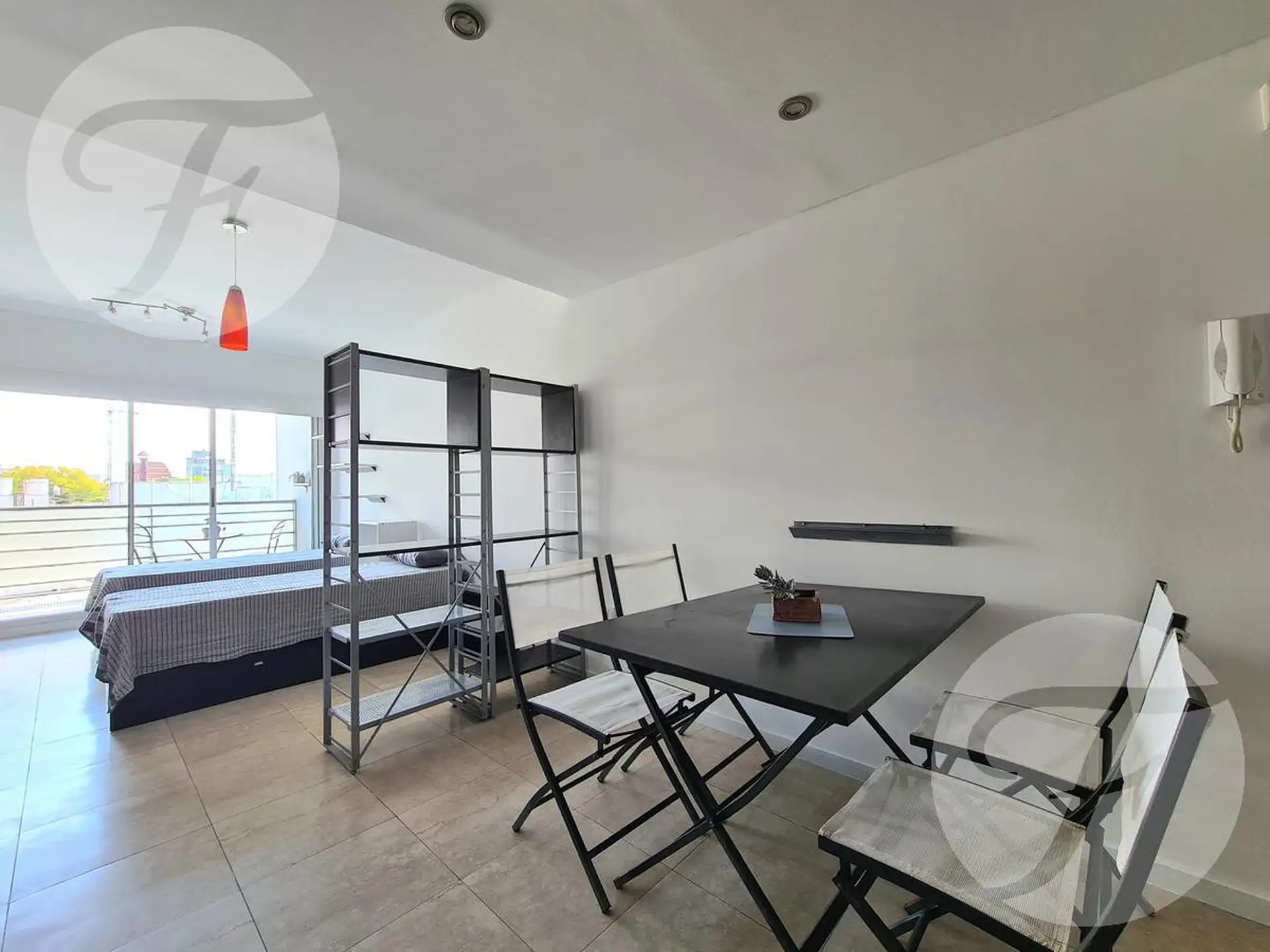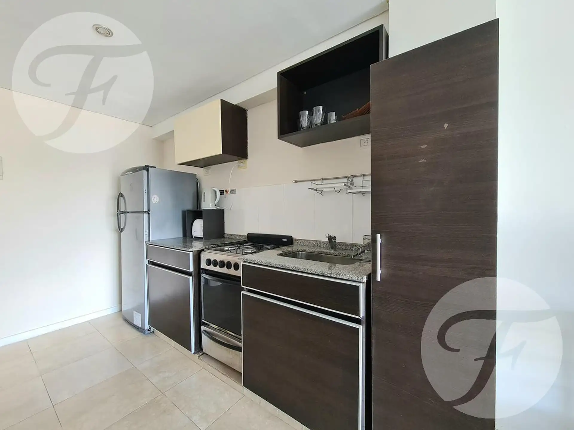Monoambiente de alquiler temporario en un 7° piso al frente, con balcón. La unidad cuenta con cocina americana integrada, heladera con freezer, cocina a gas con horno, mesa con 4 sillas y placard de melamina; además dispone de baño completo con bañera y dos camas de 1 plaza. El edificio tiene encargado, ascensores, lavadero, piscina, solárium y terraza compartida. Disponibilidad 15/02/2026. Alquiler por contrato de 3 meses: 1 mes de adelanto y 1 mes de depósito en garantía; máximo 2 personas; in