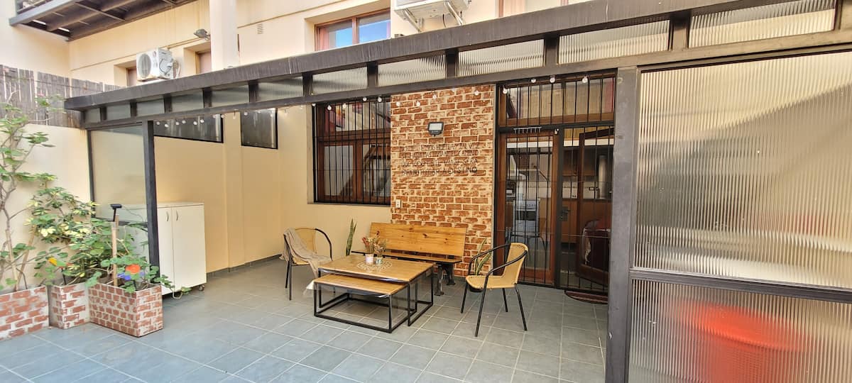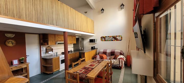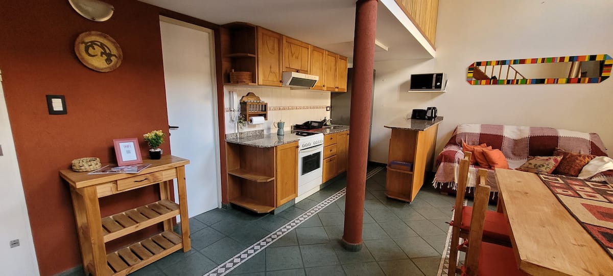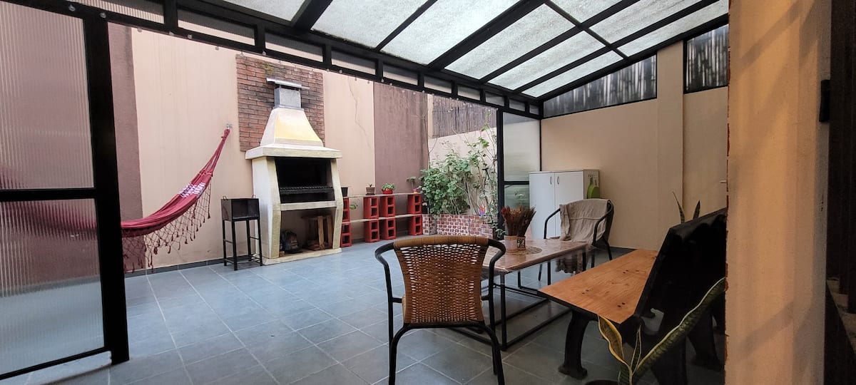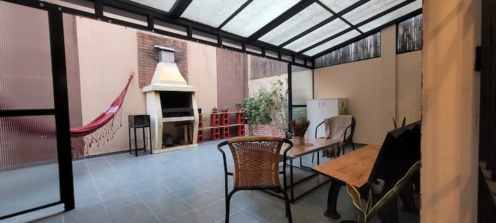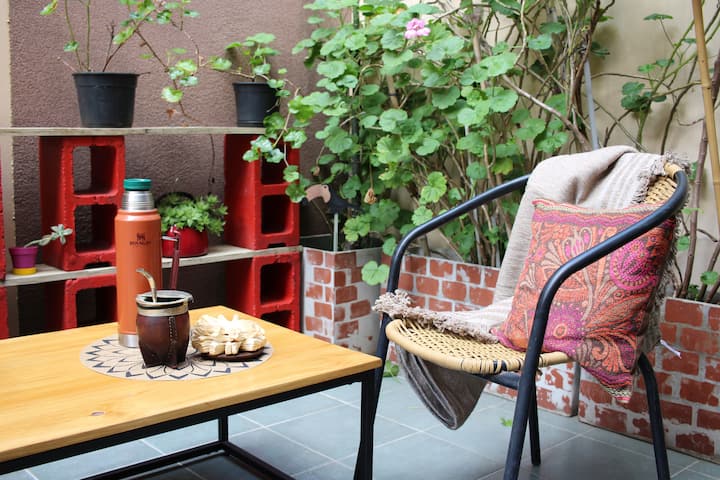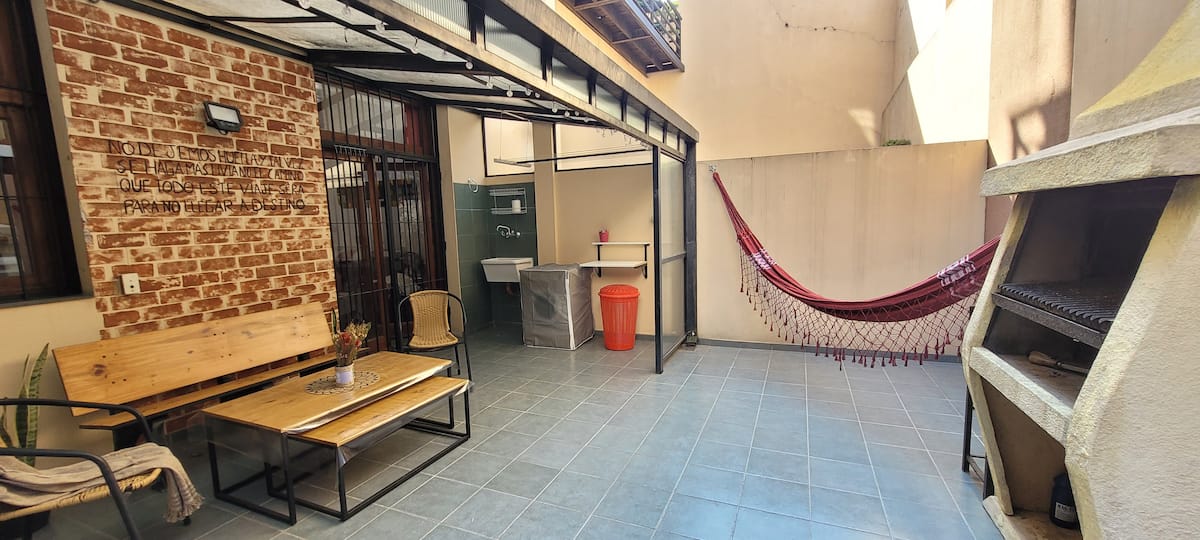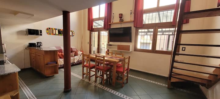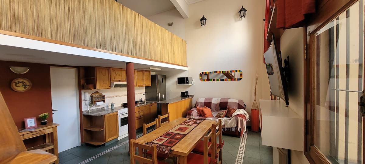 Loft en planta baja en Boedo, con 2 dormitorios y patio semitechado. Cuenta con área de living y comedor, cocina equipada con pava, horno, cafetera, tostadora y microondas, y 1 baño completo con ducha y 1 toilette. La zona de dormitorios tiene cama king, 2 camas individuales, vestidor y 1 baño completo con ducha. Incluye patio con parrilla y sector de lavadero con pileta, lavarropas y bacha de secado; hay WiFi. A 4 cuadras de Av. San Juan.