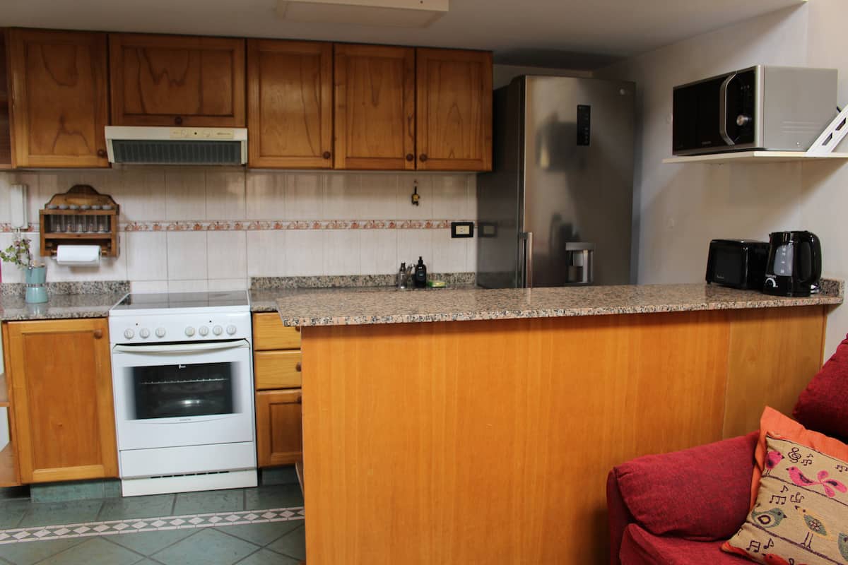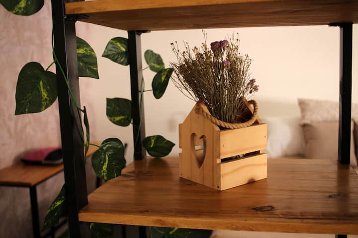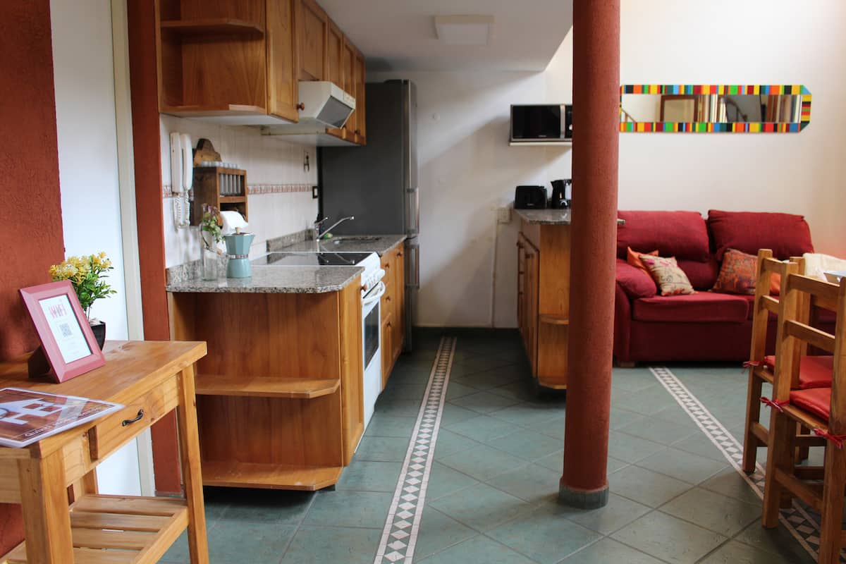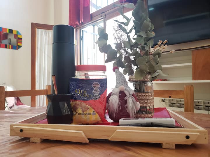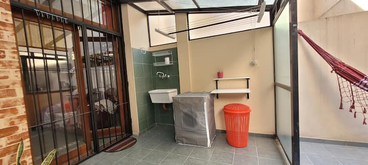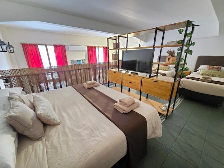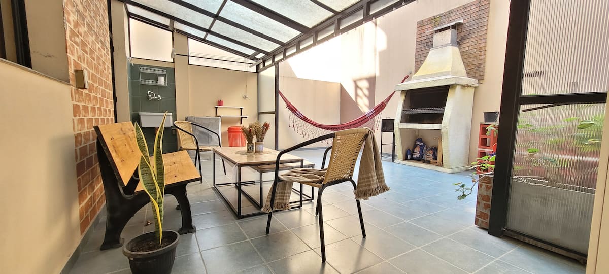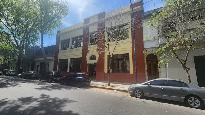 Loft en planta baja en Boedo, con 2 dormitorios y patio semitechado. Cuenta con área de living y comedor, cocina equipada con pava, horno, cafetera, tostadora y microondas, y 1 baño completo con ducha y 1 toilette. La zona de dormitorios tiene cama king, 2 camas individuales, vestidor y 1 baño completo con ducha. Incluye patio con parrilla y sector de lavadero con pileta, lavarropas y bacha de secado; hay WiFi. A 4 cuadras de Av. San Juan.