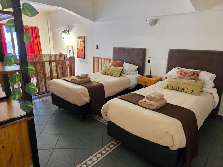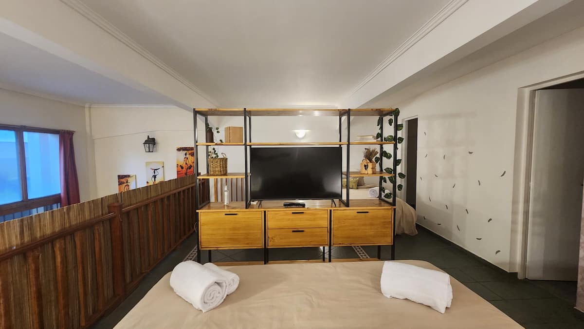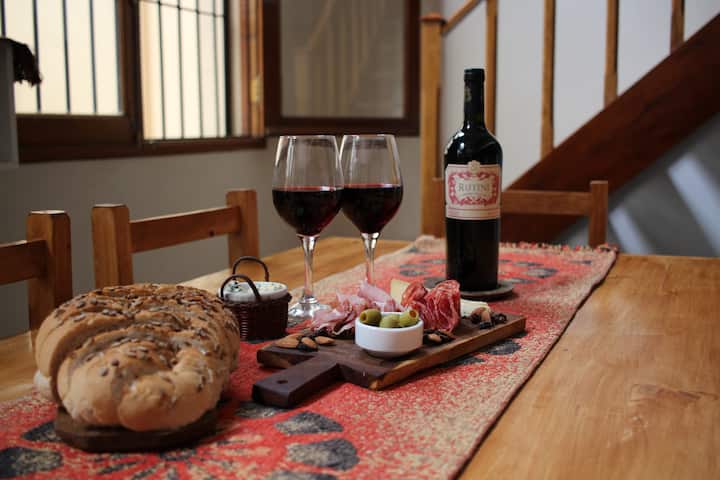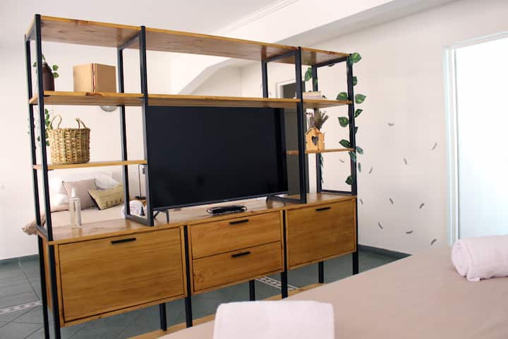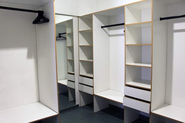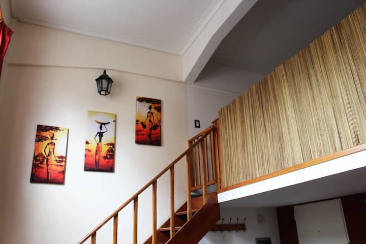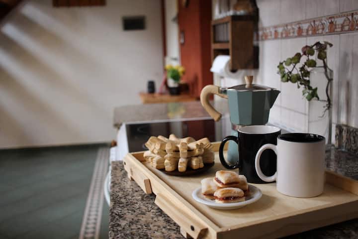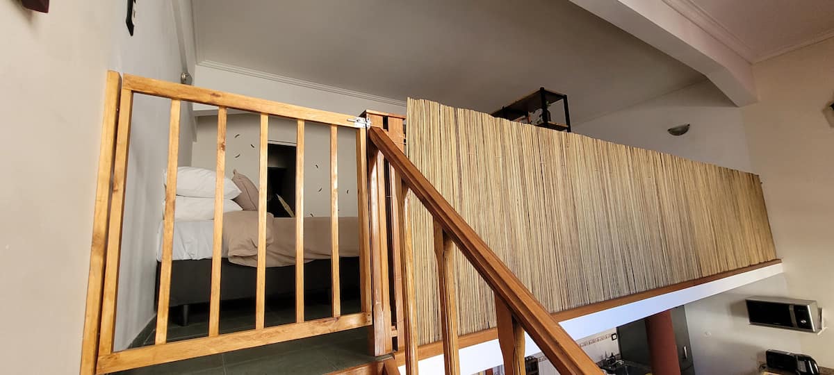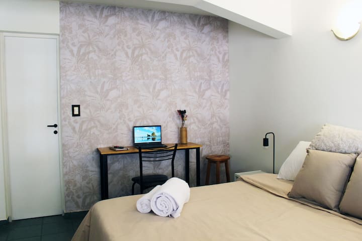 Loft en planta baja en Boedo, con 2 dormitorios y patio semitechado. Cuenta con área de living y comedor, cocina equipada con pava, horno, cafetera, tostadora y microondas, y 1 baño completo con ducha y 1 toilette. La zona de dormitorios tiene cama king, 2 camas individuales, vestidor y 1 baño completo con ducha. Incluye patio con parrilla y sector de lavadero con pileta, lavarropas y bacha de secado; hay WiFi. A 4 cuadras de Av. San Juan.