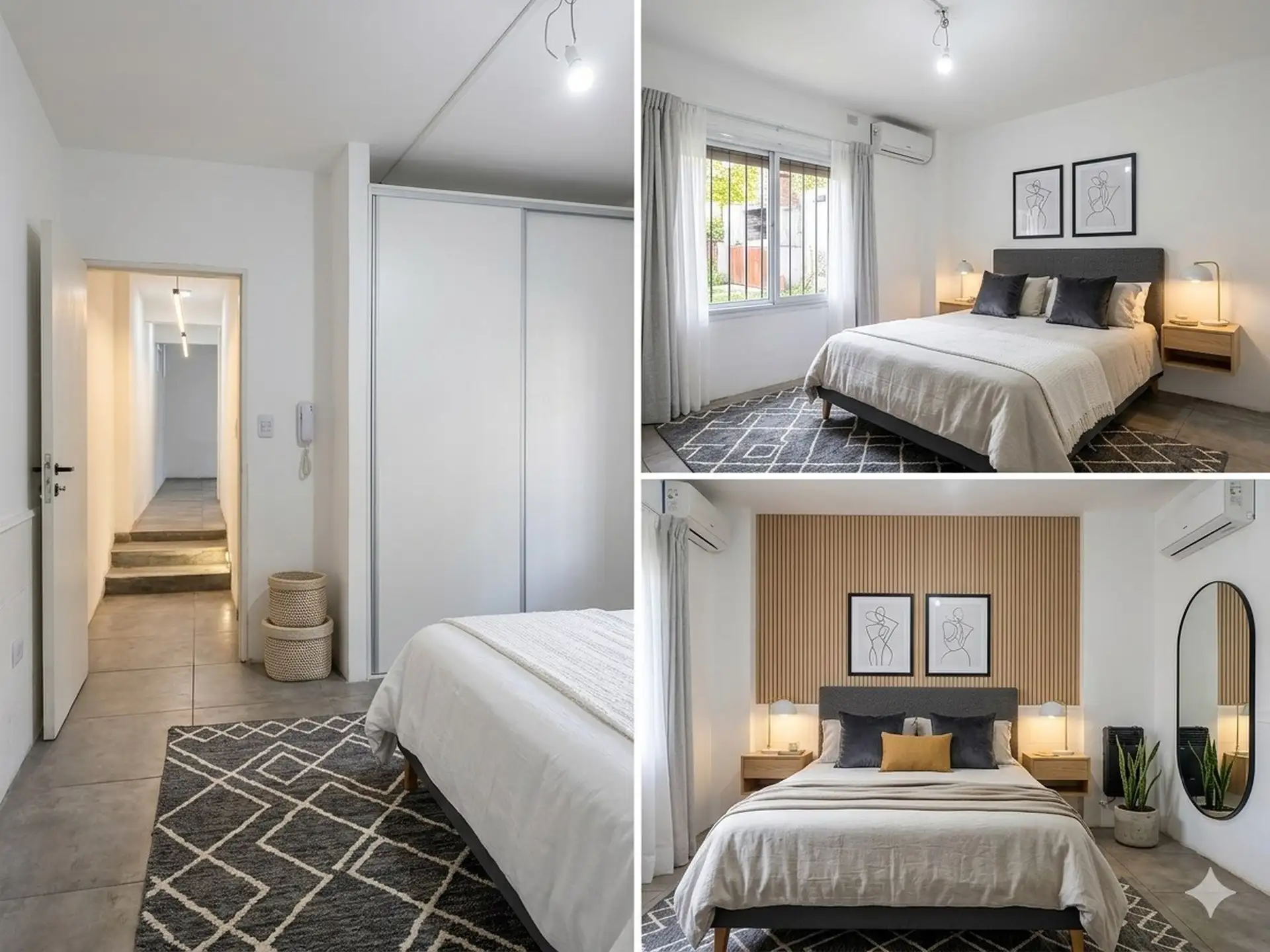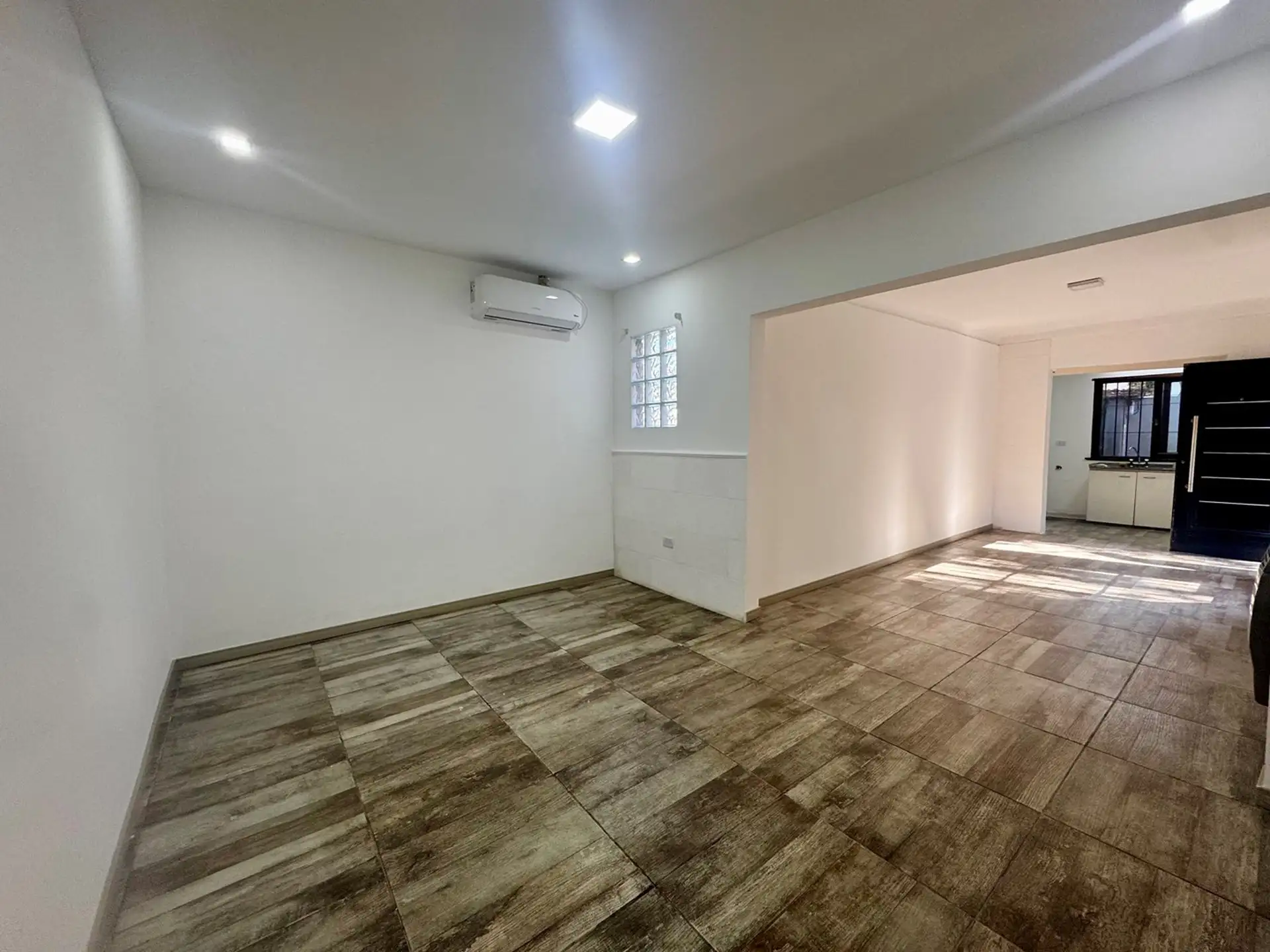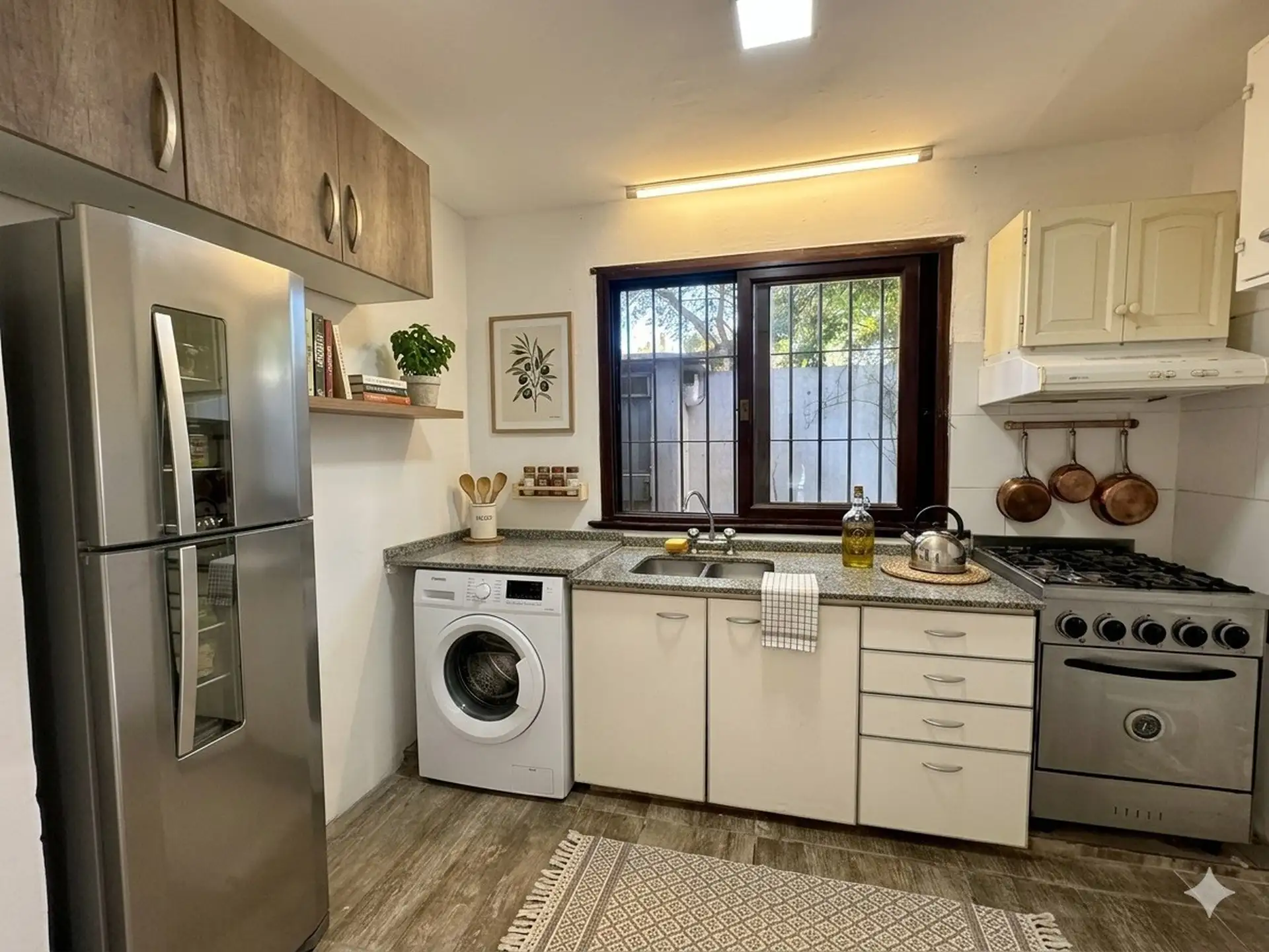 Casa de 2 dormitorios desarrollada en una planta, con living-comedor y cocina integrada. Incluye 1 baño completo. Cuenta con jardín propio con parrilla, galería techada y entrada de auto dentro del predio. Se ubica en Boulogne, a pocas cuadras de la Autopista Panamericana.