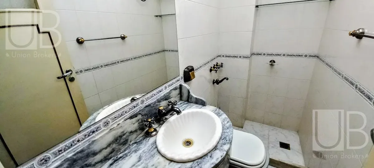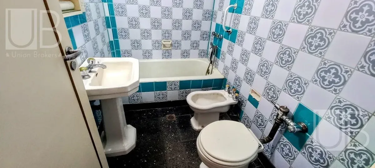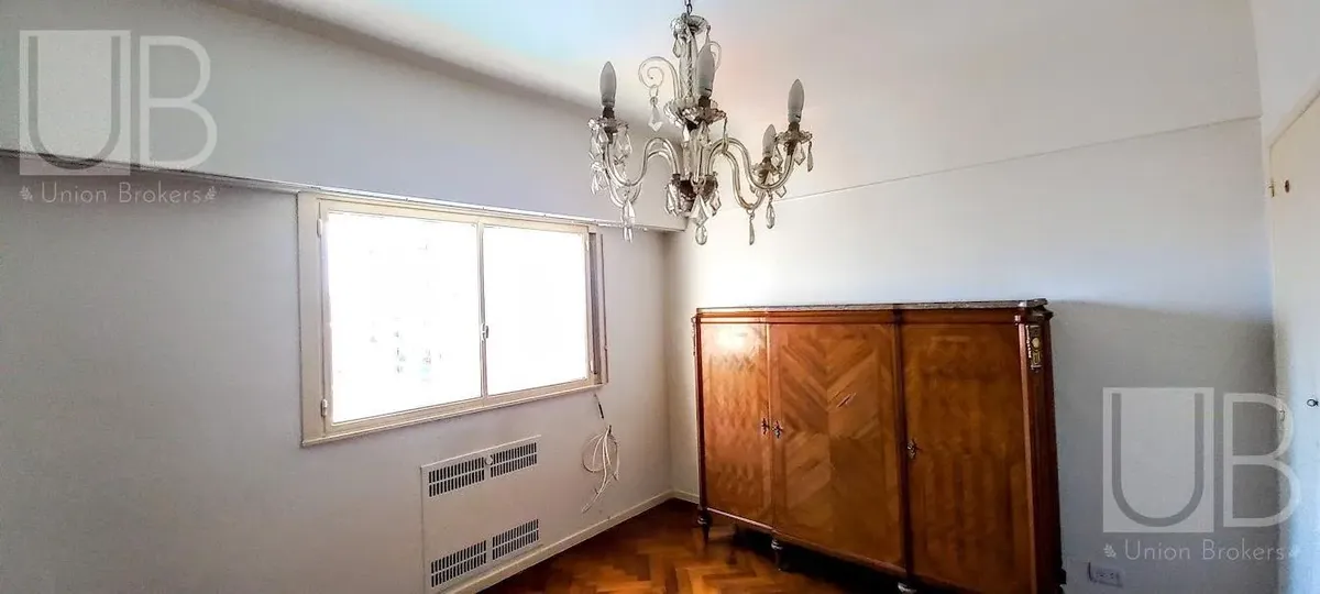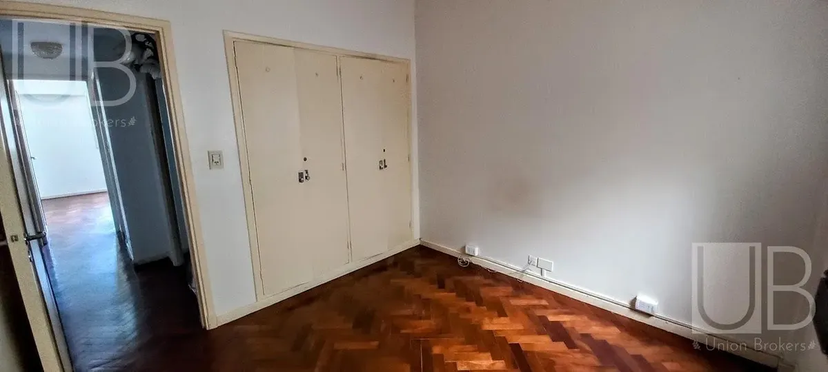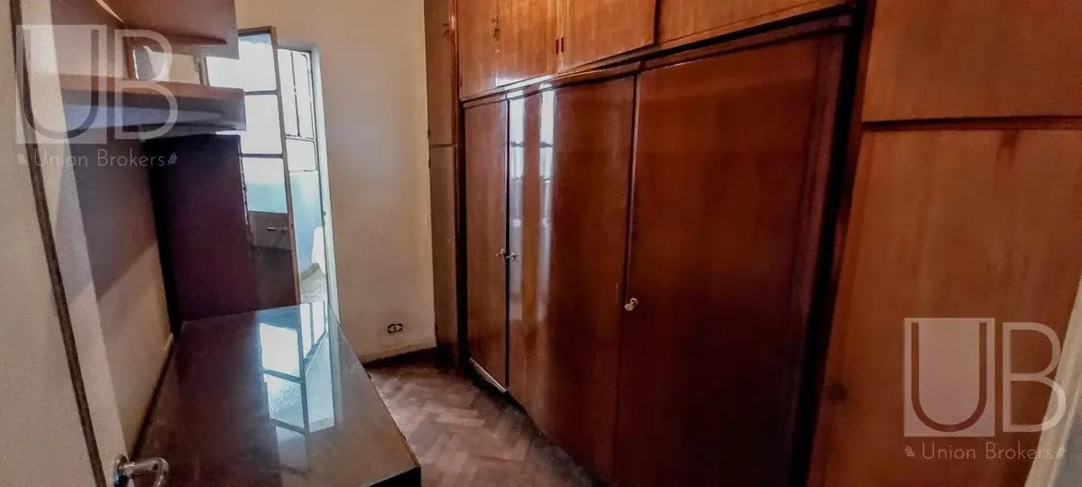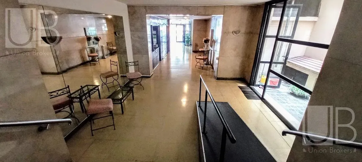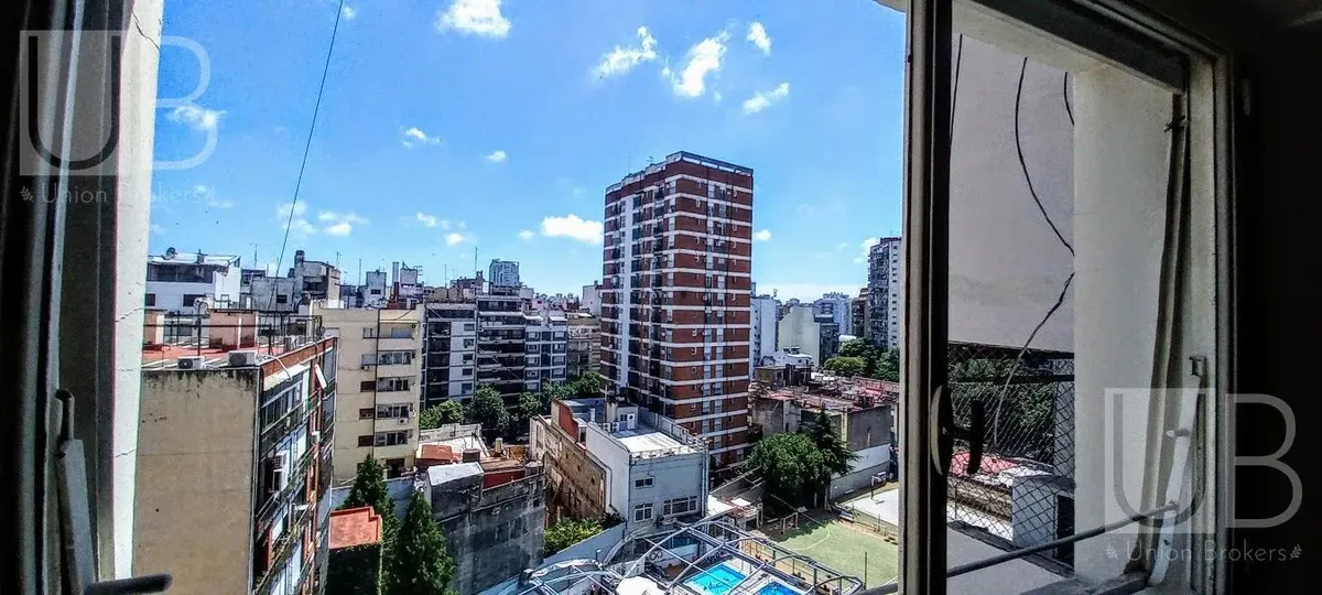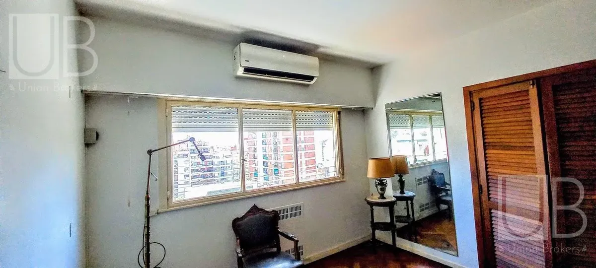 Departamento de 3 ambientes con escritorio, en Caballito, sobre Av. Rivadavia, al contrafrente, en piso alto, con orientación noreste. Es silencioso y con vista abierta, con servicios centrales y losa radiante. Living comedor de 3,50 x 8,20 con piso de parquet y aire acondicionado, habitación principal de 3,15 x 3,80 con placard, segunda habitación de 3 x 3 con placard empotrado, escritorio de 2,50 x 3, cocina amplia, lavadero separado y baño completo; además, toilette con ducha y baño de servic