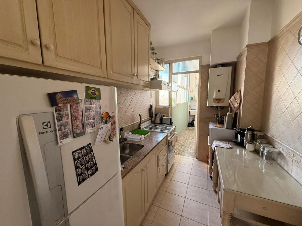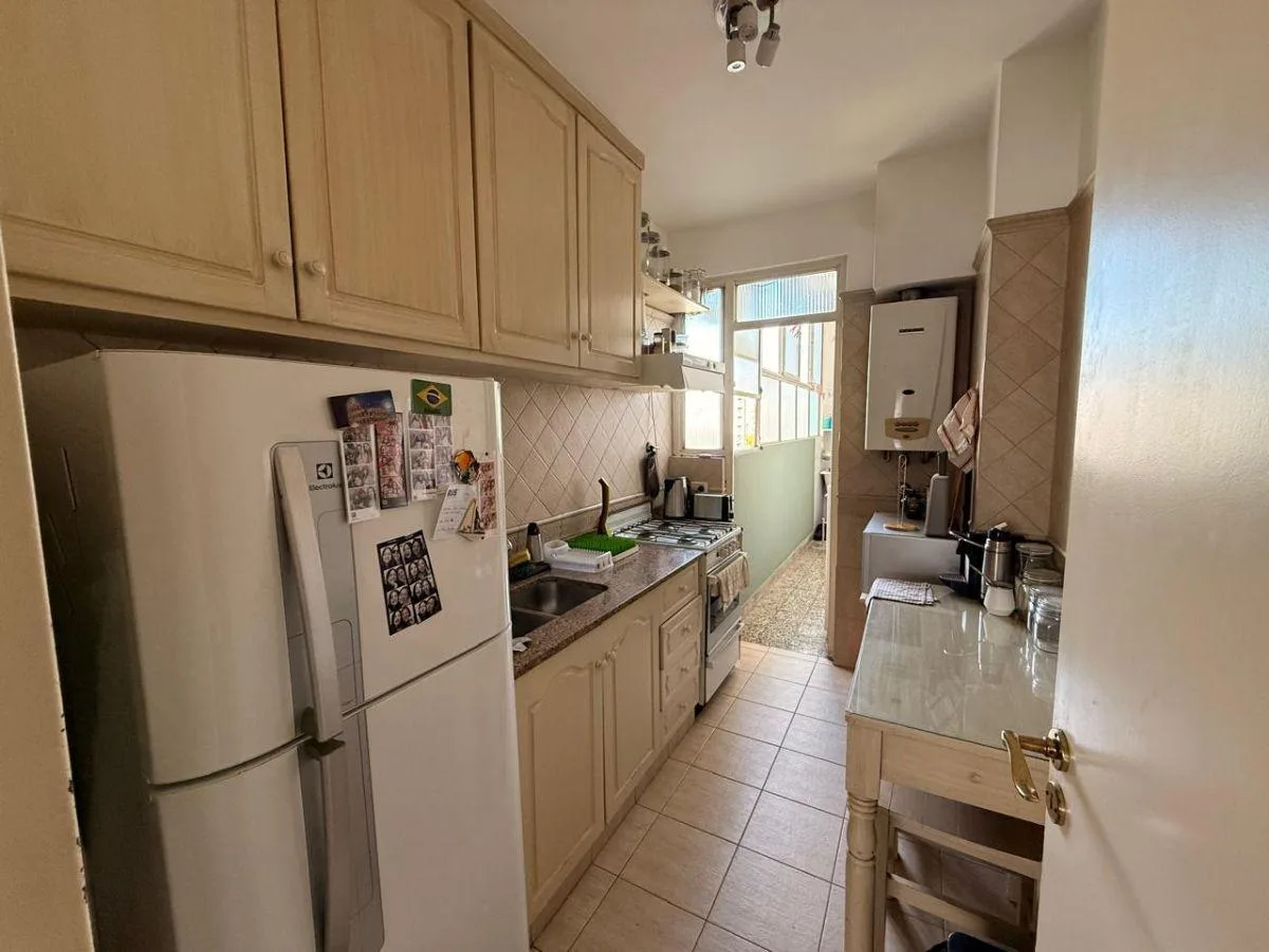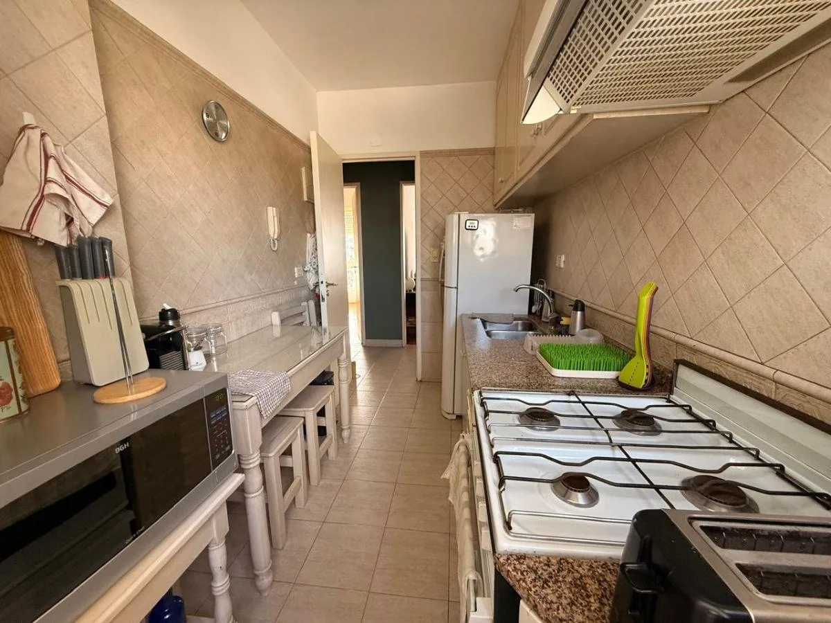 Departamento de 3 ambientes amoblado y equipado de 80 m², en el 5° piso al frente. Cuenta con living comedor con ventanal, 2 dormitorios con placares (uno con salida al balcón) y baño completo. Tiene cocina independiente y lavadero separado, con calefacción por estufa de tiro balanceado y aire acondicionado frío/calor en el living comedor. El precio es paquete e incluye luz y gas con tope de 50.000, más expensas no especificadas.