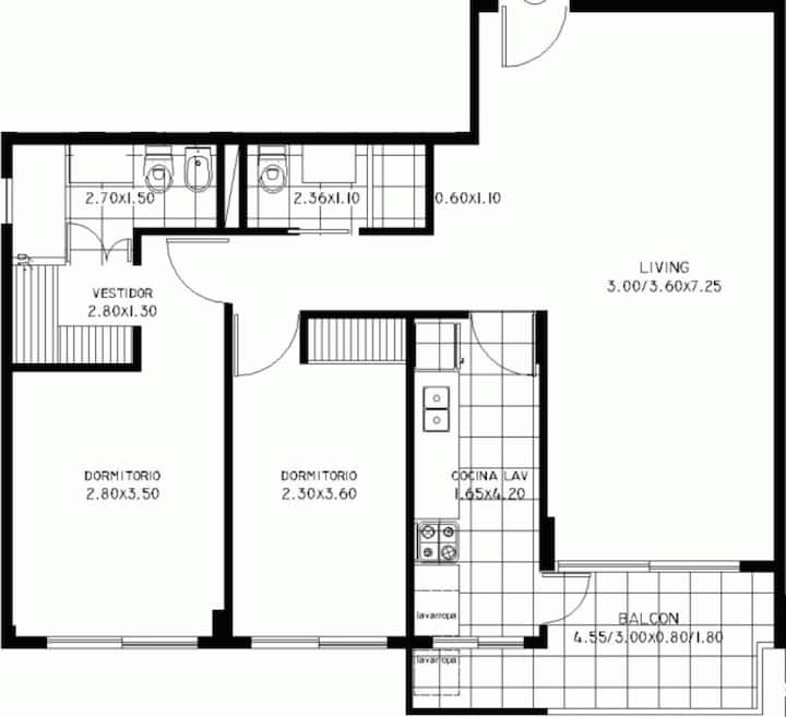2 dormitorios · 3 camas · 2 baños · Chacarita