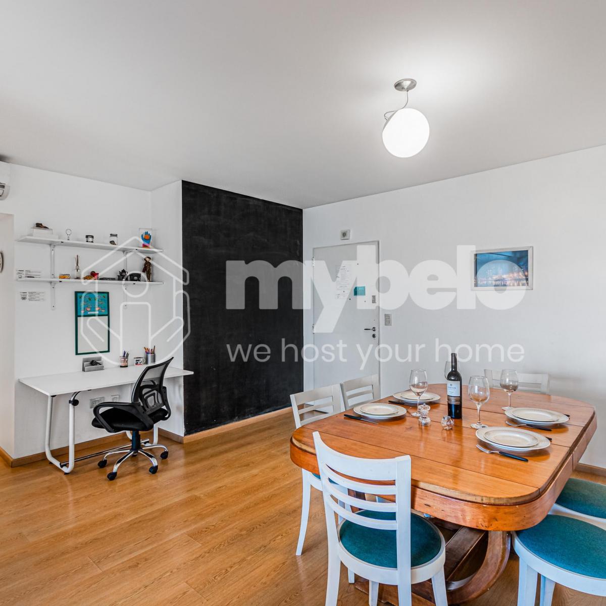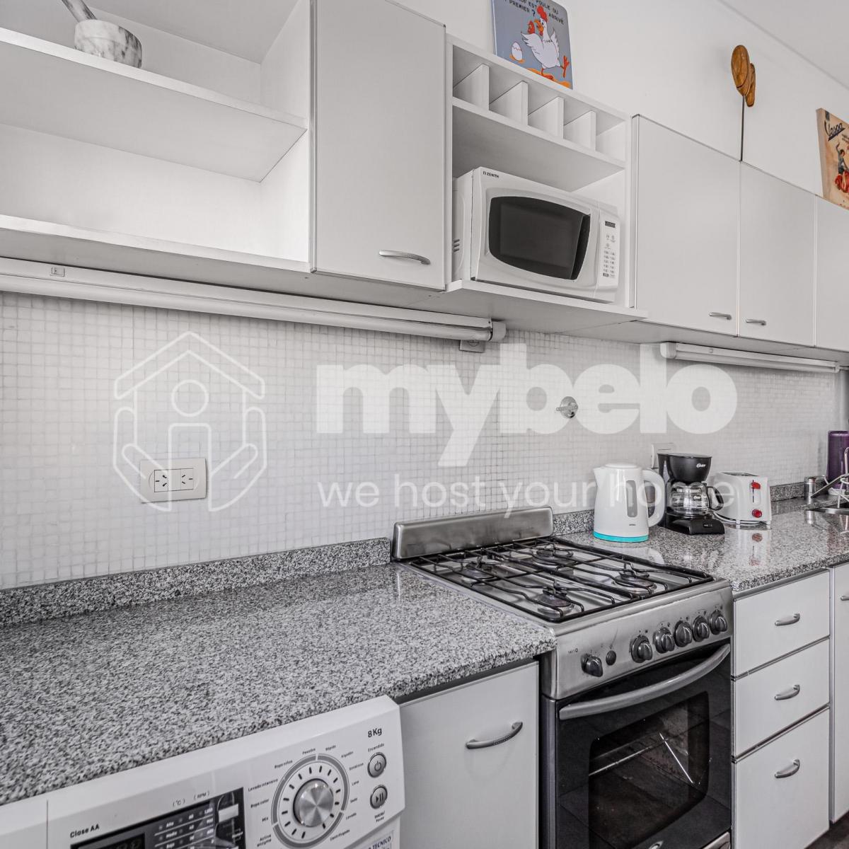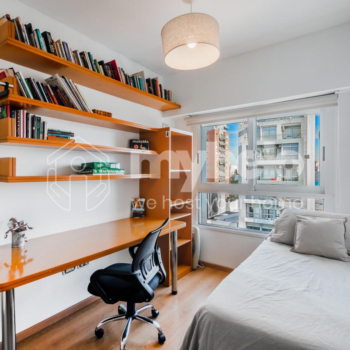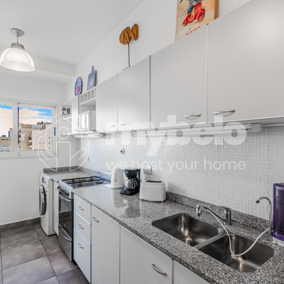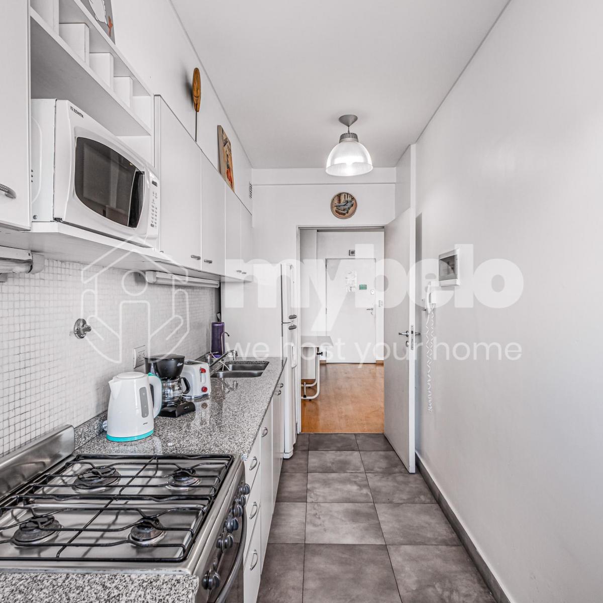 Departamento amoblado de 3 ambientes en un 6to piso al frente, con balcón. Cuenta con 2 dormitorios (uno en suite), 2 baños y aire acondicionado frío/calor en living comedor y en los dormitorios. Incluye sommier queen size, vestidor, TV con cable, segundo dormitorio con cama individual, escritorio y ventilador, WiFi de 100 mb, cocina equipada con heladera con freezer, microondas, pava eléctrica, tostadora, cafetera eléctrica y lavarropas. El edificio tiene piscina en la terraza y el alquiler inc