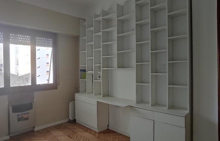 Departamento de 3 ambientes en edificio. Contrafrente, con luminosidad y ventilación silenciosa. Living comedor con tiro balanceado. Dormitorio principal al contrafrente con placard grande y aire acondicionado split; segundo dormitorio al frente con placard amplio. Baño completo reciclado con ducha. Cocina con alacenas, muebles completos, barra desayunadora y espacio para lavadero con tender aéreo. Pisos de madera y techos altos. Apto mascotas y apto profesional. Ubicación en San Telmo, con acce