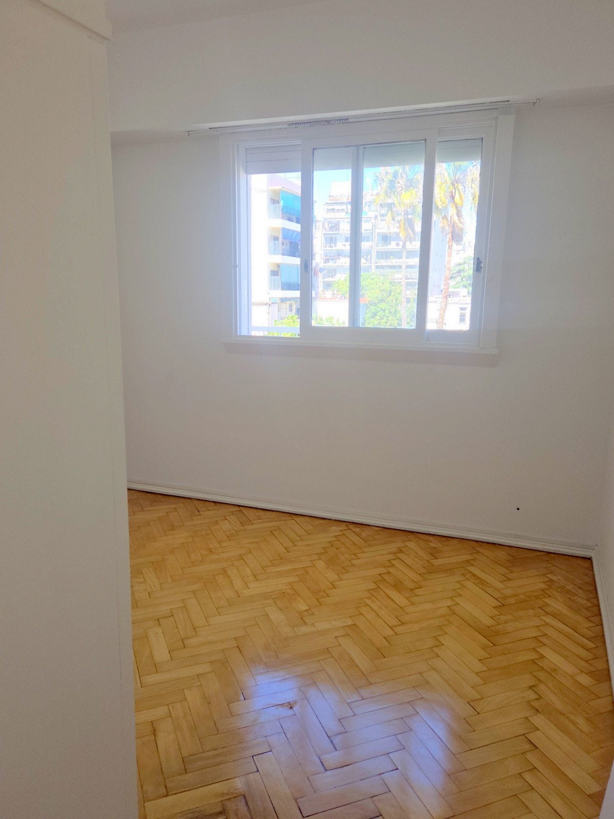 Departamento de 3 ambientes en Flores Norte con balcón a contrafrente abierto y vista al verde del pulmón de manzana. Cuenta con living comedor con pared espejada, aire acondicionado, cocina y comedor diario con ventanal al exterior, 2 dormitorios con placards (uno con ventilador de techo) y baño con bañadera y mampara divisoria. El edificio tiene calefacción central por losa radiante. El alquiler es de $ 1.100.000 el primer cuatrimestre y luego se ajusta por ICL, con 1 mes adelantado y 1 mes de