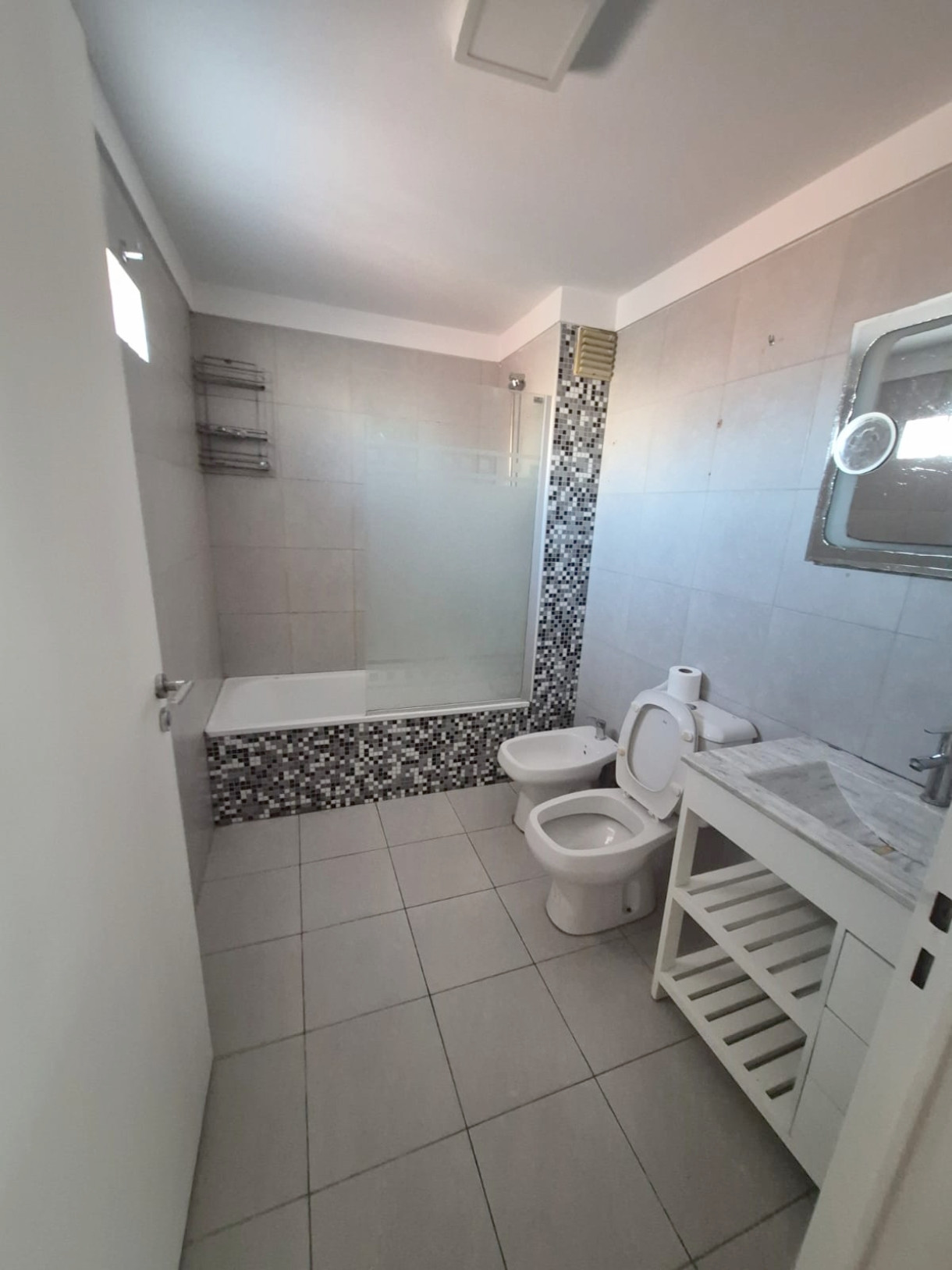 Semipiso de 3 ambientes al contrafrente en Flores, con balcón aterrazado y vista. Tiene 78 m² en el 10° piso, con living con salida al balcón, 2 dormitorios (uno con vestidor y baño en suite, y otro con placard) y cocina a gas integrada. Cuenta con baño completo, instalación para lavarropa, caldera y losa radiante individual, SUM y parrilla. El alquiler es de $ 1.350.000 y las expensas de $ 230.000 incluyen Aysa; contrato de 24 meses con actualización trimestral.