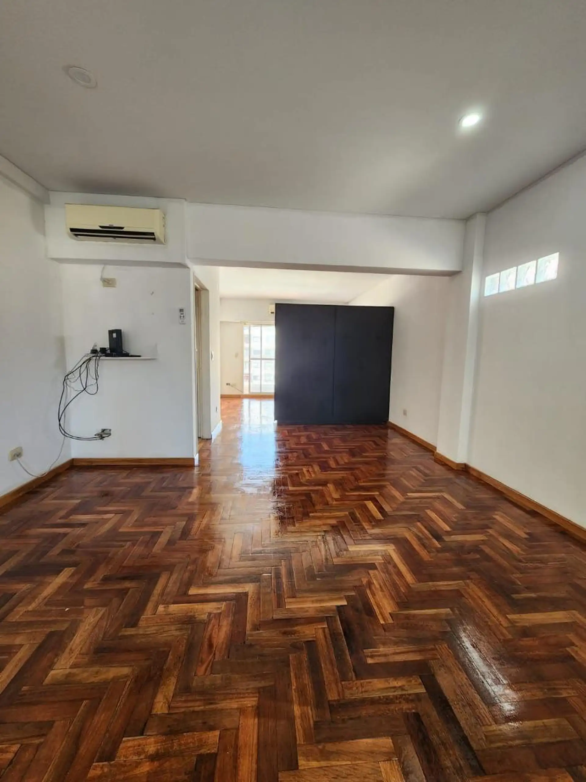 Departamento de 2 ambientes con 51 m² en Caballito Norte, al contrafrente. Se entrega recién pintado, con piso plastificado y anafe nuevo; cuenta con 2 aires acondicionados funcionando y un placard que divide el sector del dormitorio para mayor independencia. Tiene balcón al contrafrente con vista a la pileta del edificio y lavadero independiente. El alquiler incluye Fibertel y Cablevisión; las expensas son de $80.000.