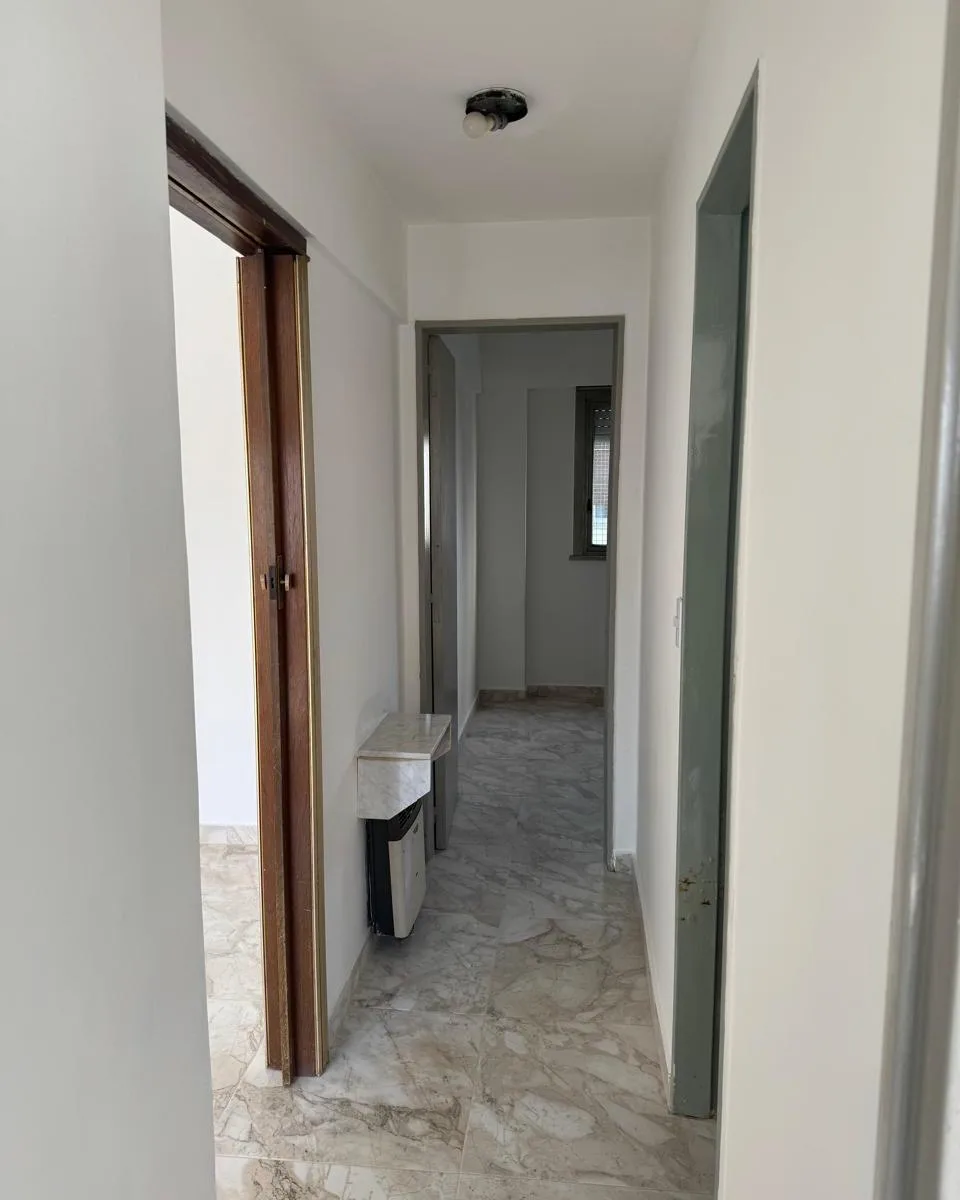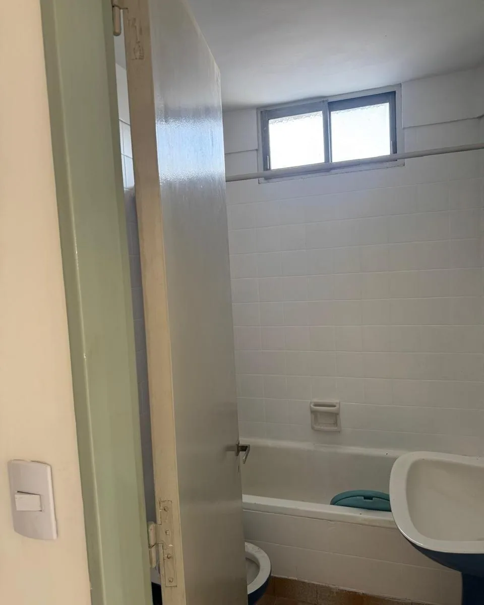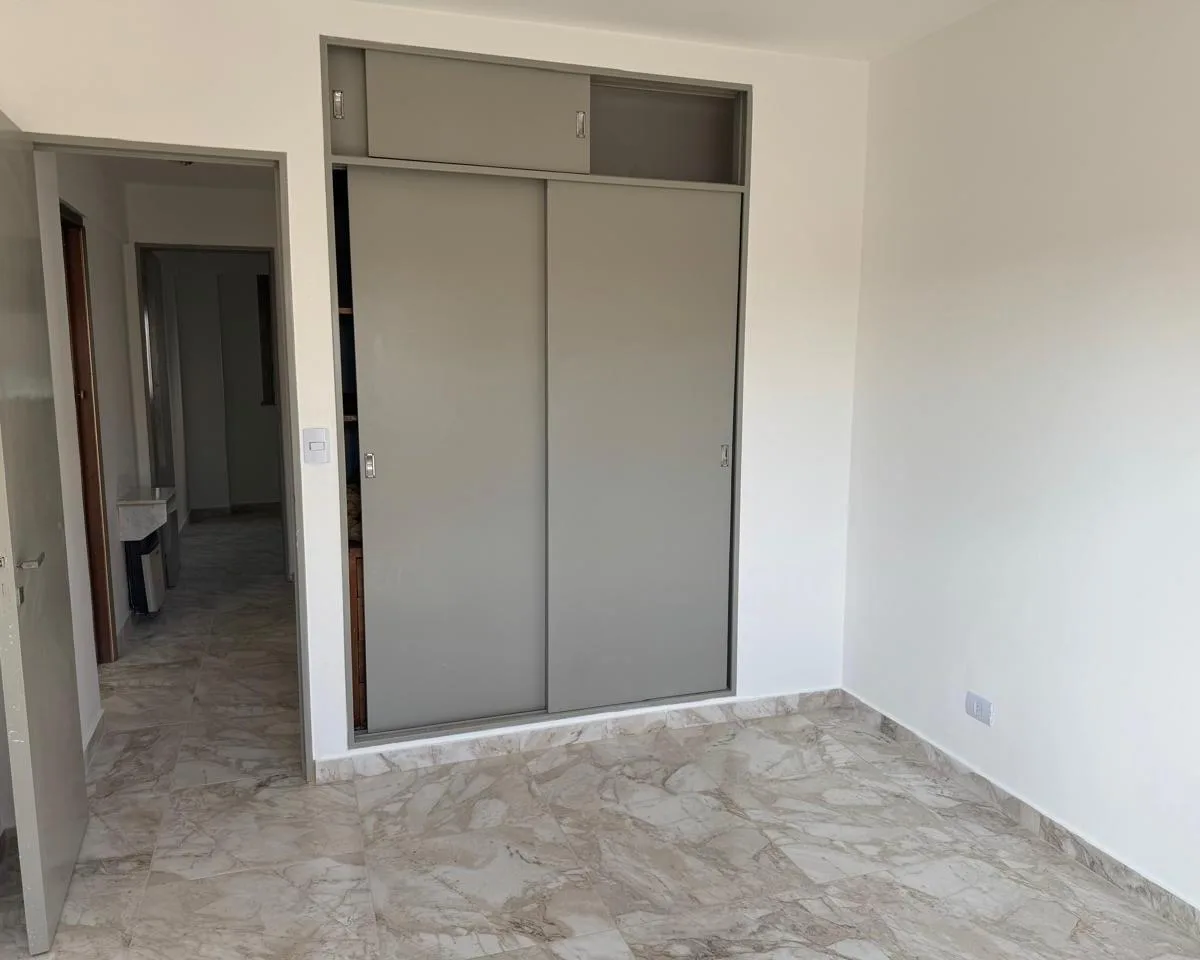 Apartamento de três ambientes com ampla metragem, no 5º andar, de fundos, com balcão corrido e boa incidência de luz. Possui dois dormitórios com armários embutidos contínuos e banheiro completo com ventilação natural. A sala dá acesso ao balcão, e a cozinha inclui espaço para refeições diárias, com lavadero independente.