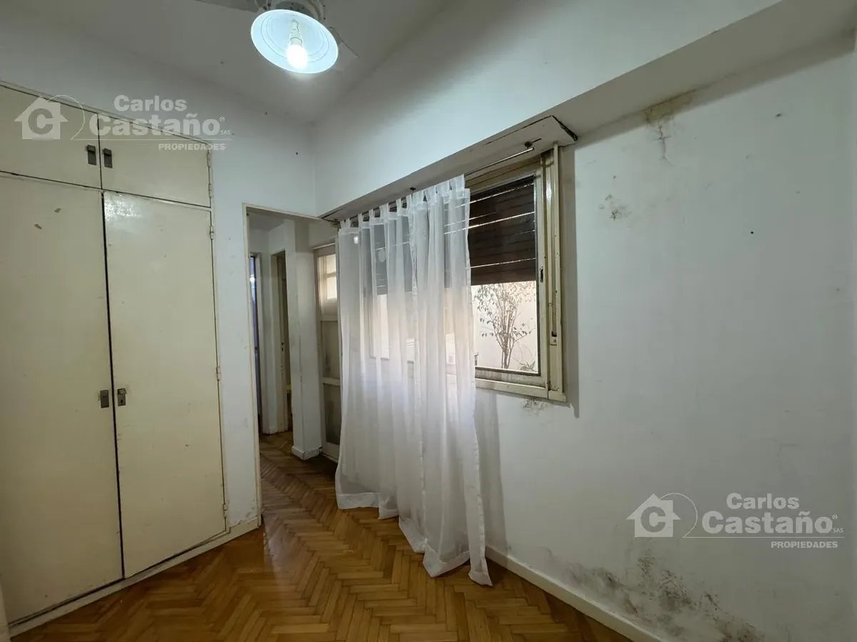 Ground-floor three-room apartment with 2 bedrooms and two small patios, 3 blocks from Av. Maipú. The living-dining room measures 5 x 3 m with parquet flooring and a window to the patio (1.3 x 0.9 m). Bedrooms include closets, with the first at 3 x 2.8 m and the second at 1.9 x 2.6 m; there is a second patio of 1.5 x 1 m, plus a kitchen (2.3 x 1.5 m) and a daily dining area (2.1 x 2.3 m). Gas-points heating; the unit is missing paint and this can be offset with 1 month of grace. Pets: small pets