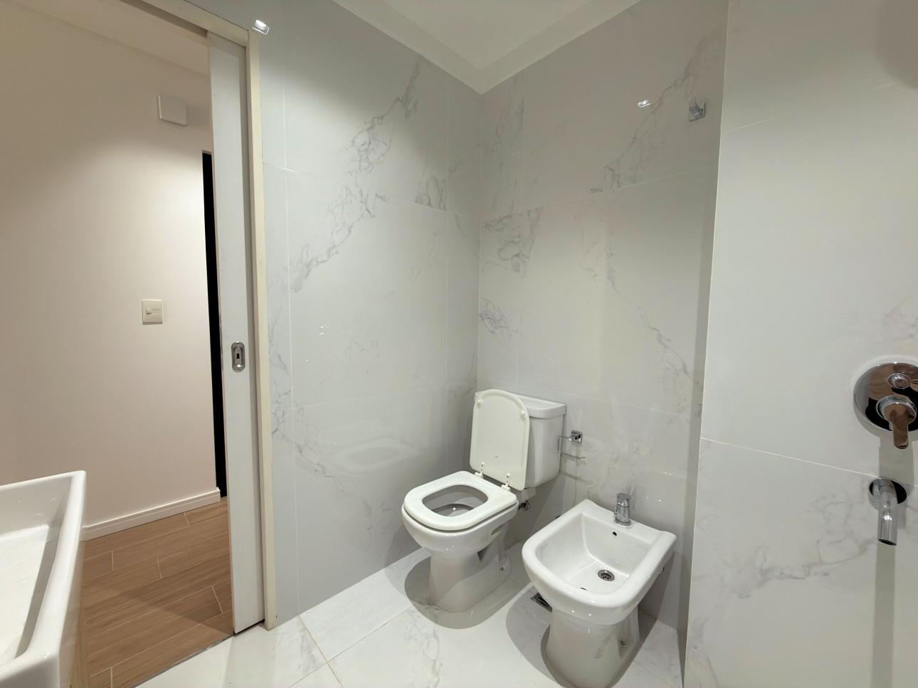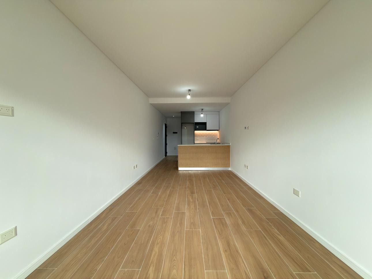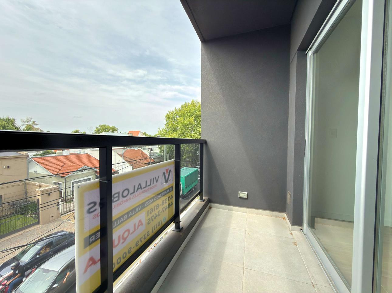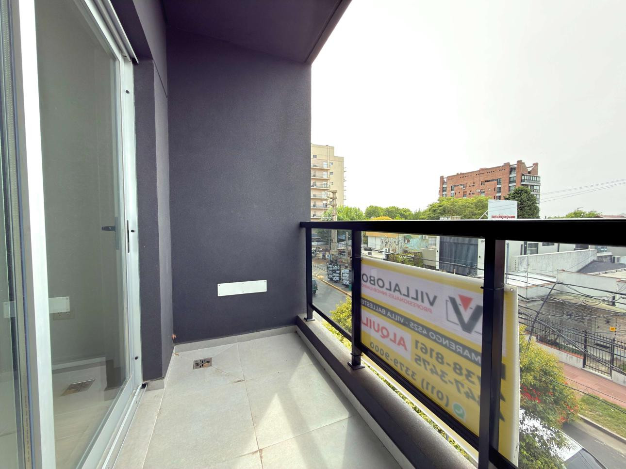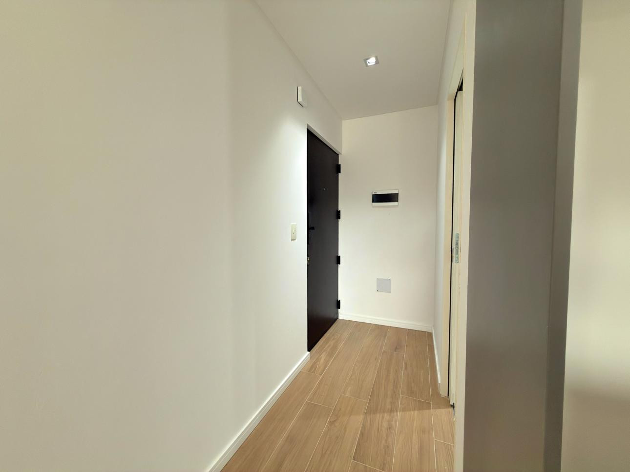 Monoambiente a estrenar de 34 m² con balcón al frente, en edificio de 3 pisos. La unidad se ubica en un frente con puerta de seguridad y acceso por huella dactilar o clave. Cuenta con pisos de porcelanato símil madera, amplio ventanal y cocina integrada con isla, artefacto de inducción, horno, bacha con grifería, conexión para lavarropas y espacio previsto para lavarropas. El edificio tiene ascensor y 6 unidades por nivel.