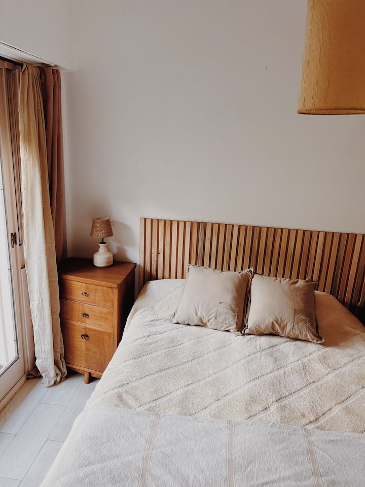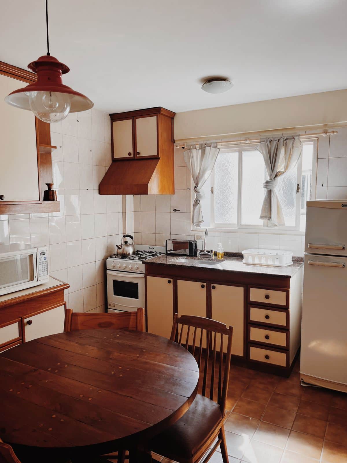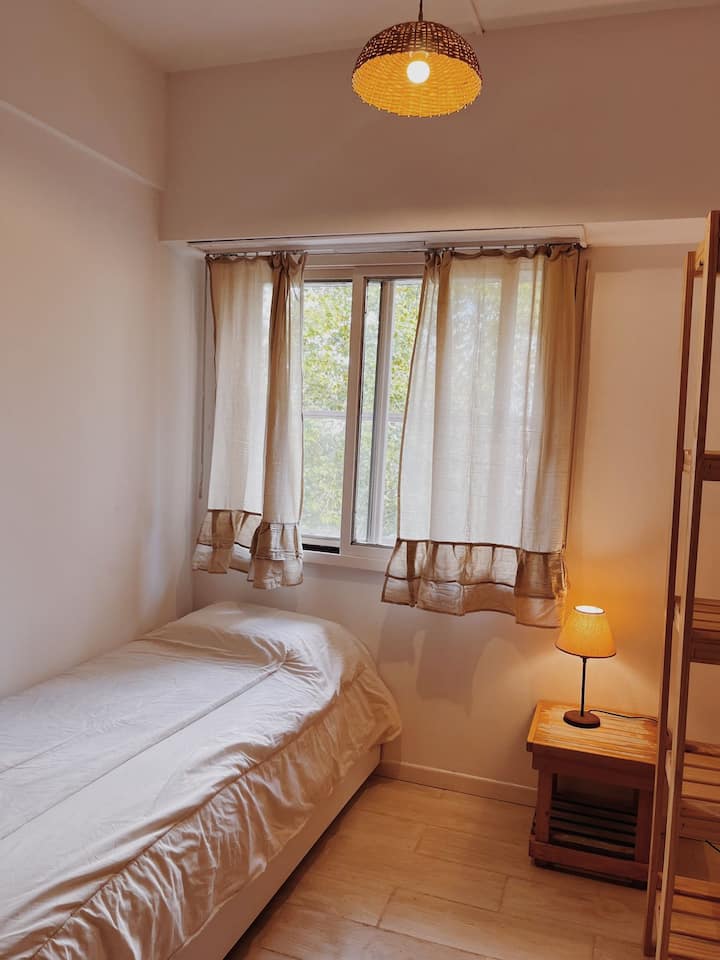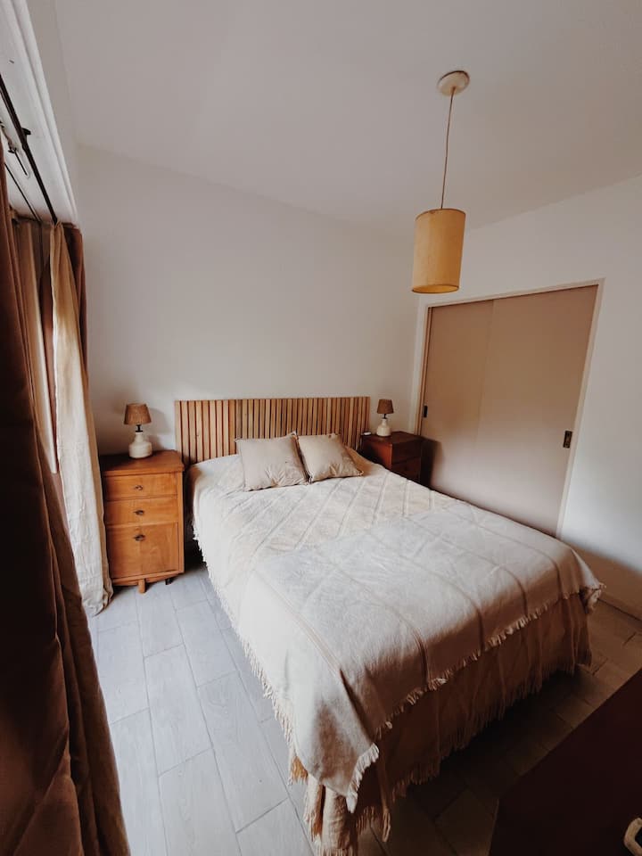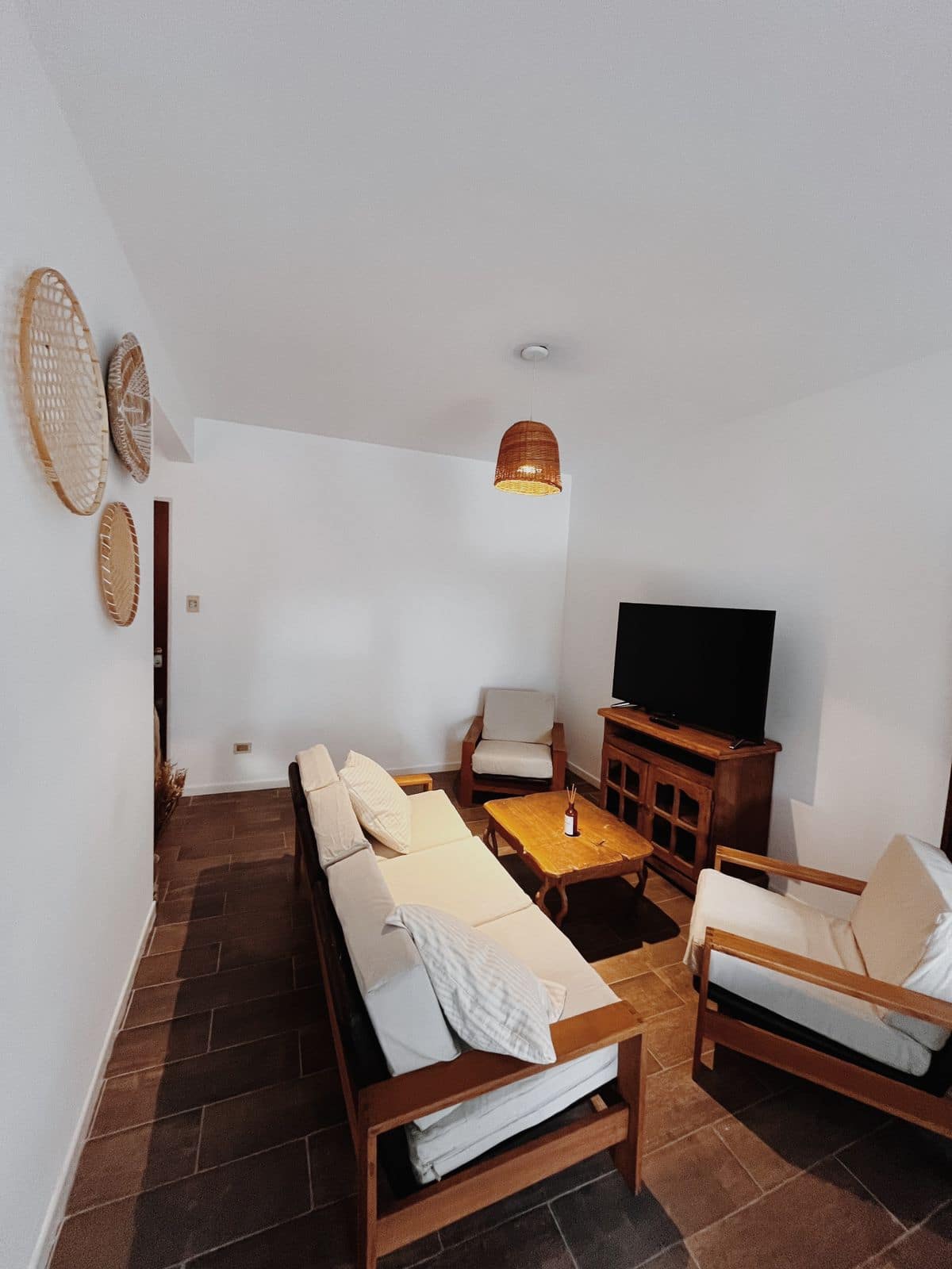 Departamento de 3 ambientes en General San Martín, Buenos Aires. Tiene 2 dormitorios; en el dormitorio principal hay cama king y aire acondicionado. Cocina equipada, living con TV y balcón. En el dormitorio secundario hay 1 cama, con cuna debajo para un niño.