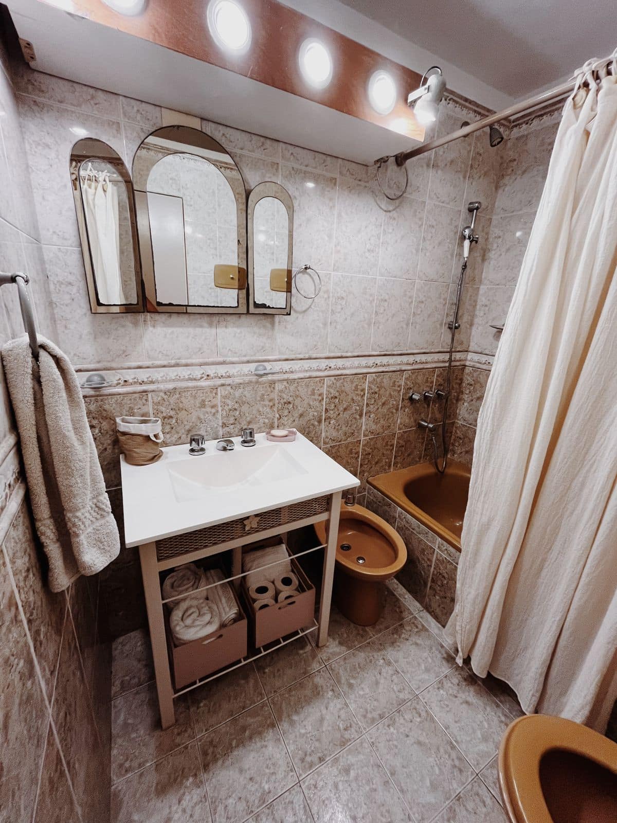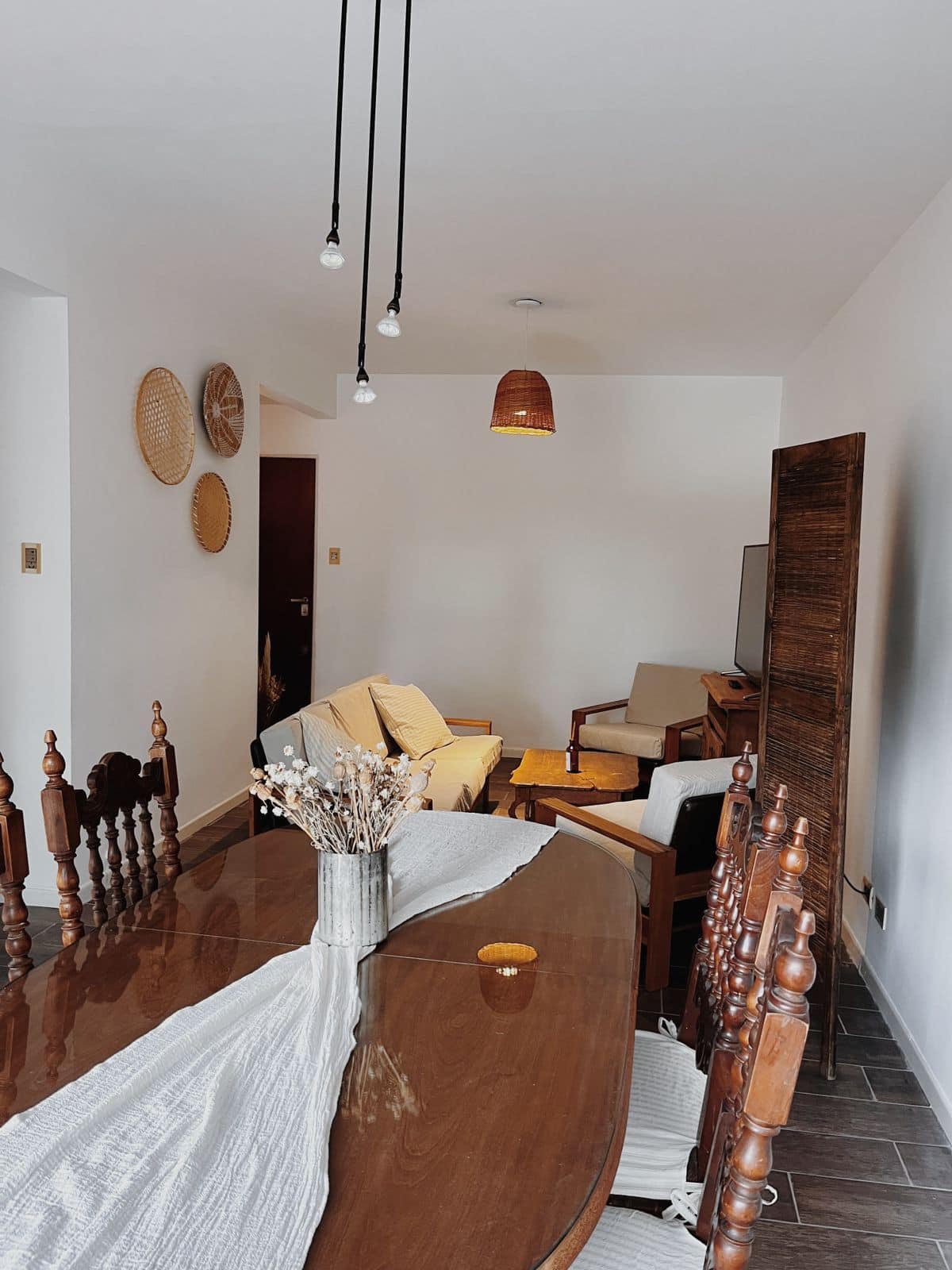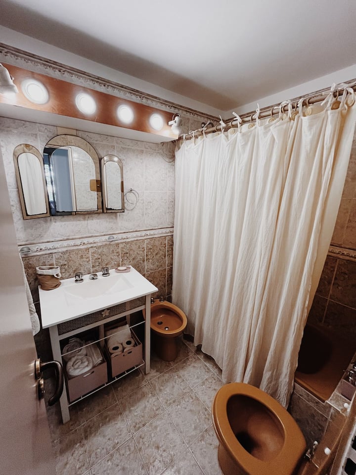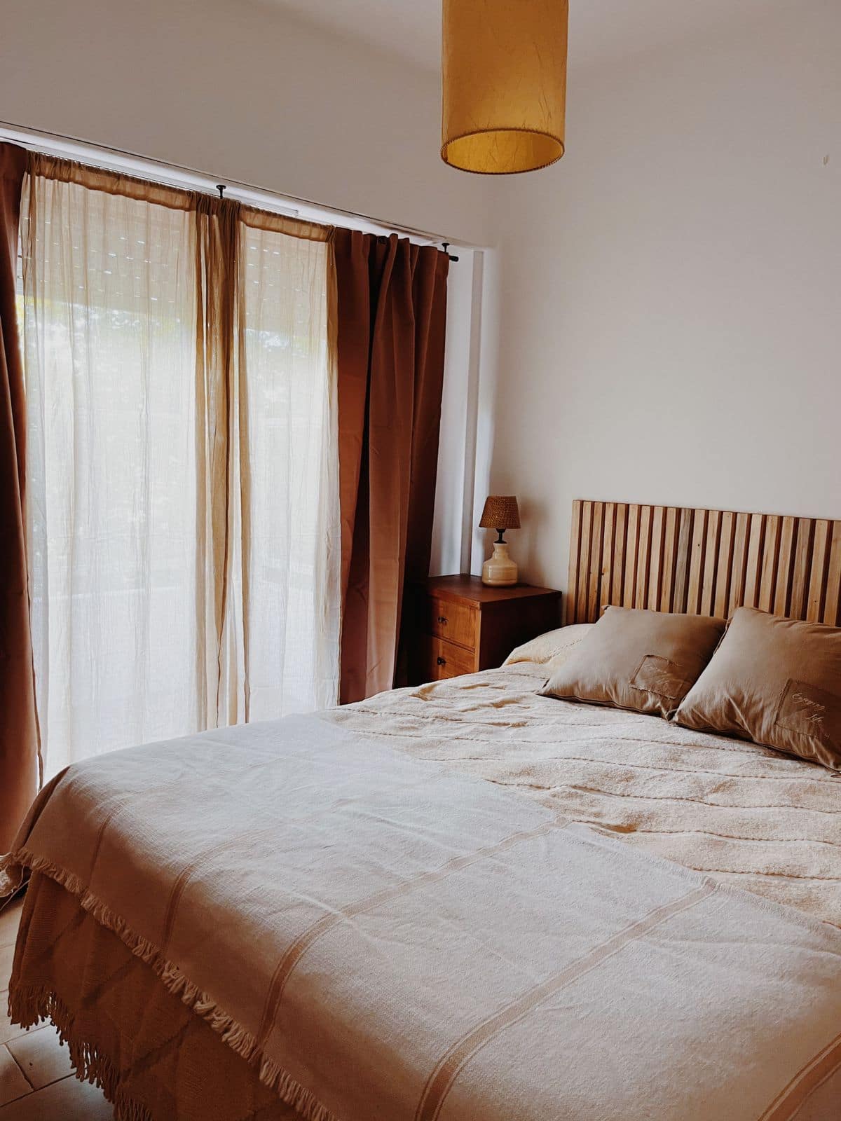 Departamento de 3 ambientes en General San Martín, Buenos Aires. Tiene 2 dormitorios; en el dormitorio principal hay cama king y aire acondicionado. Cocina equipada, living con TV y balcón. En el dormitorio secundario hay 1 cama, con cuna debajo para un niño.