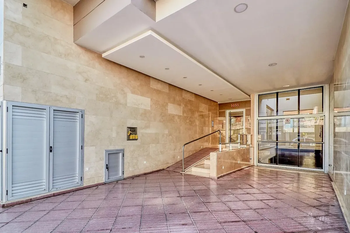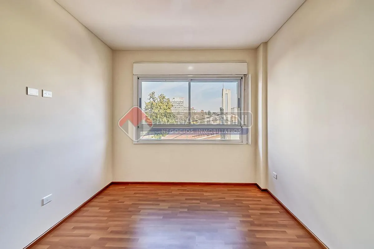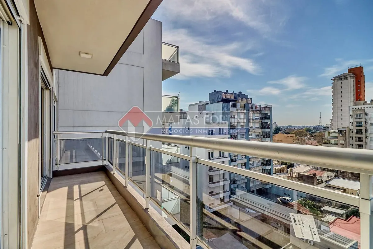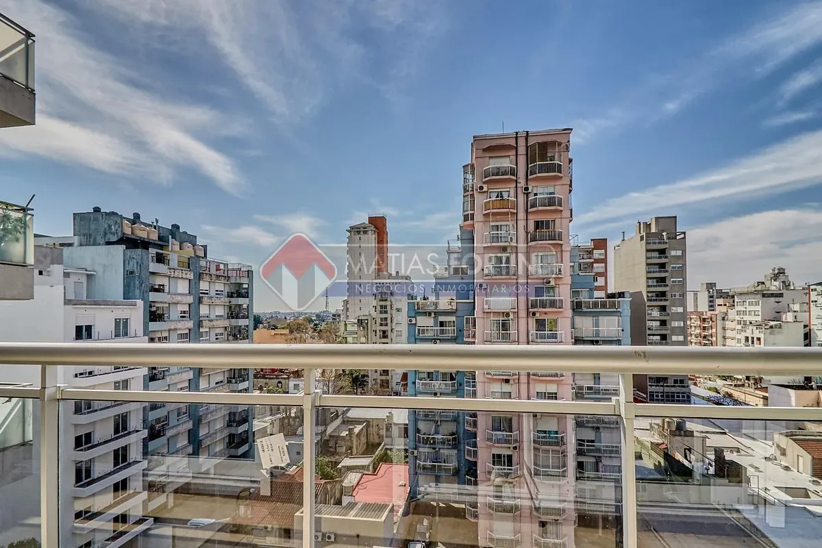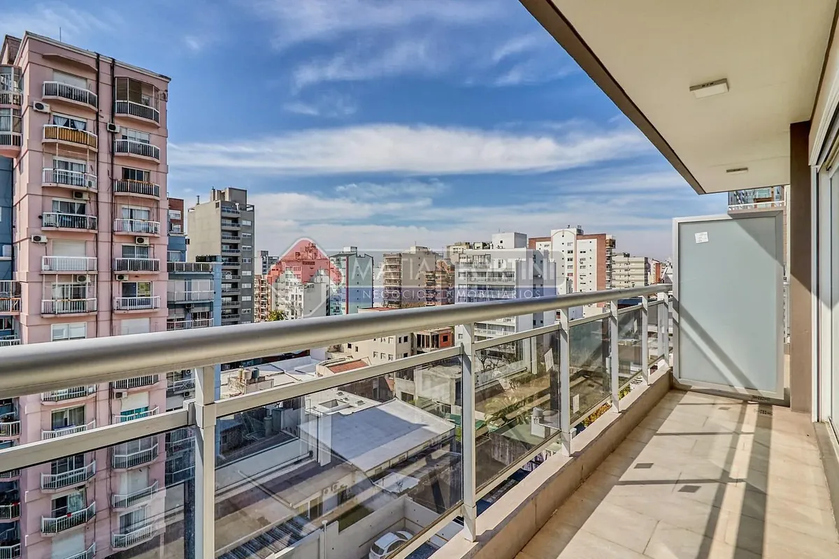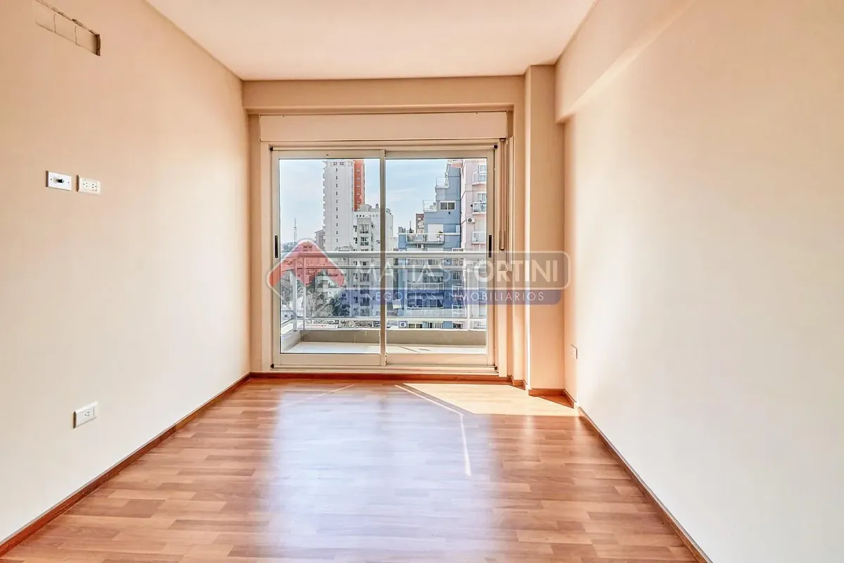 Departamento de 3 ambientes en 7mo piso al contrafrente, con cochera cubierta en planta baja. Cuenta con living comedor, cocina con comedor diario y 2 baños completos. Tiene 2 habitaciones con placard empotrado de 2 hojas y amplio balcón. Dispone de instalación de gas en cocina y living, persianas de aluminio en todos los ambientes y kit de instalación de aire acondicionado en todos los ambientes. El edificio tiene 2 ascensores de alta velocidad, agua caliente central y sistema de seguridad digi