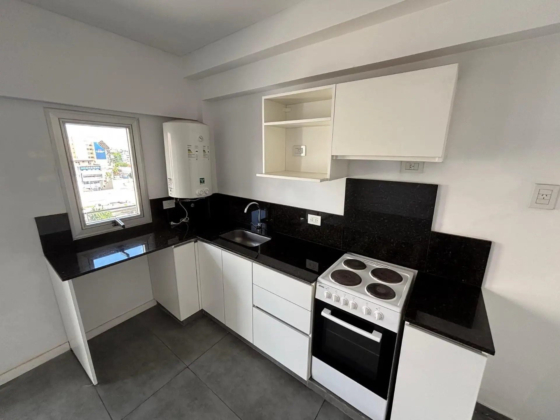 Monoambiente en alquiler en un 7° piso, con balcón. Cuenta con cocina completa con muebles bajo mesada y alacena, baño completo. El edificio tiene laundry, gimnasio, pileta y salón de usos múltiples.