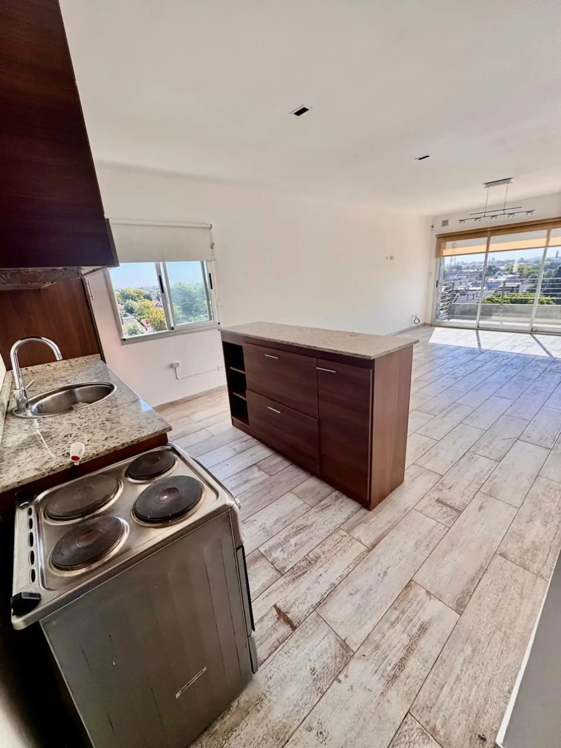 Departamento de 3 ambientes en Villa Ballester, ubicado en el 6° piso, con vista abierta y balcón aterrazado. Cuenta con living comedor con cocina integrada, cocina con isla/desayunador, horno y anafe eléctrico. Tiene 2 dormitorios con placard e interiores, 1 baño completo con bañera y cochera incluida. Contrato de 24 meses con ajuste cuatrimestral según IPC, con capacidad máxima de 4 personas.
