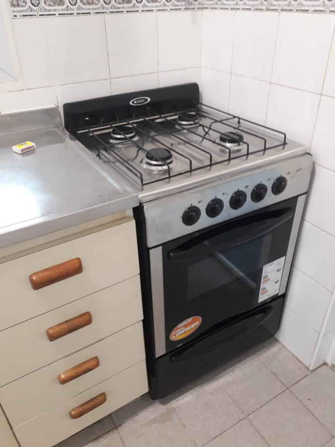 Departamento de 3 ambientes con balcón, living comedor y cocina comedor totalmente equipada con artefacto de cocina a estrenar. Cuenta con lavadero cubierto independiente, 2 dormitorios con placares empotrados y 1 baño completo. Incluye amplia terraza común y está apto para uso profesional o comercial, para oficina.