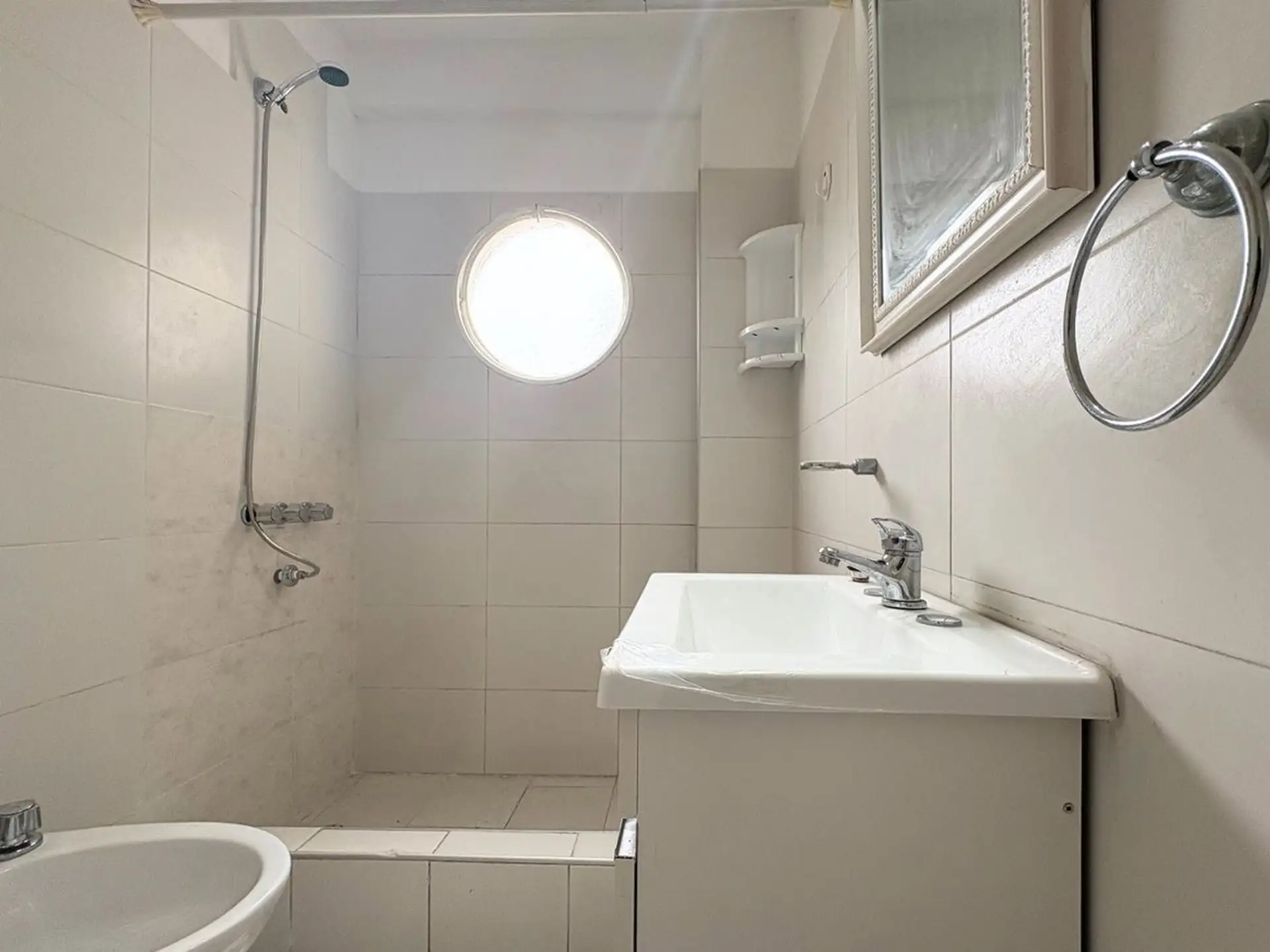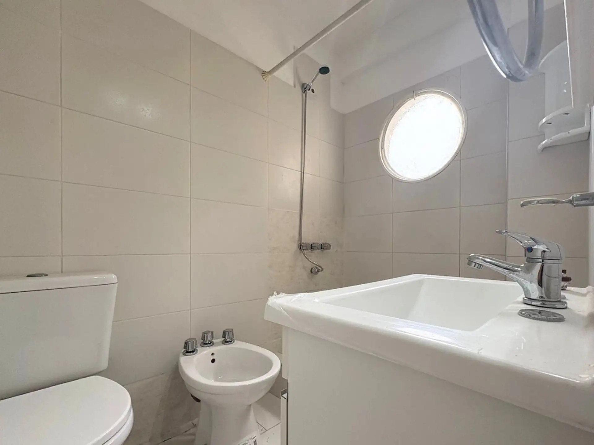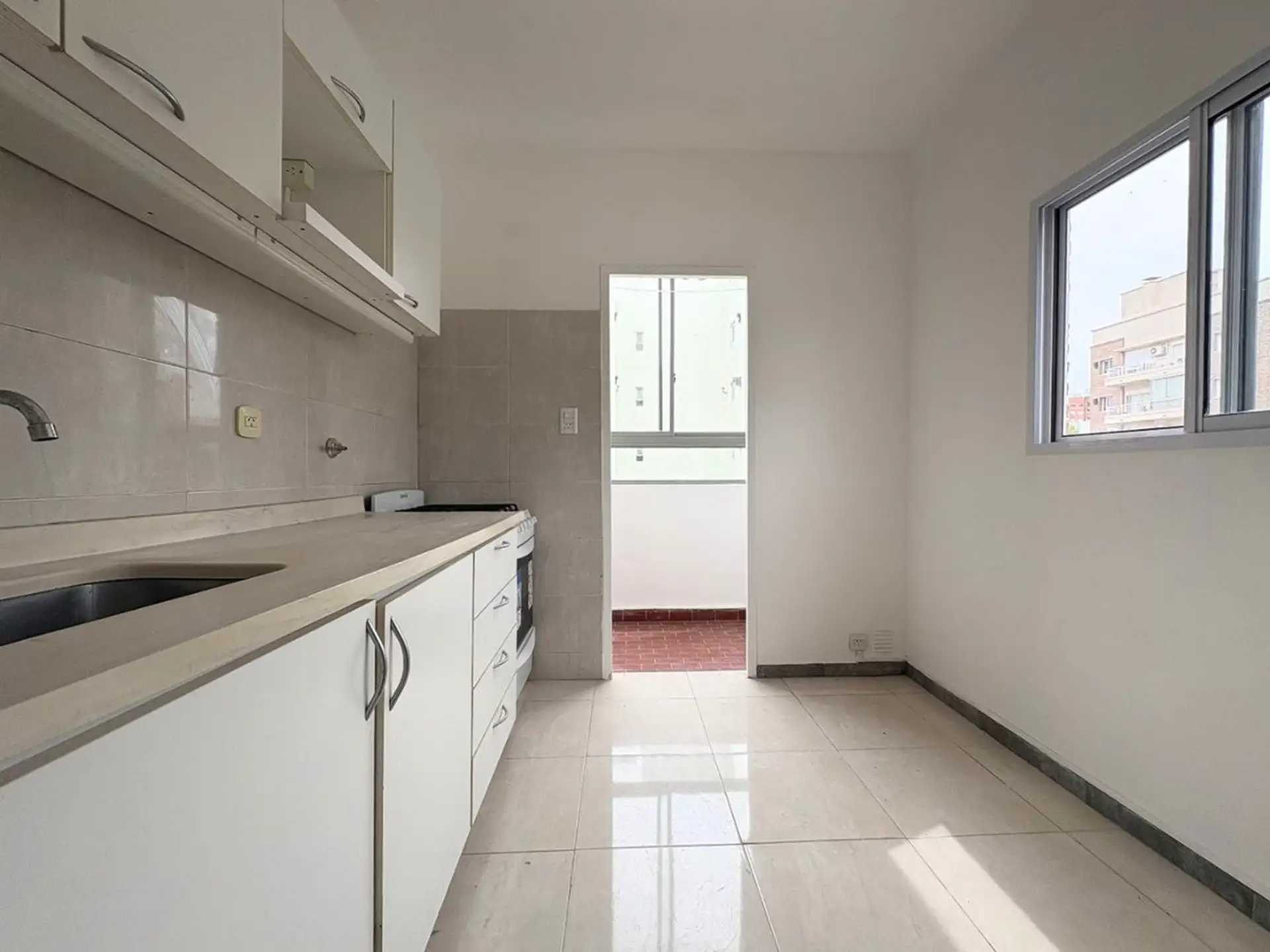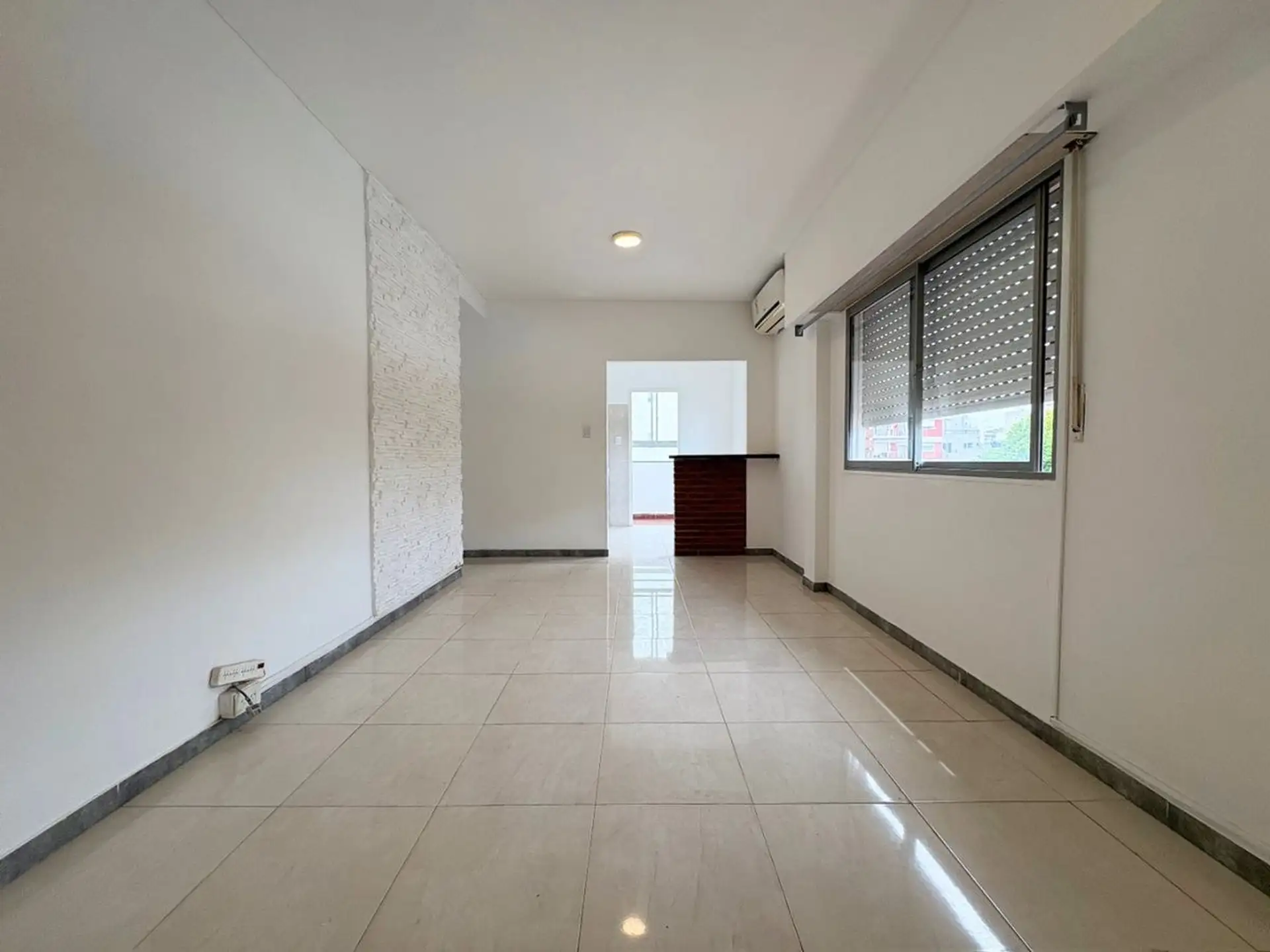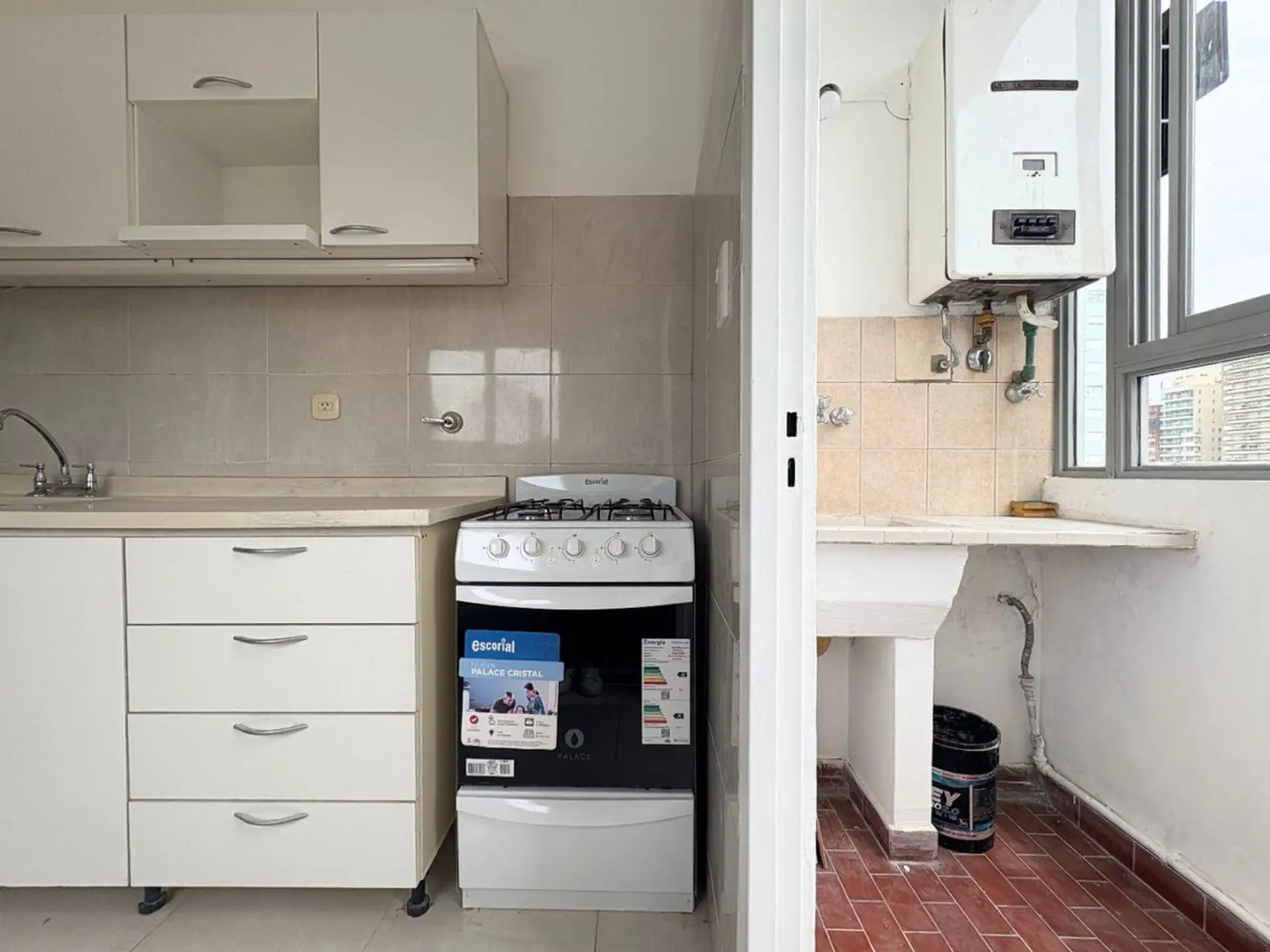 Departamento de 3 ambientes de 52 m² en Villa Ballester, piso 3 de un edificio de 4 niveles, con disposición frente y lateral. Cuenta con 2 dormitorios (uno con placard), living-comedor integrado, cocina con desayunador, baño completo y lavadero, más terraza. Incluye cochera, portón automático y aire acondicionado. Los servicios indicados son electricidad, agua, gas e internet, con red cloacal.