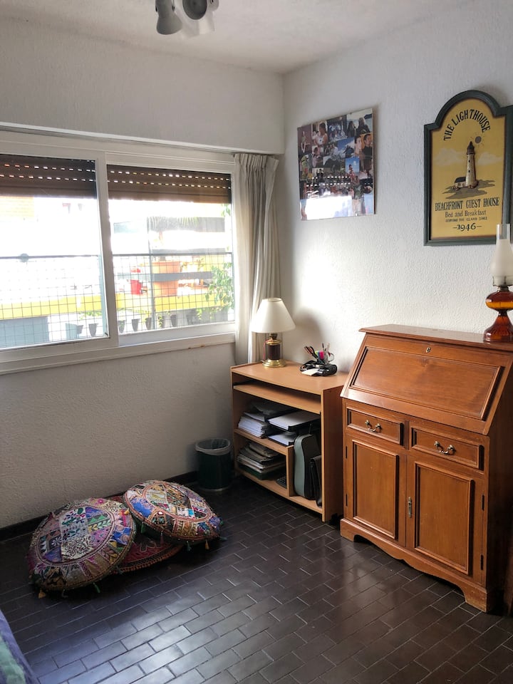 Departamento en La Lucila, en un edificio de estilo colonial de 5 unidades, en 2do piso por escalera. Cuenta con living con chimenea, 2 dormitorios, 1 baño, cocina y lavadero, y balcón. Dispone de 2 aires acondicionados frío/calor, WiFi y artículos básicos de cocina y baño, además de toallas y sábanas. La renta incluye el alquiler del departamento completo.