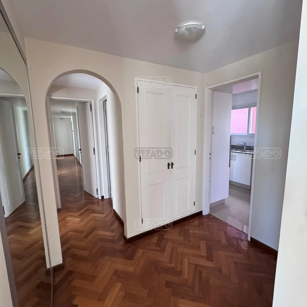 Departamento de 2 dormitorios con 200 m² totales, 168 m² cubiertos, con palier privado. Living comedor en L con salida a un balcón corrido de 30 metros y vista al río y a Av. del Libertador. Cuenta con cocina con comedor diario, lavadero y baño de servicio, toilette de recepción y escritorio, además de hall con placar, pisos de madera y cerámicos en baños y cocina. Tiene 2 cocheras cubiertas y posibilidad de 3º dormitorio; el dormitorio principal es en suite con vestidor y baño compartimentado a