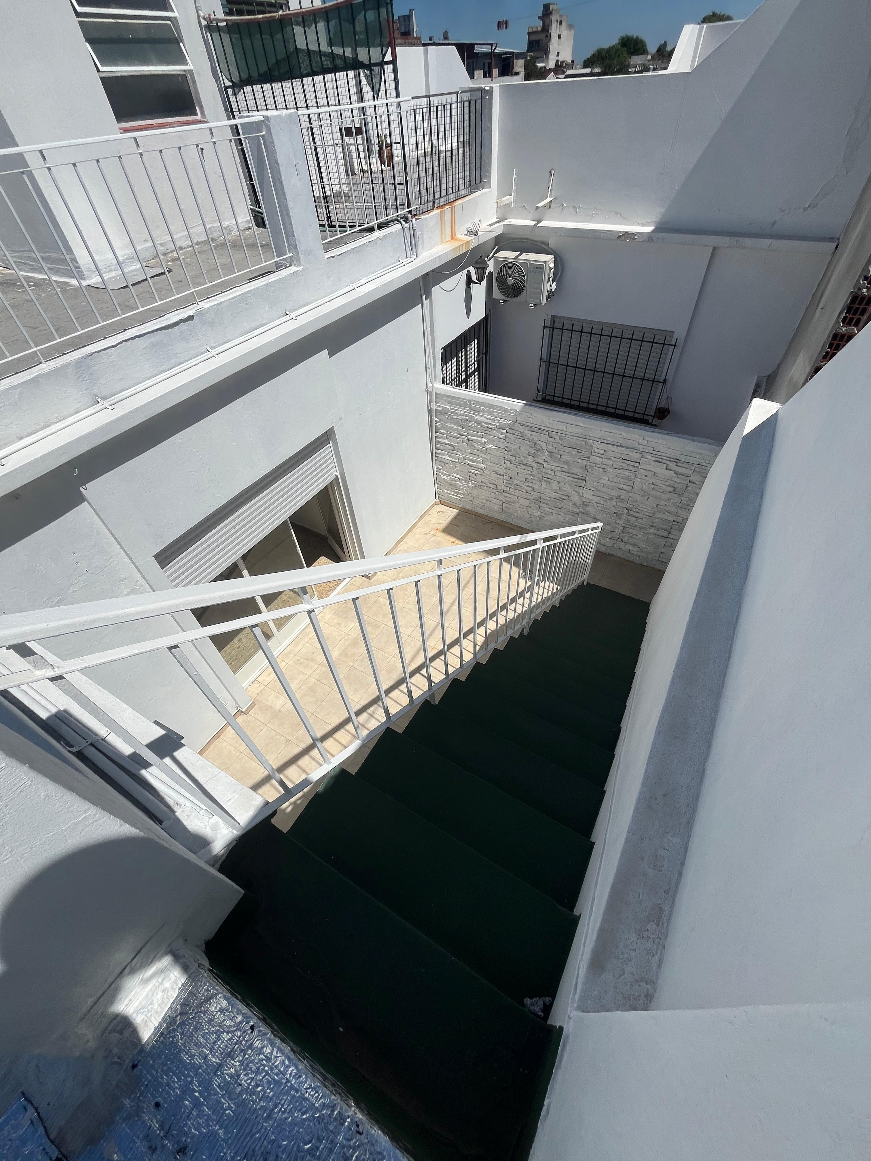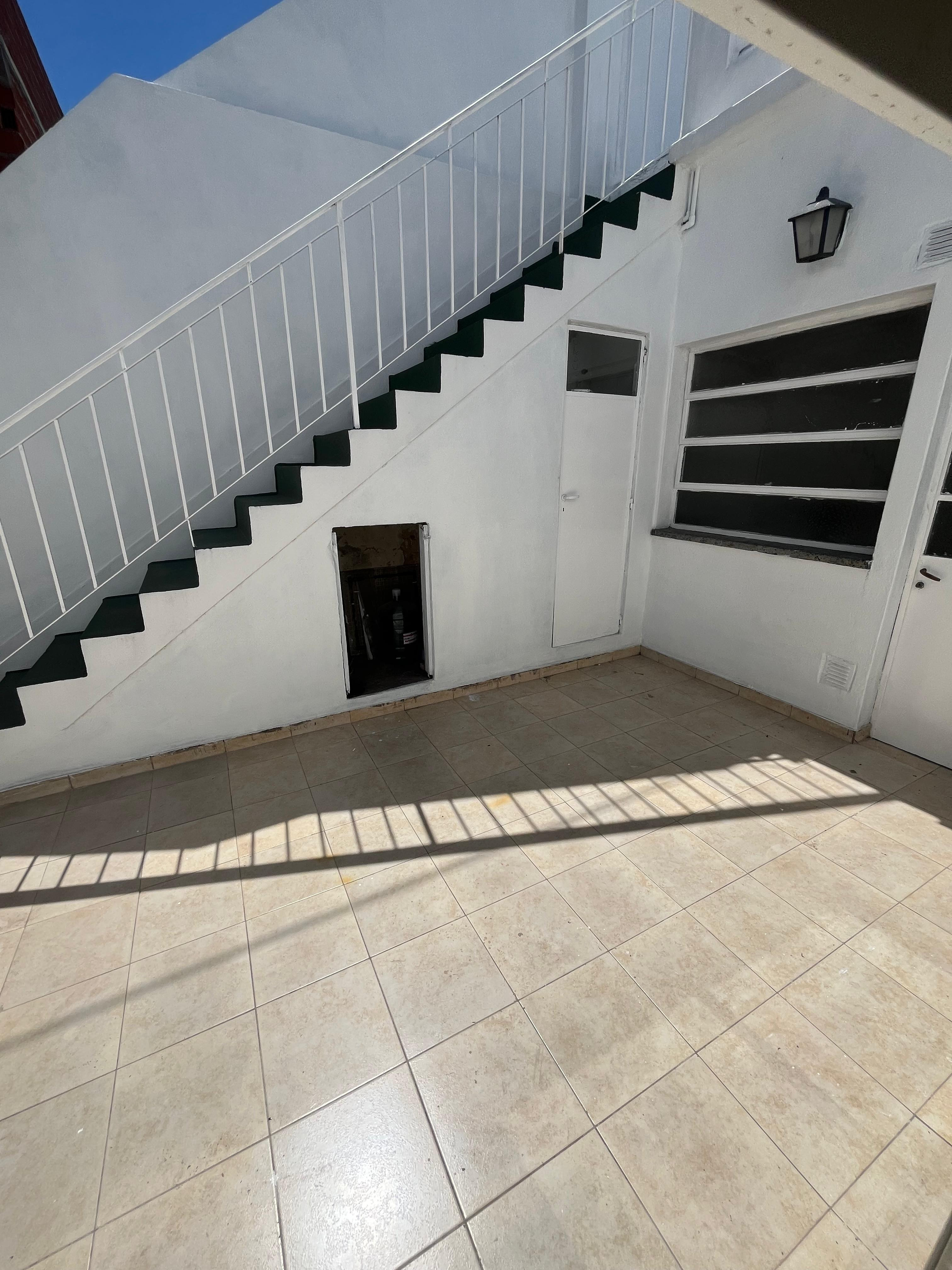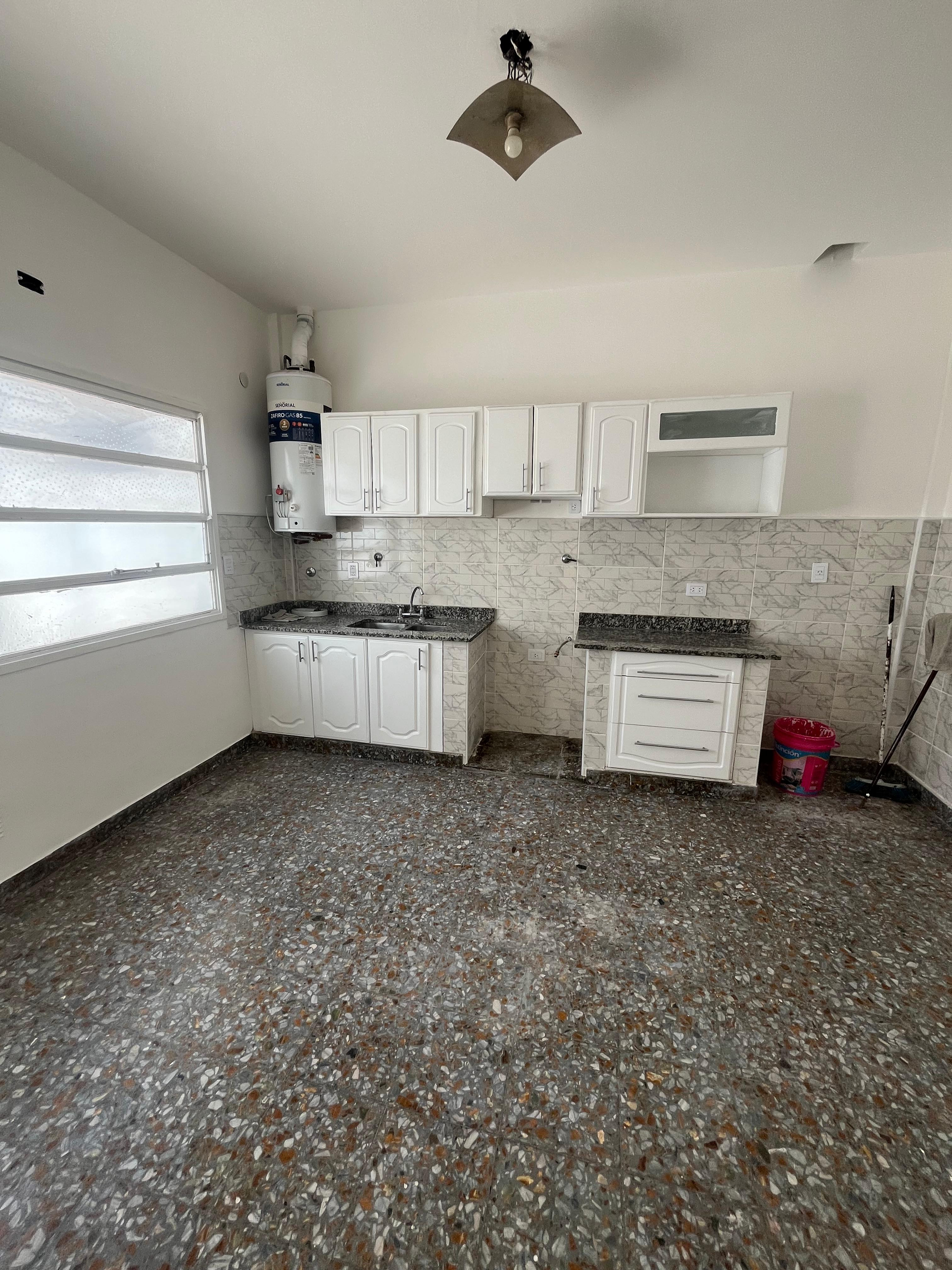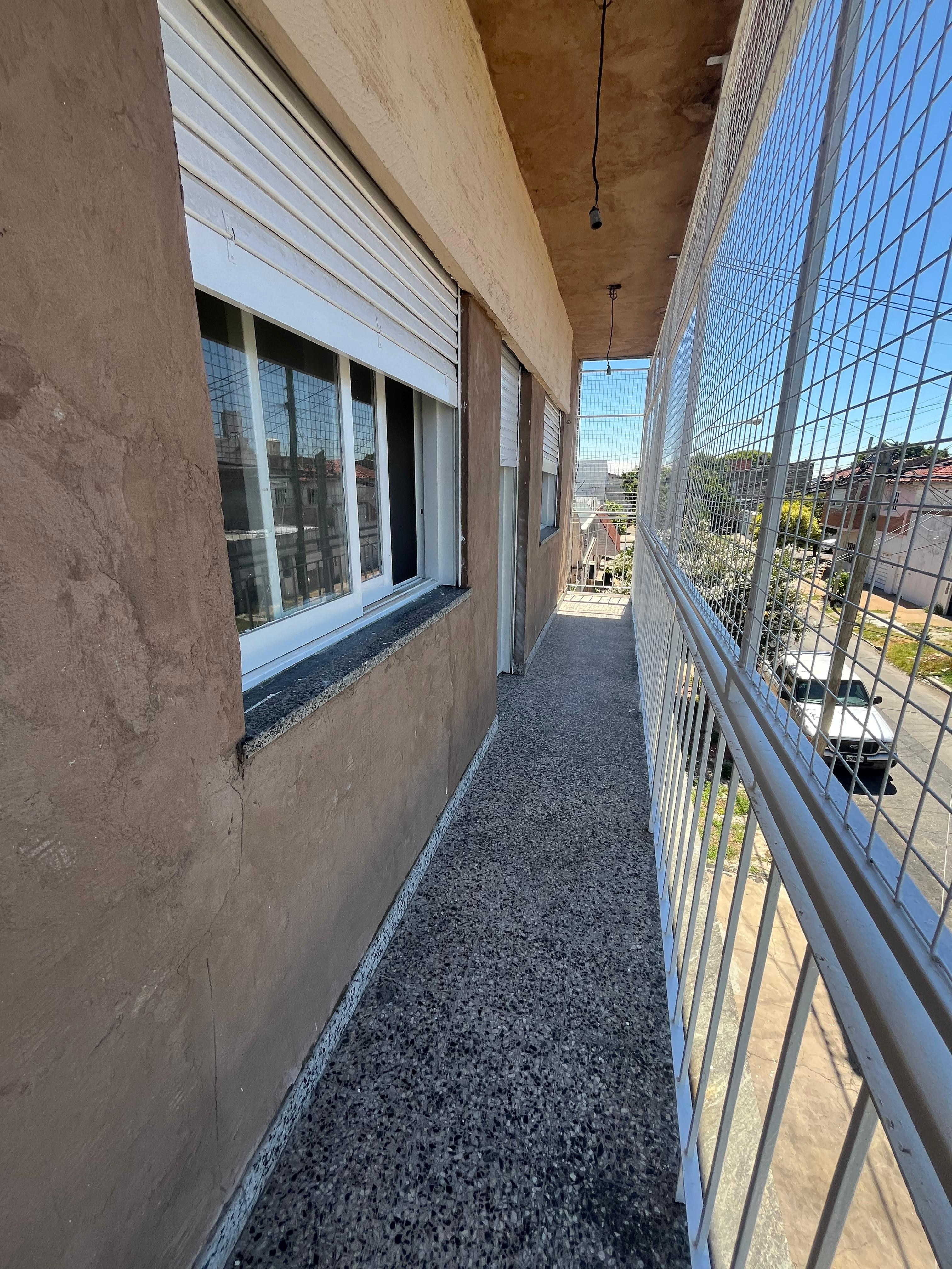 Departamento de 3 ambientes en Villa Madero, en 1er piso por escalera al frente. El living comedor tiene ventana balcón con persiana y salida al patio; la cocina cuenta con alacena y bajo mesada, con ventana y puerta al patio. Dispone de pasillo distribuidor con salida al balcón, baño completo y 2 habitaciones, además de patio con baño de servicio y escalera con acceso a la terraza, que tiene lavadero techado. No tiene expensas.